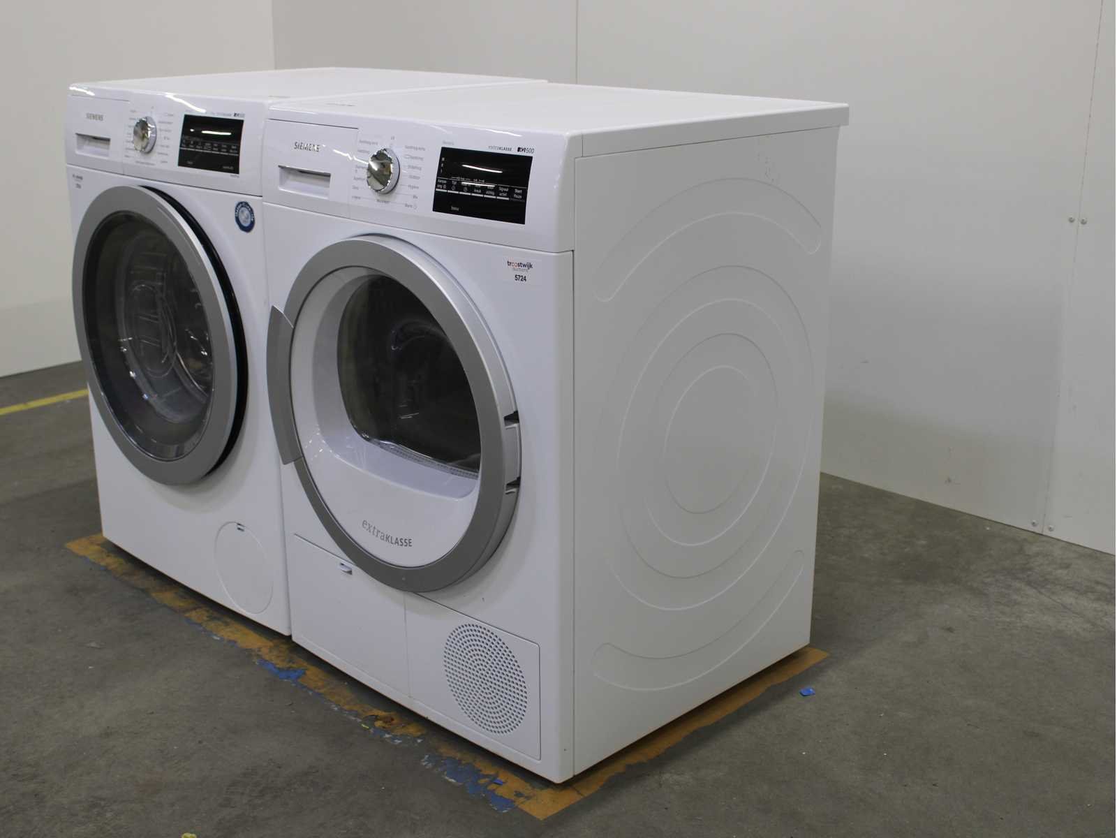 Deze wasmachine en wasdroger komen uit een partij jong gebruikt A-Merk witgoed. De machines zijn volledig getest, gereinigd en indien nodig gerepareerd. Houdt er rekening mee dat de machines lichte gebruikssporen kunnen hebben. Wasmachines en wasdrogers hebben vaak standaard afmetingen. Hoogte 85cm, Breedte 60cm en Diepte 60 tot 70cm, incl. uitstekende slangen e.d. aan de achterzijde. Als de machine vrij komt te staan is de afmeting minder relevant. Wil je de machine in een nis plaatsen of inbouwen? Controleer dan de exacte afmetingen op basis van het aangeboden merk en model/type. Within 7 days Merk: Siemens Serienummer: WM14T490NL en WT46G490NL
