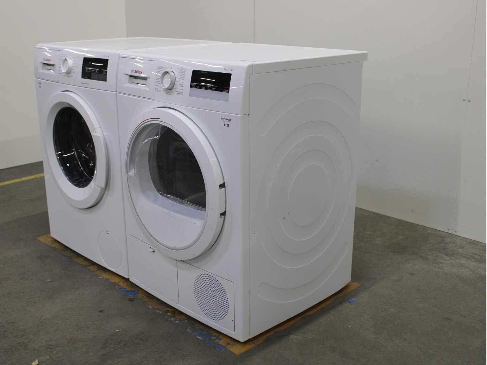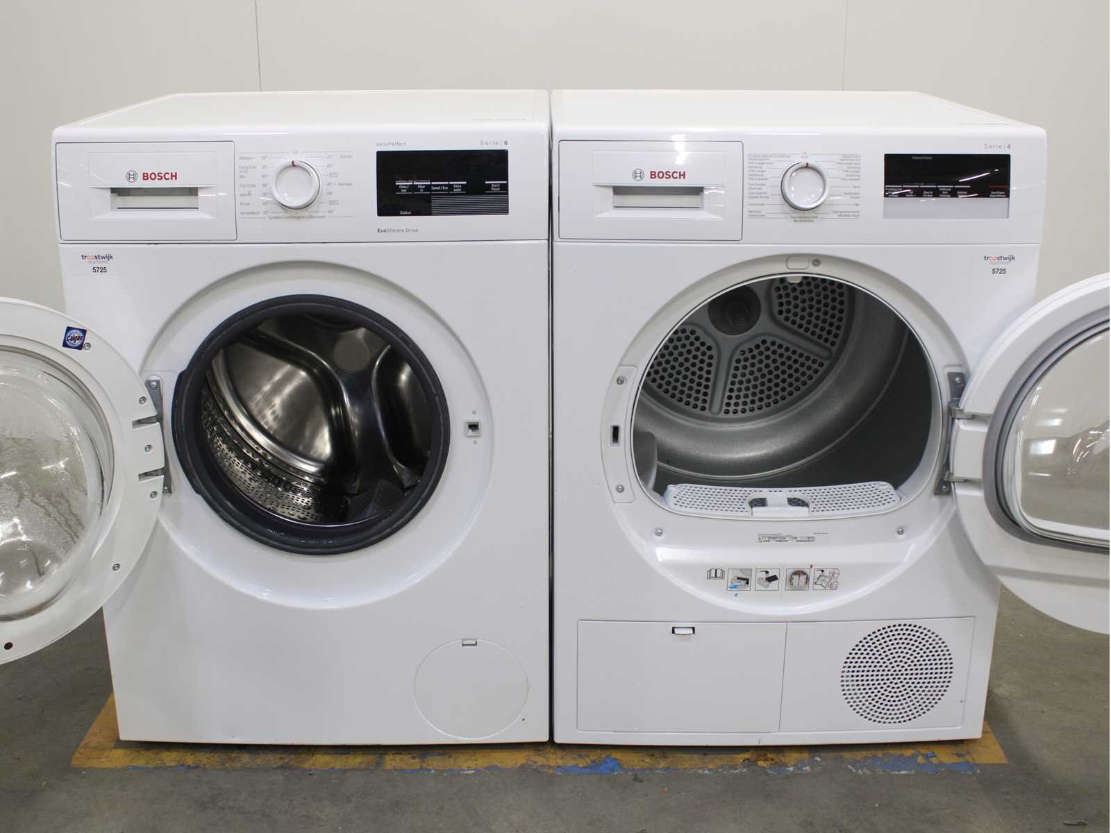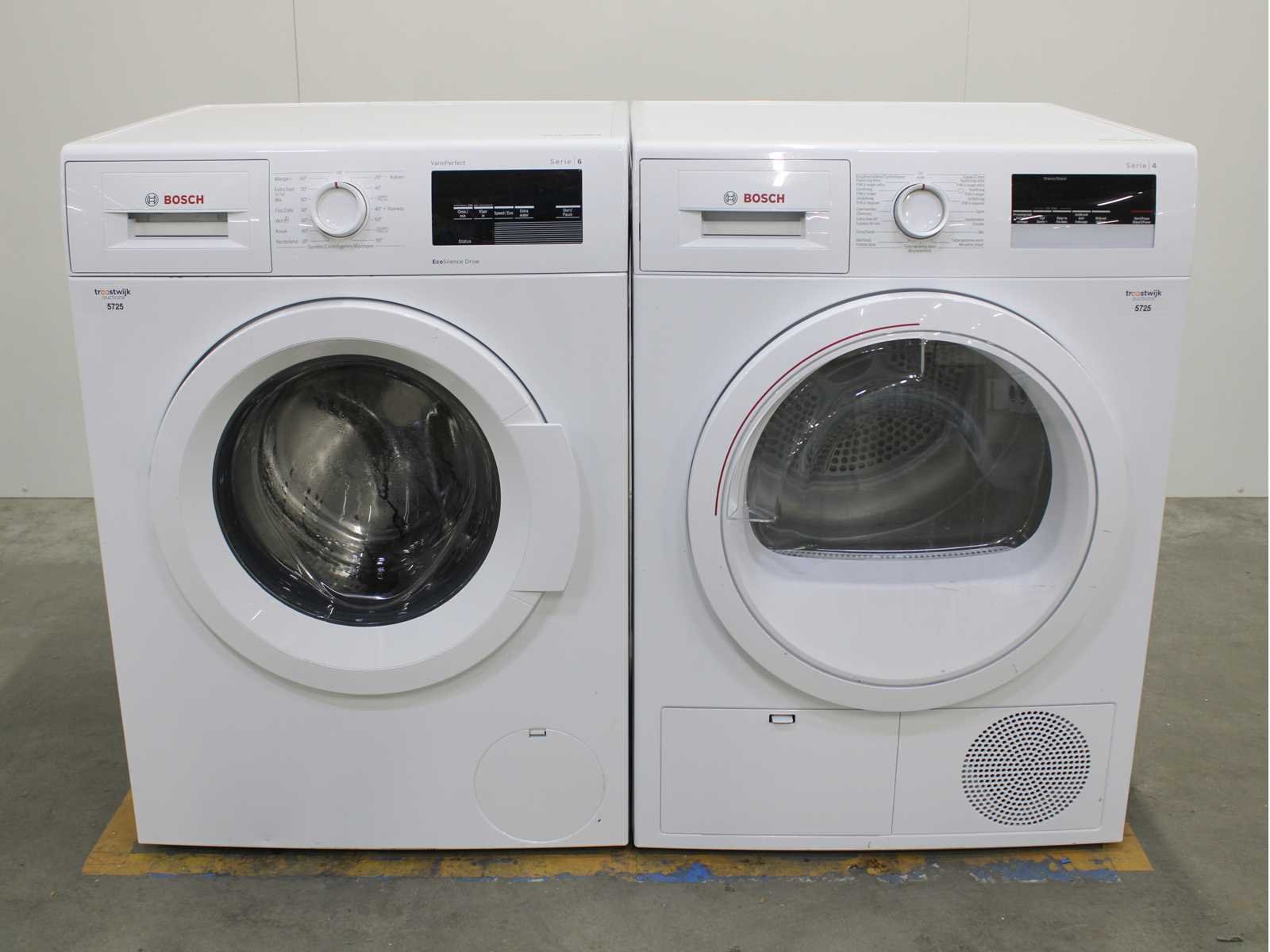 Deze wasmachine en wasdroger komen uit een partij jong gebruikt A-Merk witgoed. De machines zijn volledig getest, gereinigd en indien nodig gerepareerd. Houdt er rekening mee dat de machines lichte gebruikssporen kunnen hebben. Wasmachines en wasdrogers hebben vaak standaard afmetingen. Hoogte 85cm, Breedte 60cm en Diepte 60 tot 70cm, incl. uitstekende slangen e.d. aan de achterzijde. Als de machine vrij komt te staan is de afmeting minder relevant. Wil je de machine in een nis plaatsen of inbouwen? Controleer dan de exacte afmetingen op basis van het aangeboden merk en model/type. Within 7 days Merk: Bosch Serienummer: WAT28321NL/18 en WTH85271FG/04