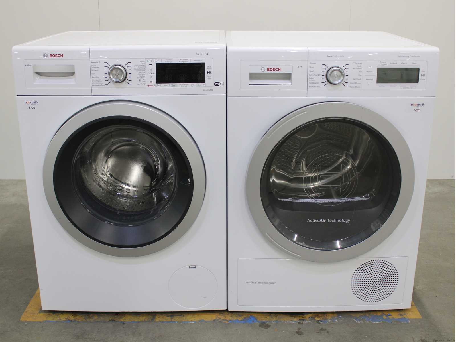 Deze wasmachine en wasdroger komen uit een partij jong gebruikt A-Merk witgoed. De machines zijn volledig getest, gereinigd en indien nodig gerepareerd. Houdt er rekening mee dat de machines lichte gebruikssporen kunnen hebben. Wasmachines en wasdrogers hebben vaak standaard afmetingen. Hoogte 85cm, Breedte 60cm en Diepte 60 tot 70cm, incl. uitstekende slangen e.d. aan de achterzijde. Als de machine vrij komt te staan is de afmeting minder relevant. Wil je de machine in een nis plaatsen of inbouwen? Controleer dan de exacte afmetingen op basis van het aangeboden merk en model/type. Within 7 days Merk: Bosch Serienummer: WAWH2642FG en WTY87700NL