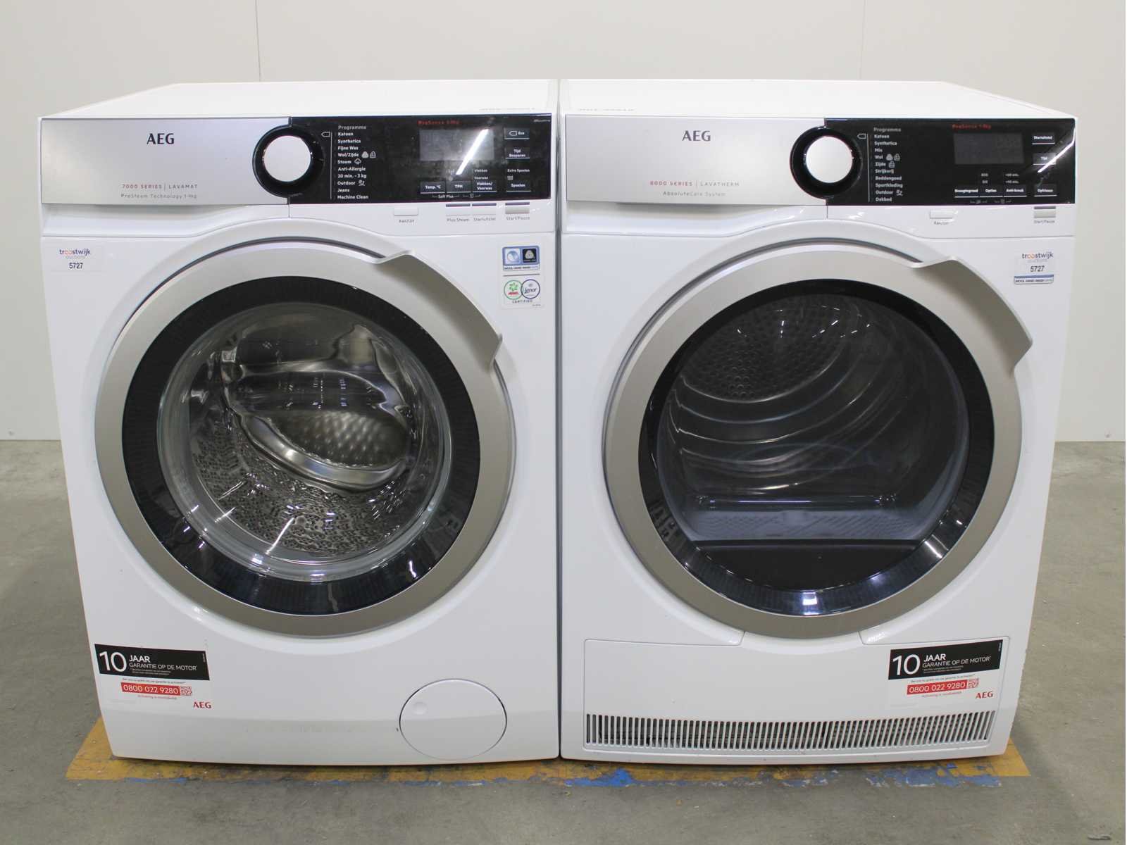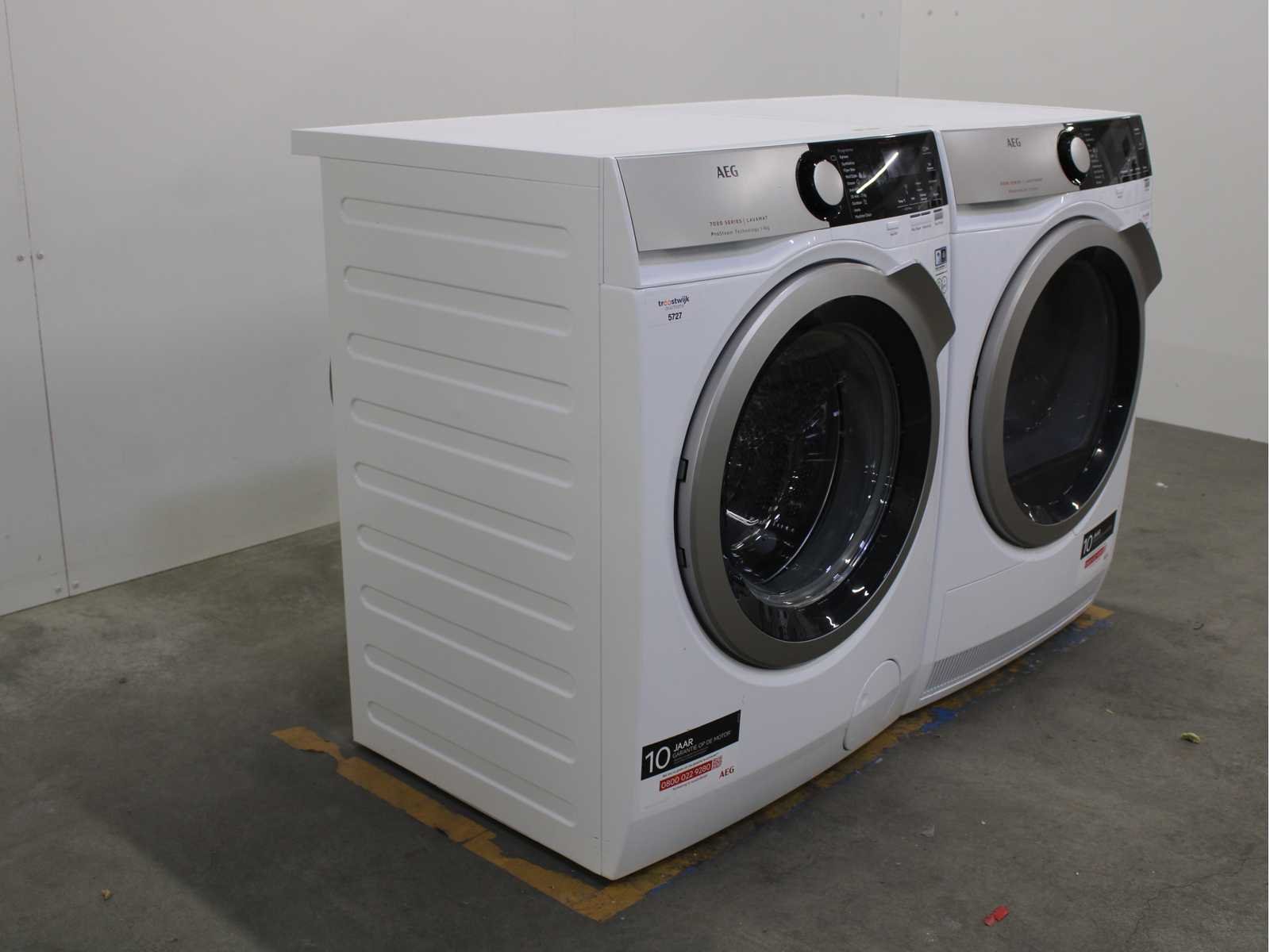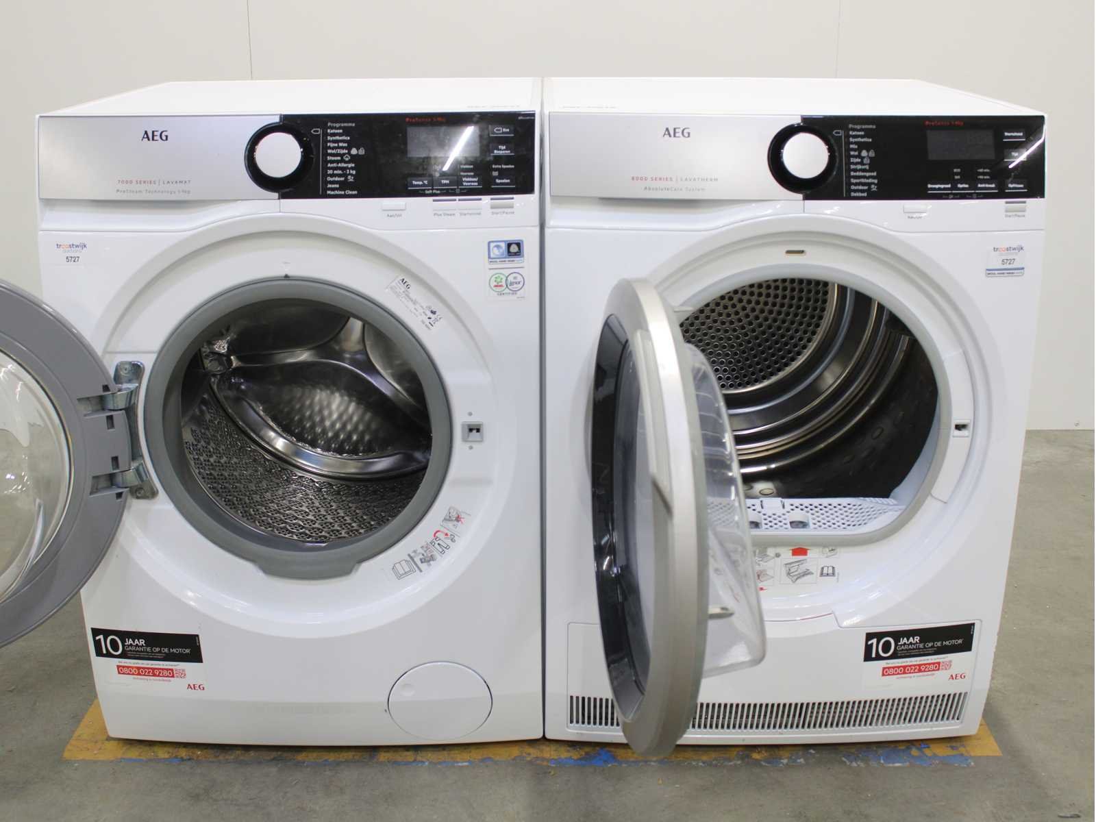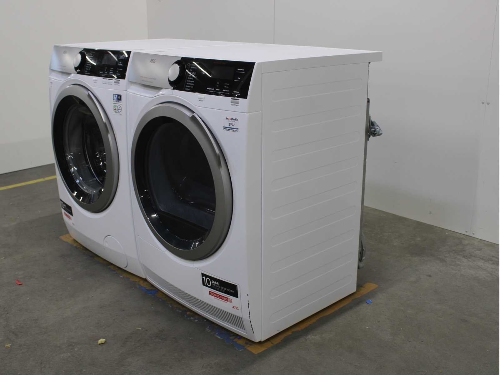 Deze wasmachine en wasdroger komen uit een partij jong gebruikt A-Merk witgoed. De machines zijn volledig getest, gereinigd en indien nodig gerepareerd. Houdt er rekening mee dat de machines lichte gebruikssporen kunnen hebben. Wasmachines en wasdrogers hebben vaak standaard afmetingen. Hoogte 85cm, Breedte 60cm en Diepte 60 tot 70cm, incl. uitstekende slangen e.d. aan de achterzijde. Als de machine vrij komt te staan is de afmeting minder relevant. Wil je de machine in een nis plaatsen of inbouwen? Controleer dan de exacte afmetingen op basis van het aangeboden merk en model/type. Within 7 days Merk: AEG Serienummer: L7FE96ES en T8DE84ES