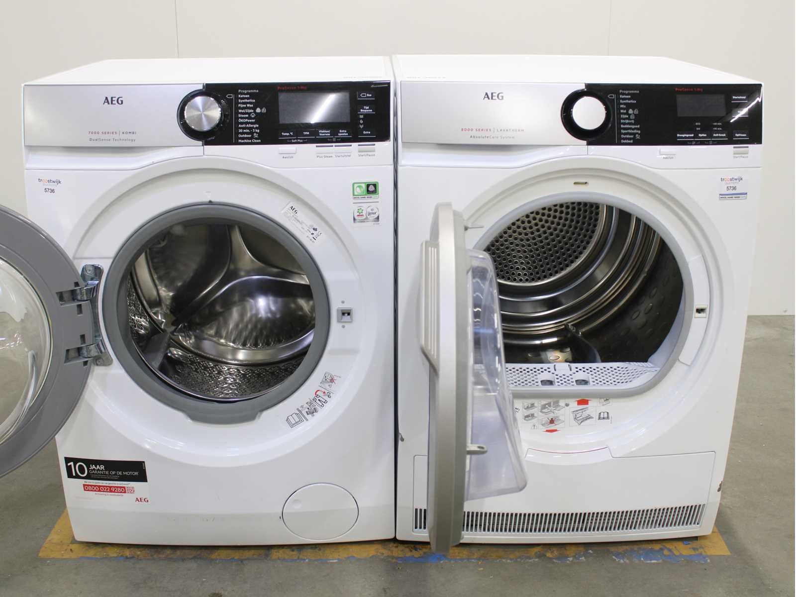 Deze wasmachine en wasdroger komen uit een partij jong gebruikt A-Merk witgoed. De machines zijn volledig getest, gereinigd en indien nodig gerepareerd. Houdt er rekening mee dat de machines lichte gebruikssporen kunnen hebben. Wasmachines en wasdrogers hebben vaak standaard afmetingen. Hoogte 85cm, Breedte 60cm en Diepte 60 tot 70cm, incl. uitstekende slangen e.d. aan de achterzijde. Als de machine vrij komt te staan is de afmeting minder relevant. Wil je de machine in een nis plaatsen of inbouwen? Controleer dan de exacte afmetingen op basis van het aangeboden merk en model/type. Within 7 days Merk: AEG Serienummer: L8FE84CS en T8DE84ES