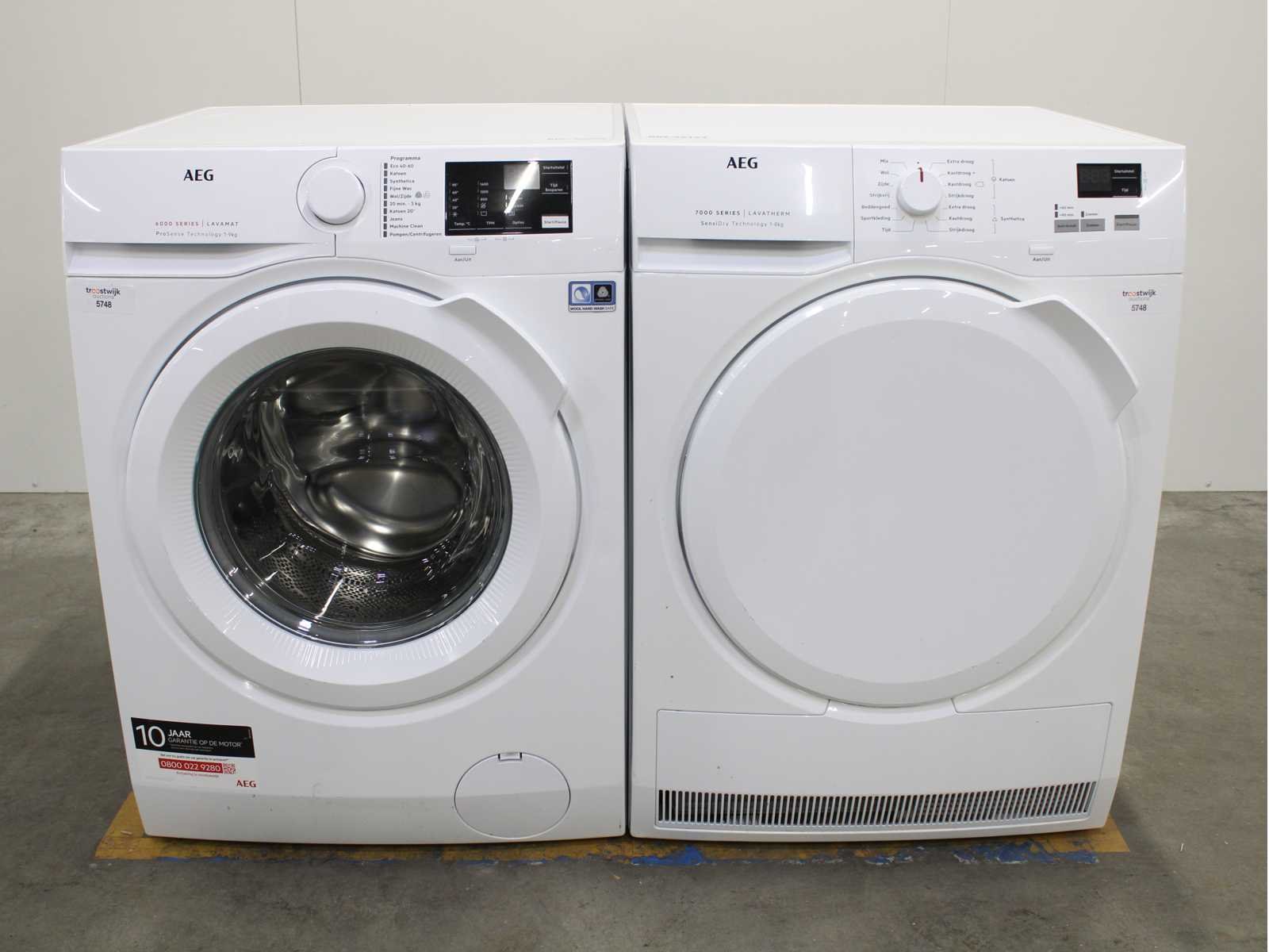 Deze wasmachine en wasdroger komen uit een partij jong gebruikt A-Merk witgoed. De machines zijn volledig getest, gereinigd en indien nodig gerepareerd. Houdt er rekening mee dat de machines lichte gebruikssporen kunnen hebben. Wasmachines en wasdrogers hebben vaak standaard afmetingen. Hoogte 85cm, Breedte 60cm en Diepte 60 tot 70cm, incl. uitstekende slangen e.d. aan de achterzijde. Als de machine vrij komt te staan is de afmeting minder relevant. Wil je de machine in een nis plaatsen of inbouwen? Controleer dan de exacte afmetingen op basis van het aangeboden merk en model/type. Within 7 days Merk: AEG Serienummer: L6FB94IW en T7DBN460