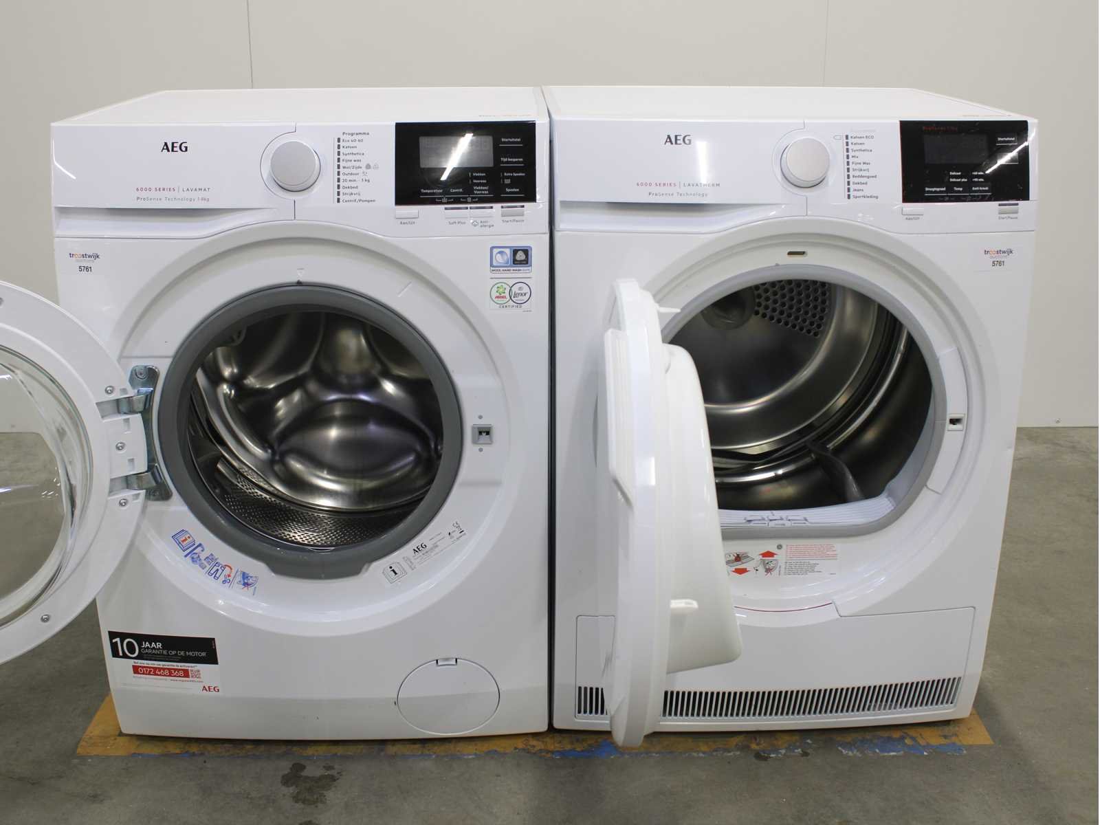 Deze wasmachine en wasdroger komen uit een partij jong gebruikt A-Merk witgoed. De machines zijn volledig getest, gereinigd en indien nodig gerepareerd. Houdt er rekening mee dat de machines lichte gebruikssporen kunnen hebben. Wasmachines en wasdrogers hebben vaak standaard afmetingen. Hoogte 85cm, Breedte 60cm en Diepte 60 tot 70cm, incl. uitstekende slangen e.d. aan de achterzijde. Als de machine vrij komt te staan is de afmeting minder relevant. Wil je de machine in een nis plaatsen of inbouwen? Controleer dan de exacte afmetingen op basis van het aangeboden merk en model/type. Within 7 days Merk: AEG Serienummer: L6FBN84GV en T6DB72GP