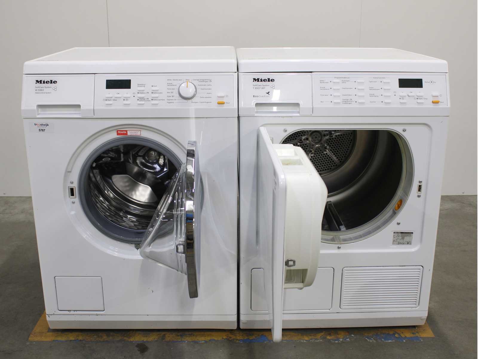 Deze wasmachine en wasdroger komen uit een partij jong gebruikt A-Merk witgoed. De machines zijn volledig getest, gereinigd en indien nodig gerepareerd. Houdt er rekening mee dat de machines lichte gebruikssporen kunnen hebben. Wasmachines en wasdrogers hebben vaak standaard afmetingen. Hoogte 85cm, Breedte 60cm en Diepte 60 tot 70cm, incl. uitstekende slangen e.d. aan de achterzijde. Als de machine vrij komt te staan is de afmeting minder relevant. Wil je de machine in een nis plaatsen of inbouwen? Controleer dan de exacte afmetingen op basis van het aangeboden merk en model/type. Within 7 days Merk: Miele Serienummer: W5963 en T8937WP