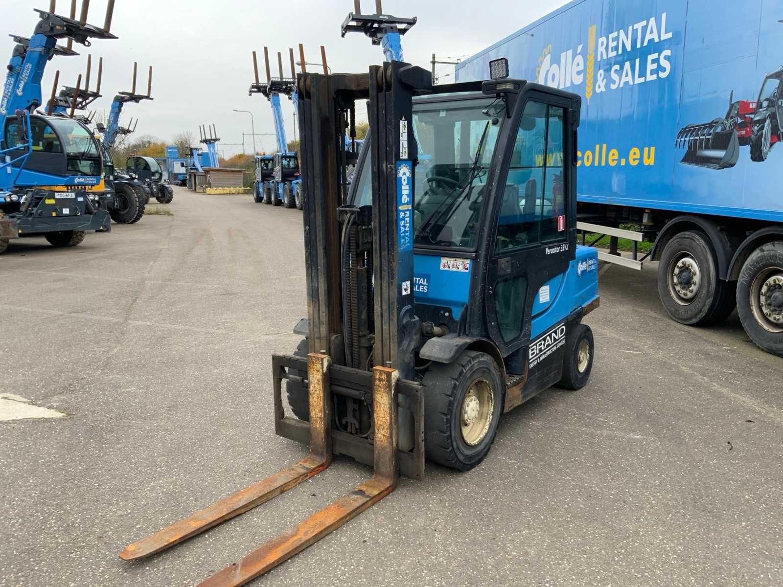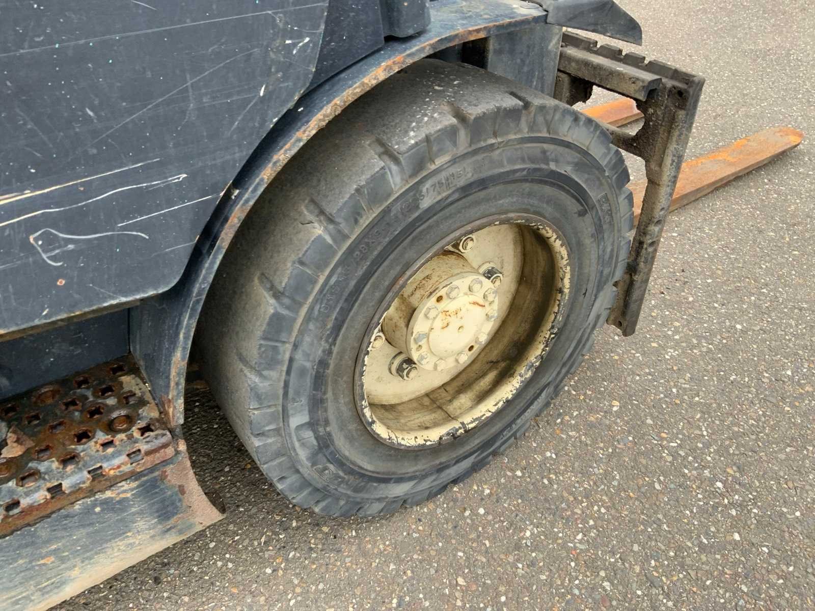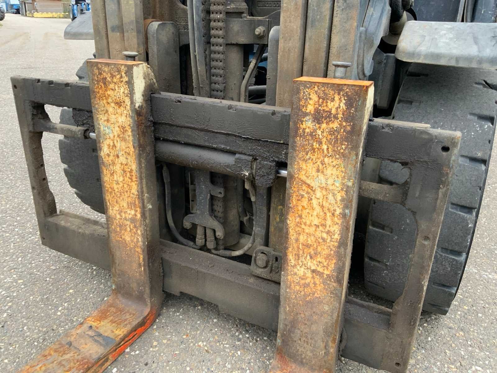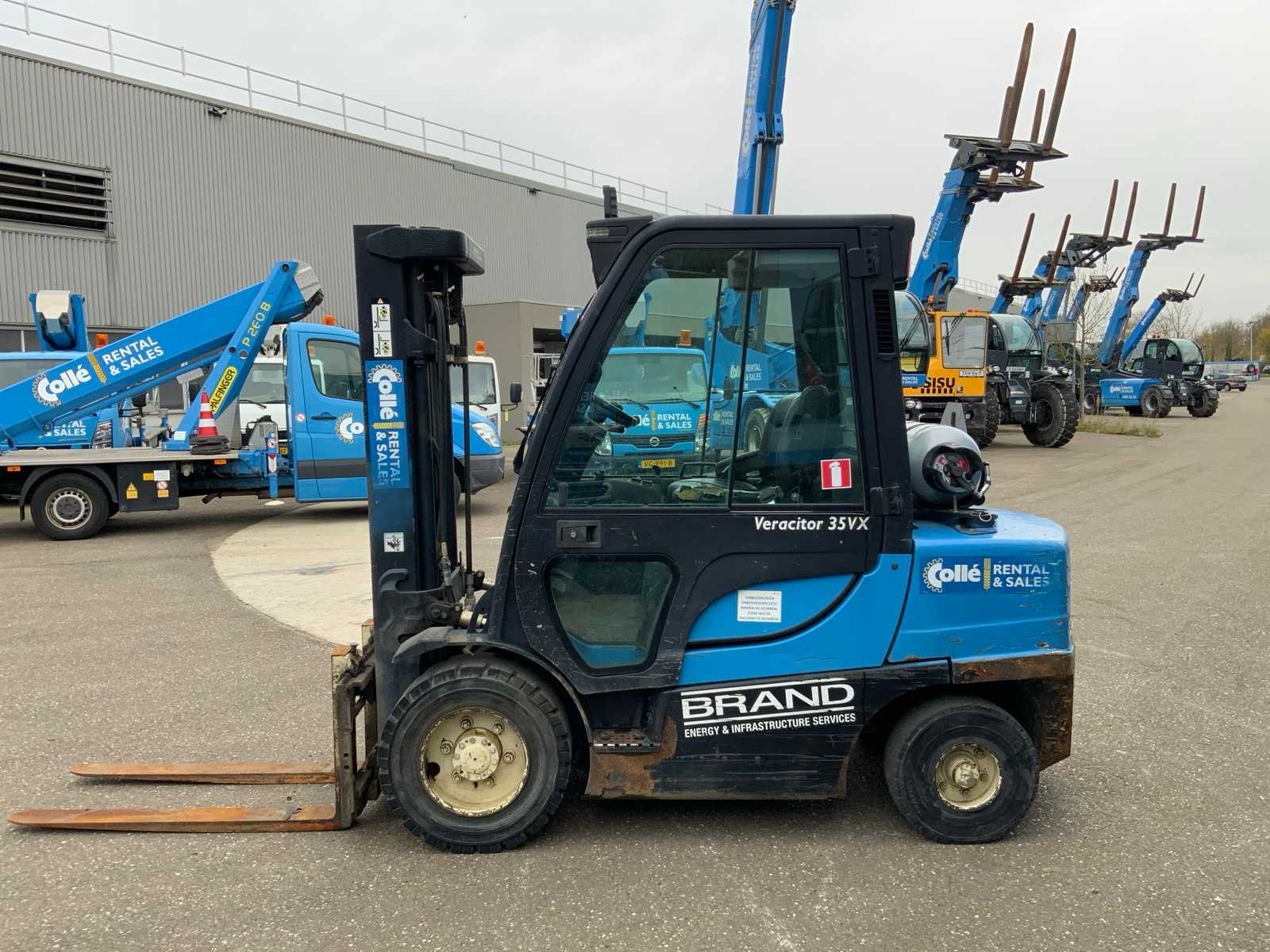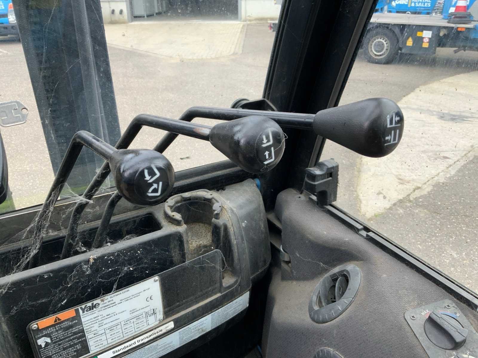 Merk: Yale Type: GLP35VX Bouwjaar: 2015 Brandstof: LPG Aantal wielen: 4 Afgelezen urenstand: 7540 Side-shift: true Triple mast: true Eigen gewicht: 5060kg Hefvermogen: 3320kg Lepellengte: 1200mm Max. hefhoogte: 4615mm Vol rubber banden: true Minimale doorrijhoogte: 2250mm Totale afmeting Breedte: 1200mm