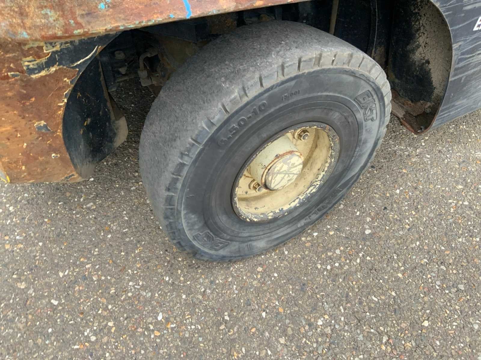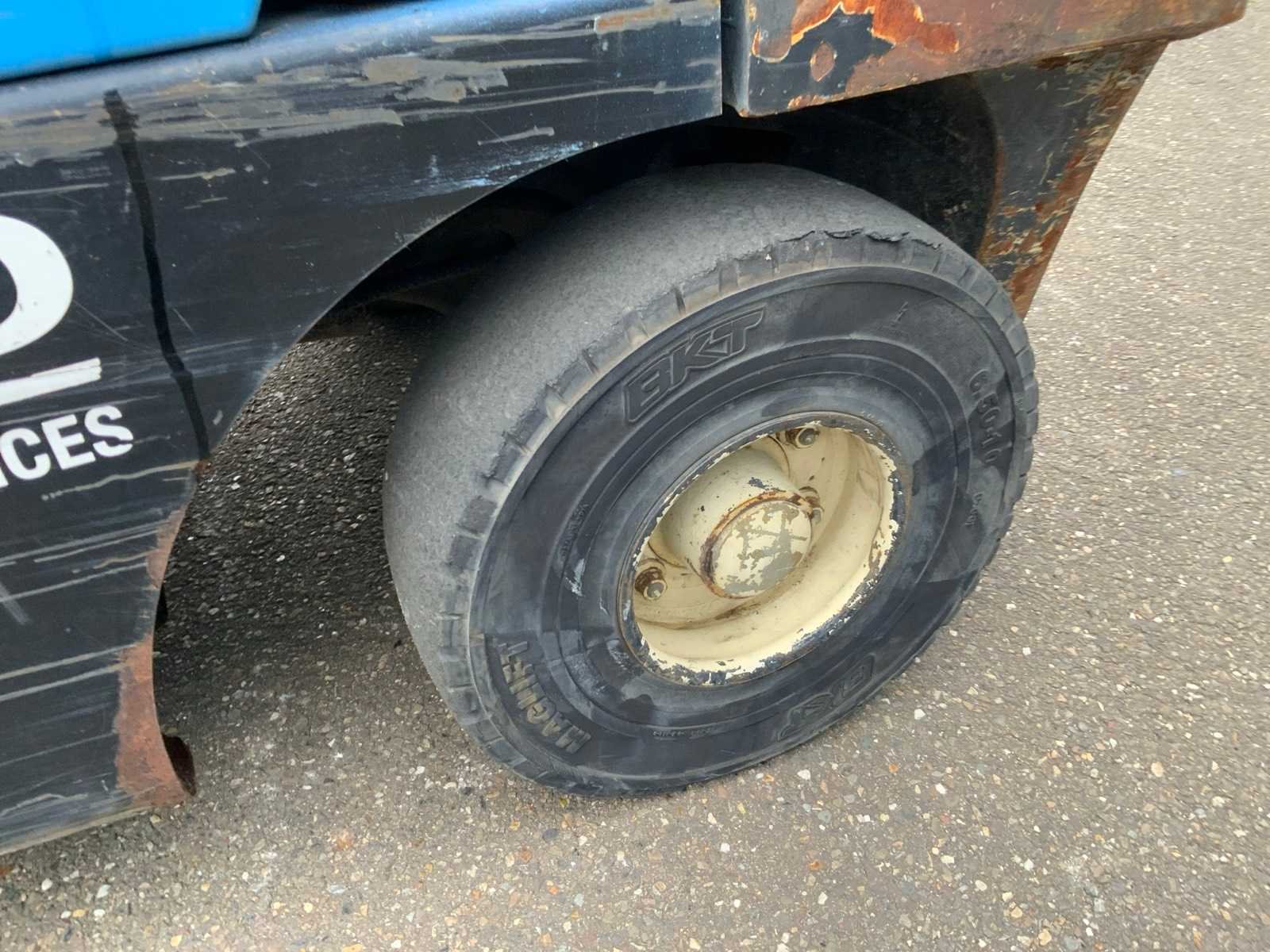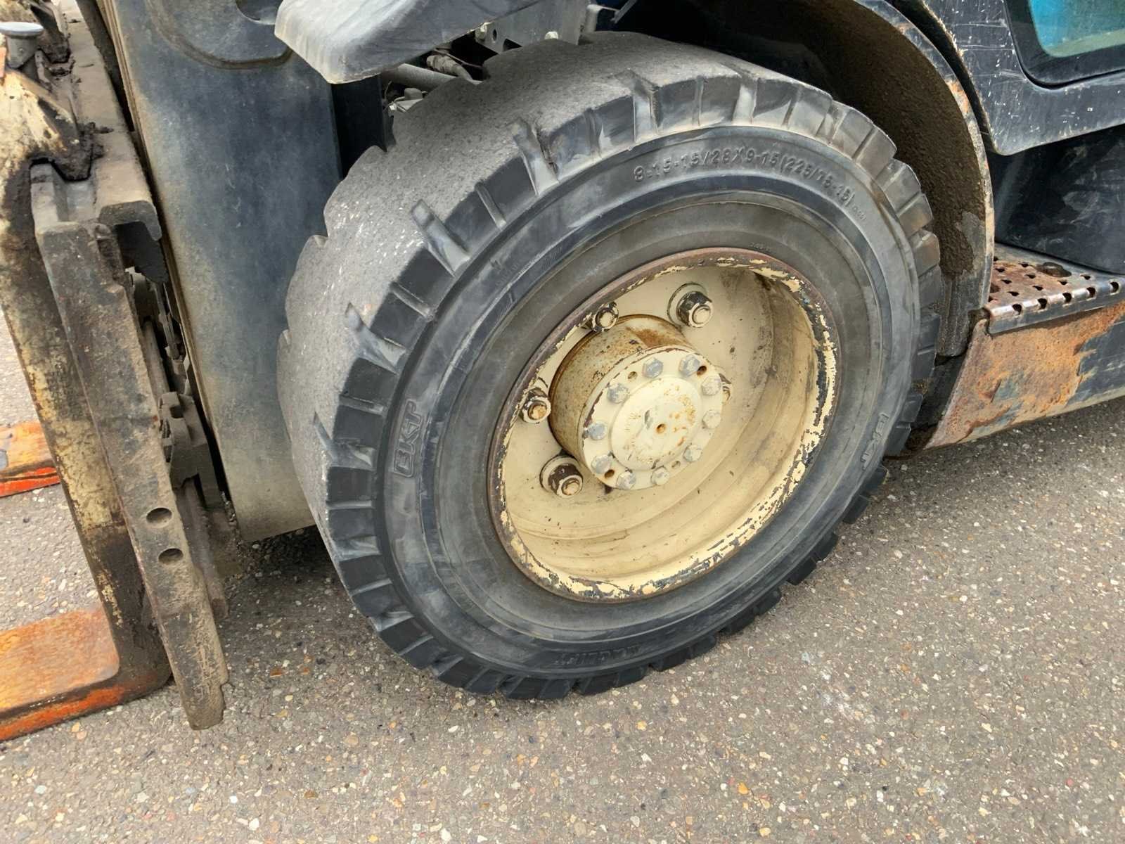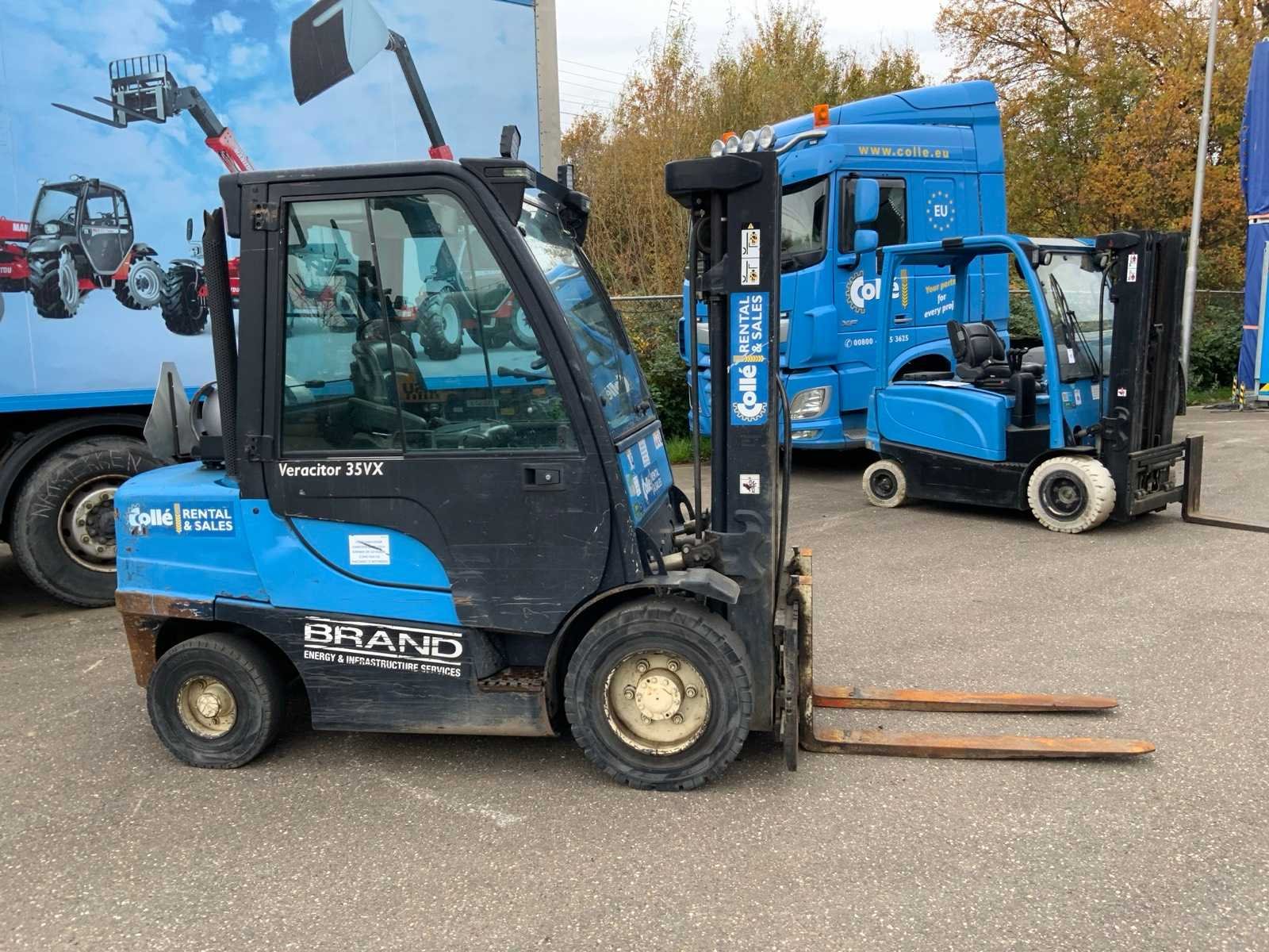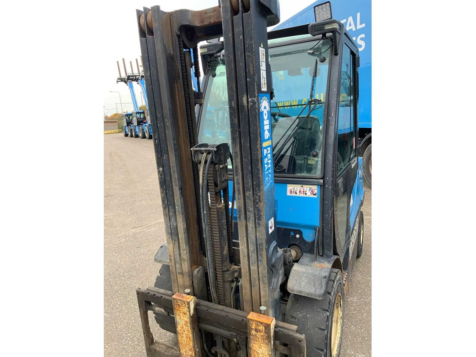 Merk: Yale Type: GLP35VX Bouwjaar: 2015 Brandstof: LPG Aantal wielen: 4 Afgelezen urenstand: 7540 Side-shift: true Triple mast: true Eigen gewicht: 5060kg Hefvermogen: 3320kg Lepellengte: 1200mm Max. hefhoogte: 4615mm Vol rubber banden: true Minimale doorrijhoogte: 2250mm Totale afmeting Breedte: 1200mm