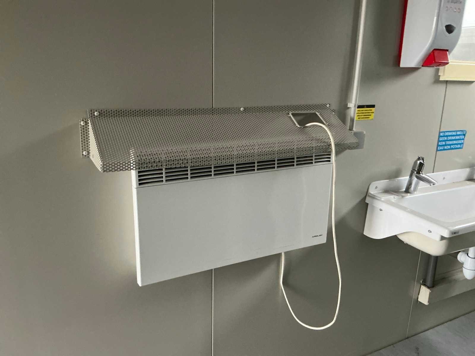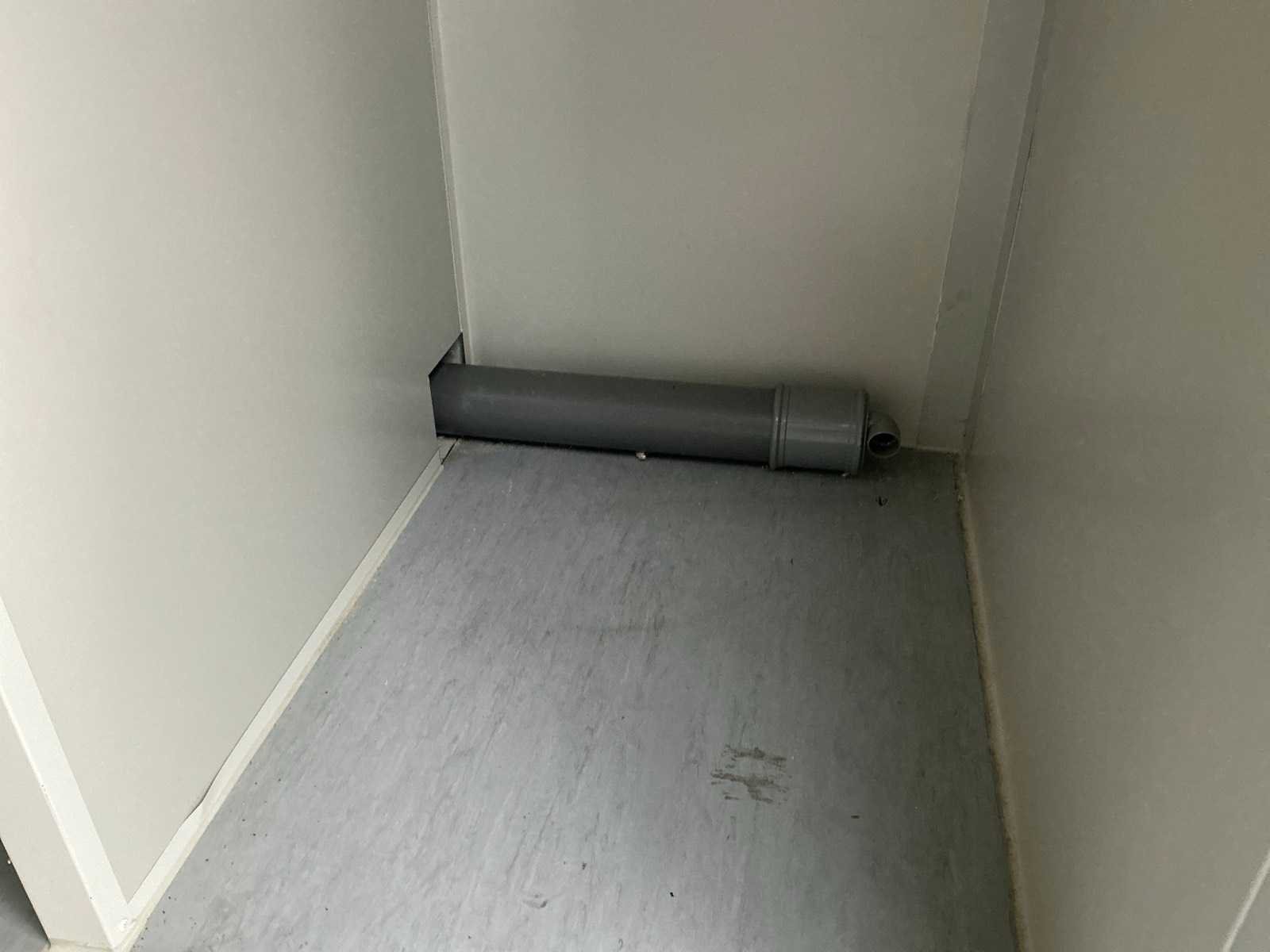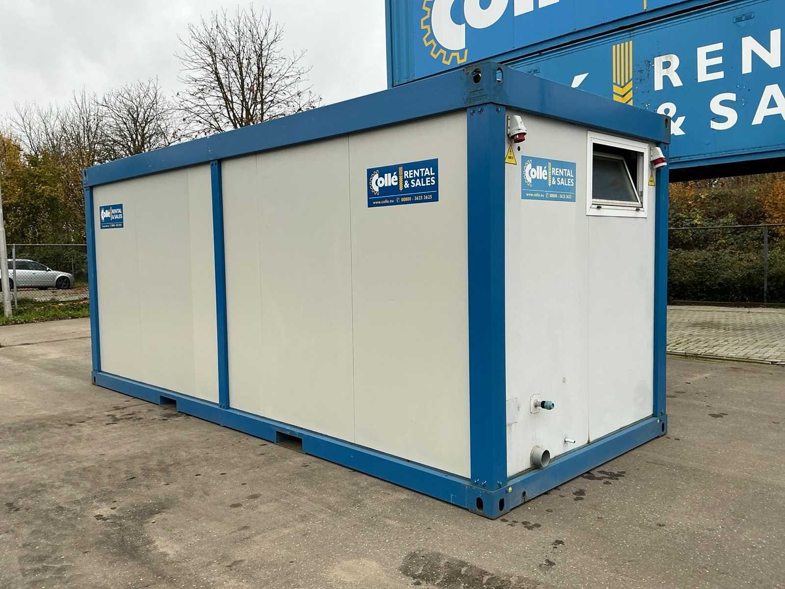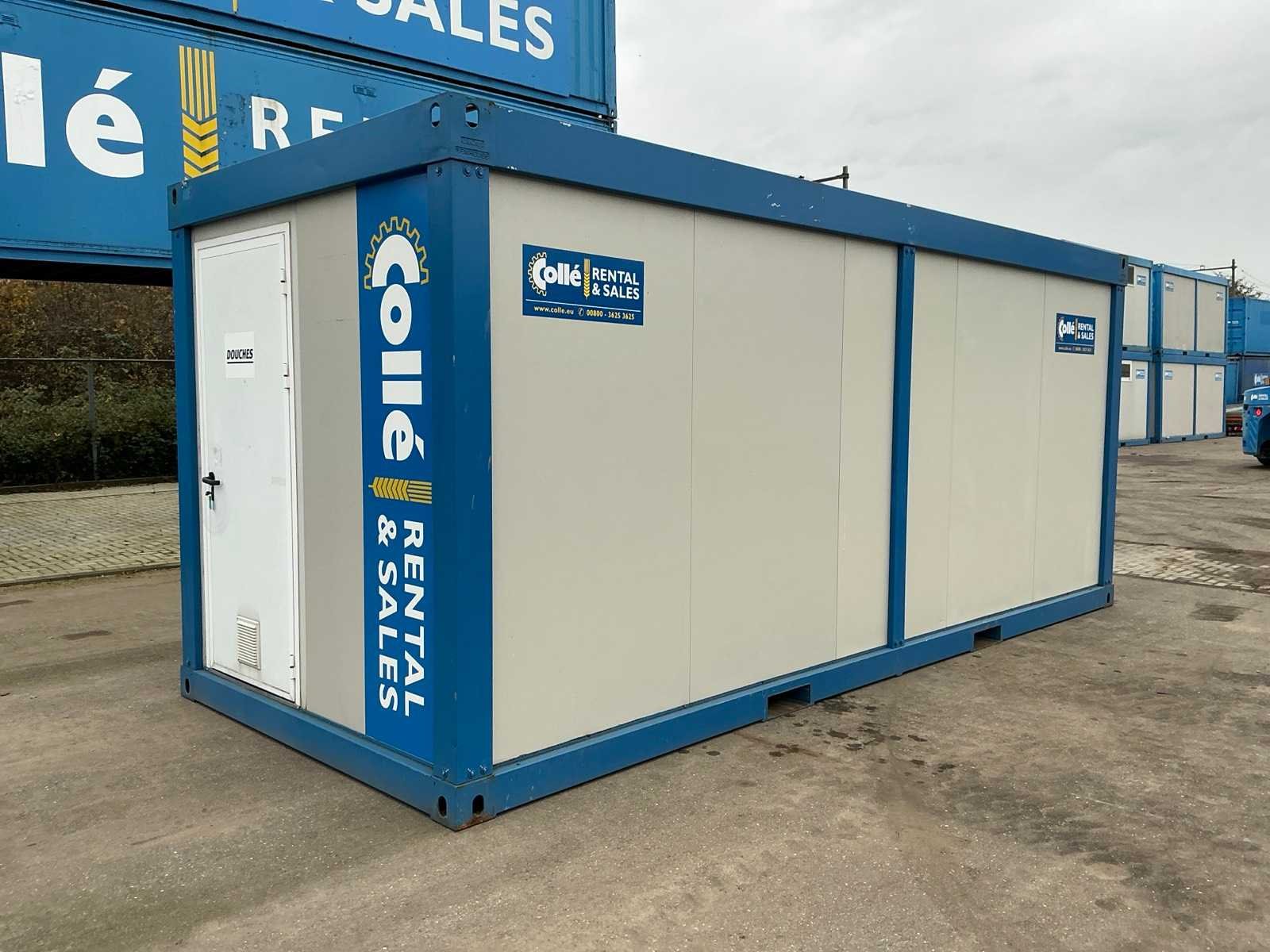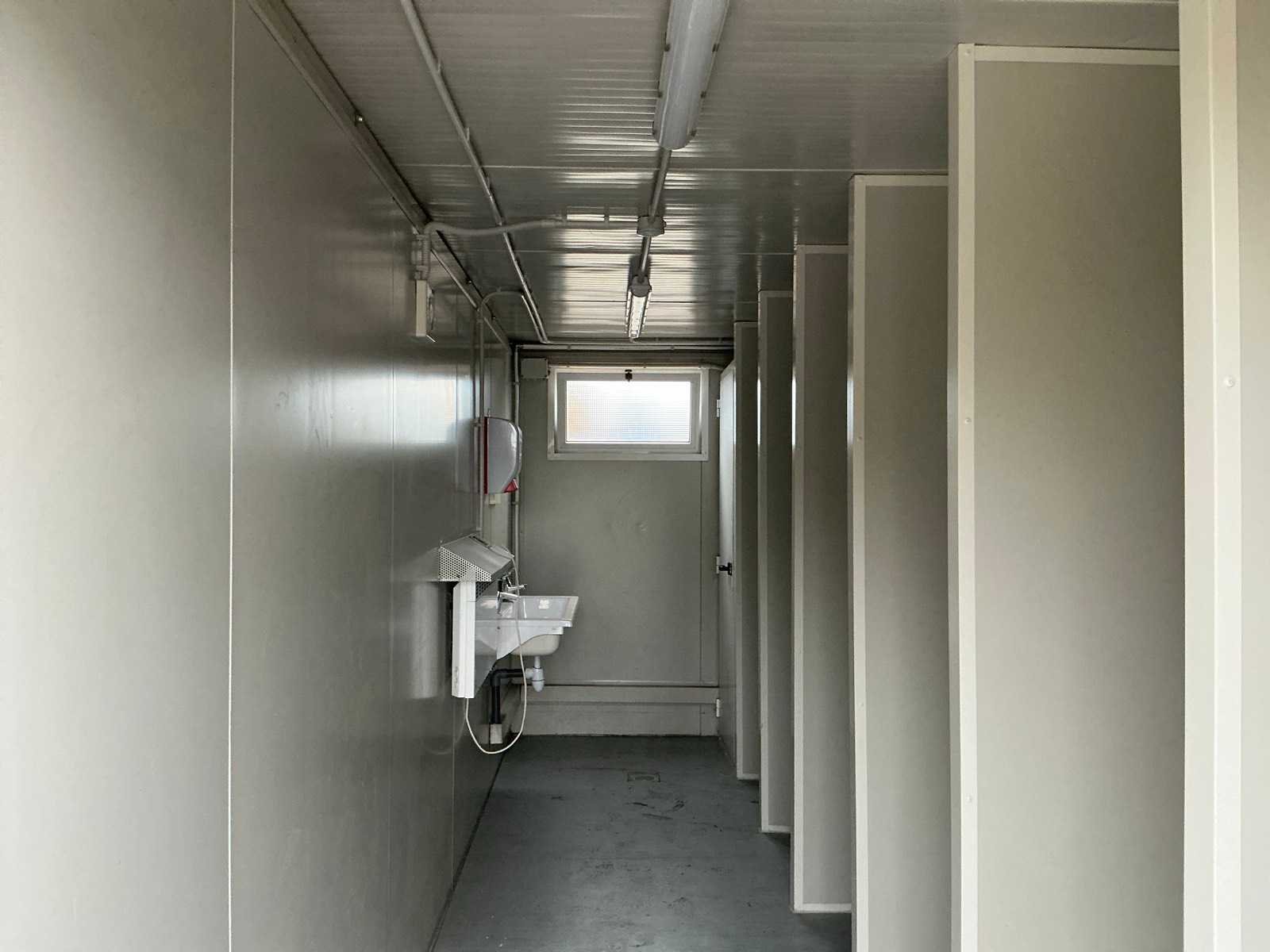 6x doucheruimte zonder douchebak; zonder douchedeur; Neotherme elektrische boiler; elektrische kachel; aansluiting 400 Volt 32 Ampère; 1x male, 1x female; vorkliftsleuven Merk: Newhouse Aantal ramen: 1 Aantal wastafels: 1 Aantal douches: 6 Totale afmeting L: 6050mm Totale afmeting Breedte: 2440mm Totale afmeting Hoogte: 2600mm