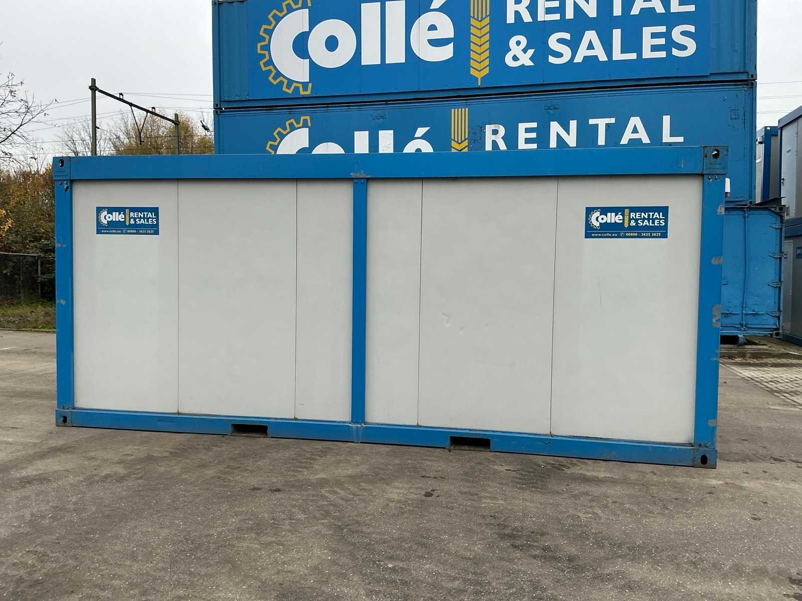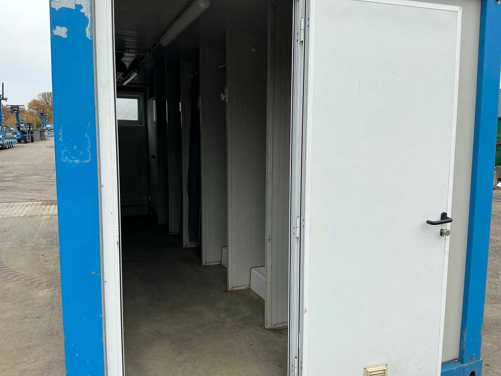 Elektrische kachel; aansluiting 400 Volt 32 Ampère; 1x male, 1x female; vorkliftsleuven Merk: Newhouse Aantal ramen: 1 Aantal wastafels: 1 Aantal douches: 6 Totale afmeting L: 6050mm Totale afmeting Breedte: 2440mm Totale afmeting Hoogte: 2600mm