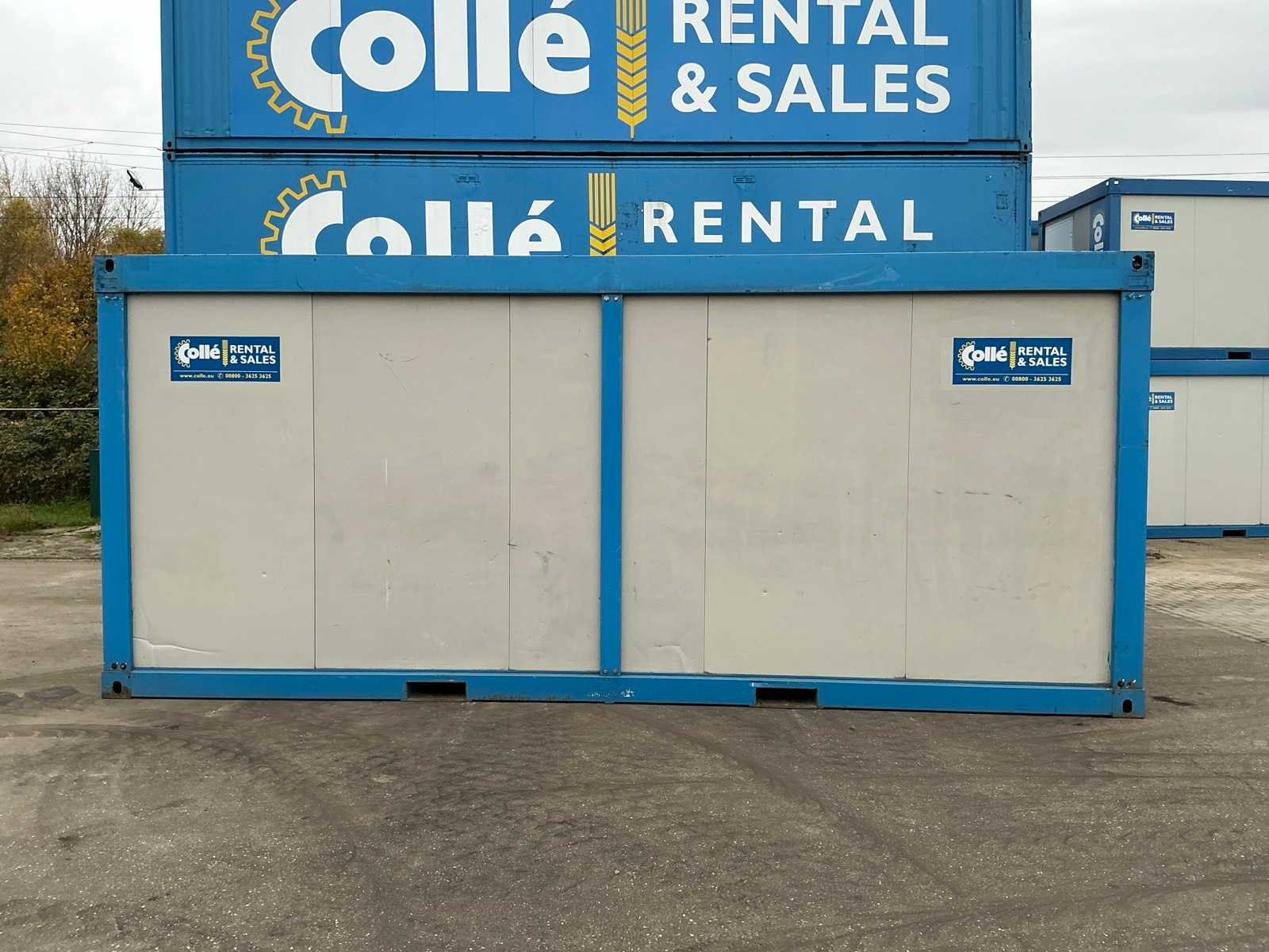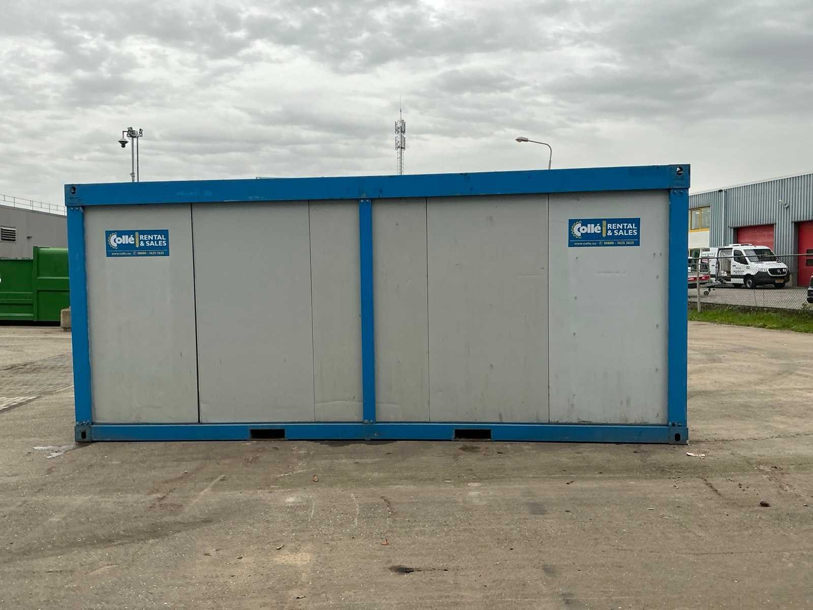 1x loopdeur; elektrische kachel; 3x stopcontact; aansluiting 400 Volt 32 Ampère; 1x male, 1x female; vorkliftsleuven Merk: Newhouse Afmeting l: 6050mm Aantal ramen: 1 Totale afmeting L: 6500mm Totale afmeting Breedte: 2950mm Totale afmeting Hoogte: 2600mm