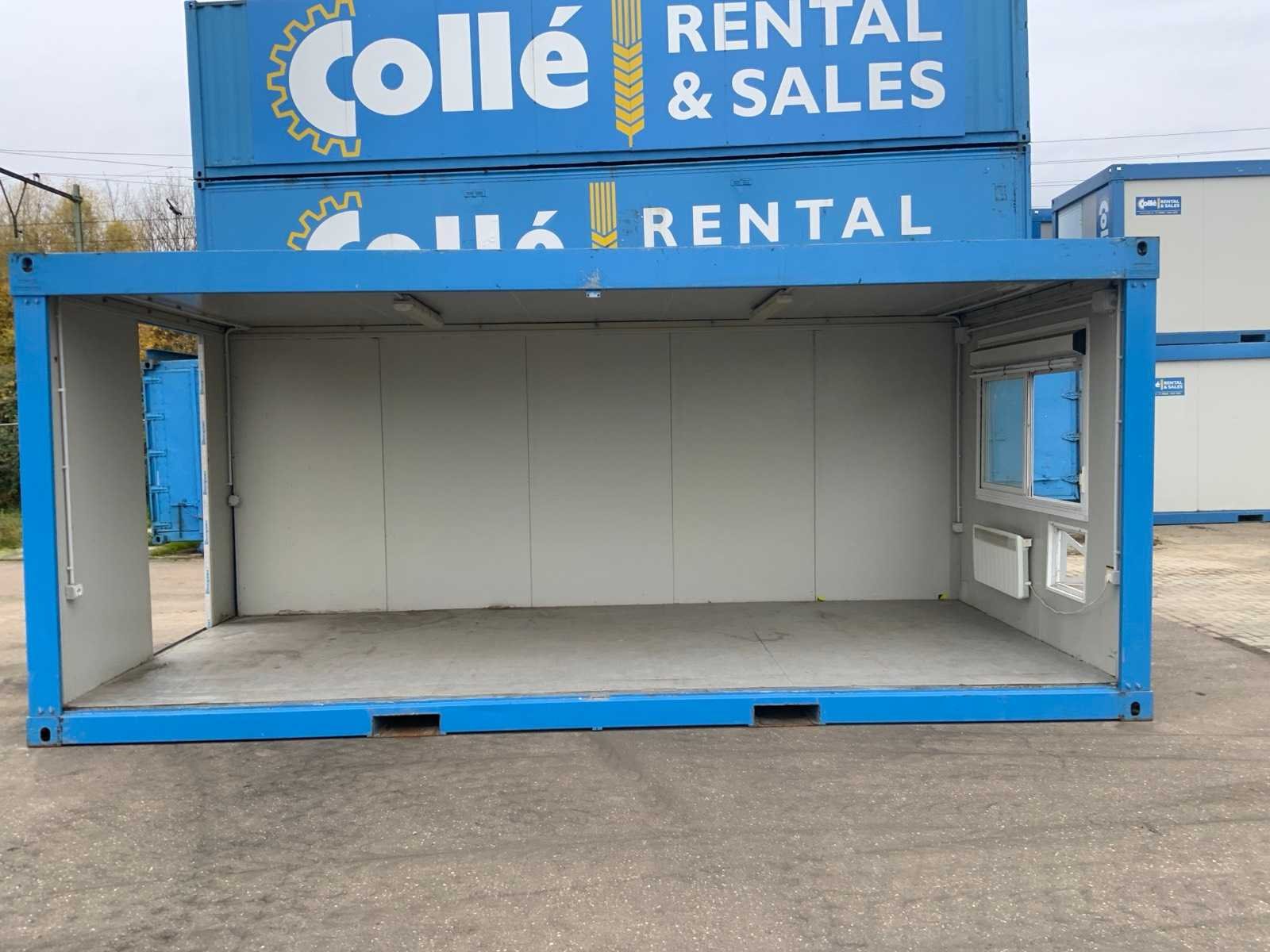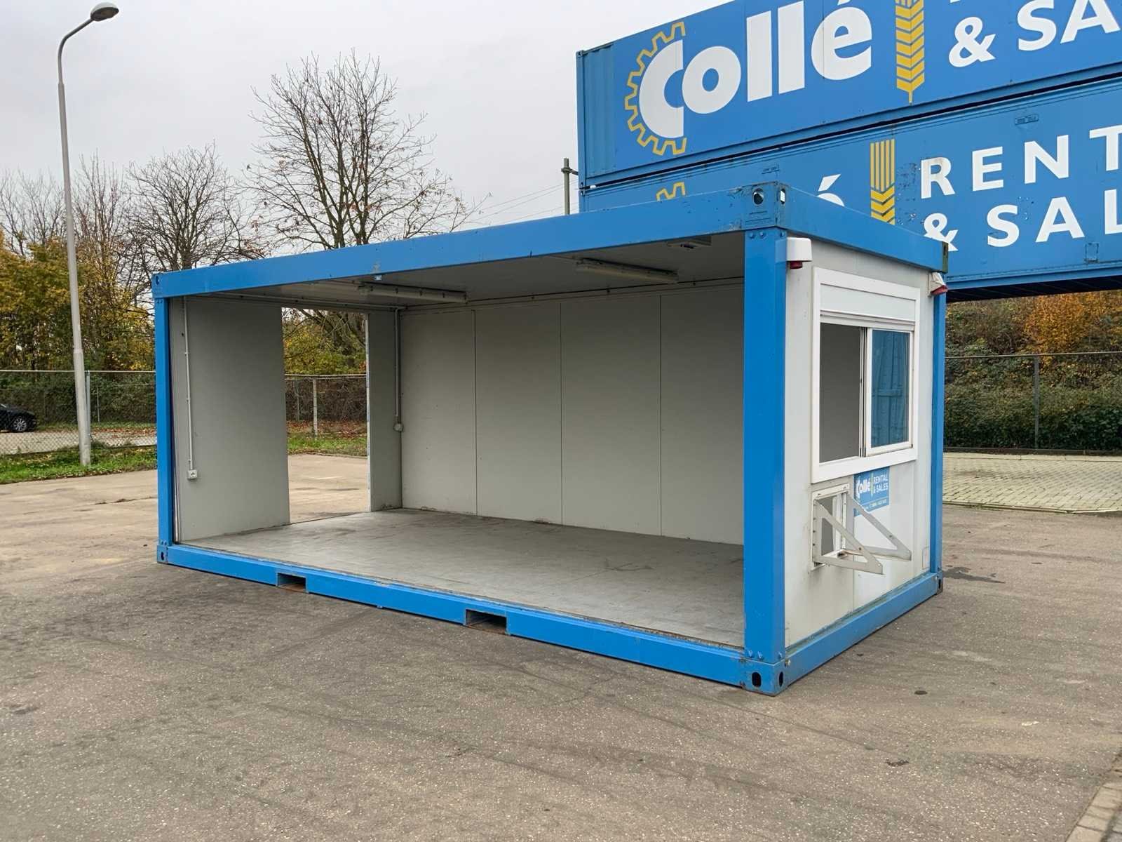 1x deuropening; 1x raam met rolluik; 1x lange wand open; met opening voor airconditioning; voorzien van verlichting en elektra; vorkliftsleuven; Merk: Newhouse Schakelunit: true Afmeting l: 6050mm Aantal ramen: 1 Totale afmeting L: 6500mm Totale afmeting Breedte: 2950mm Totale afmeting Hoogte: 2600mm