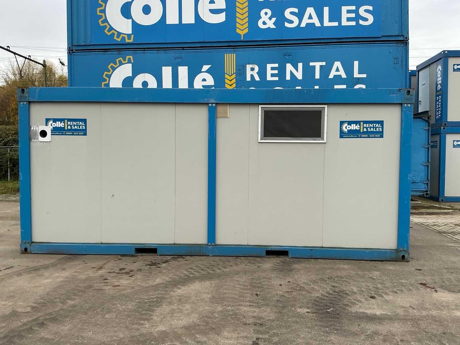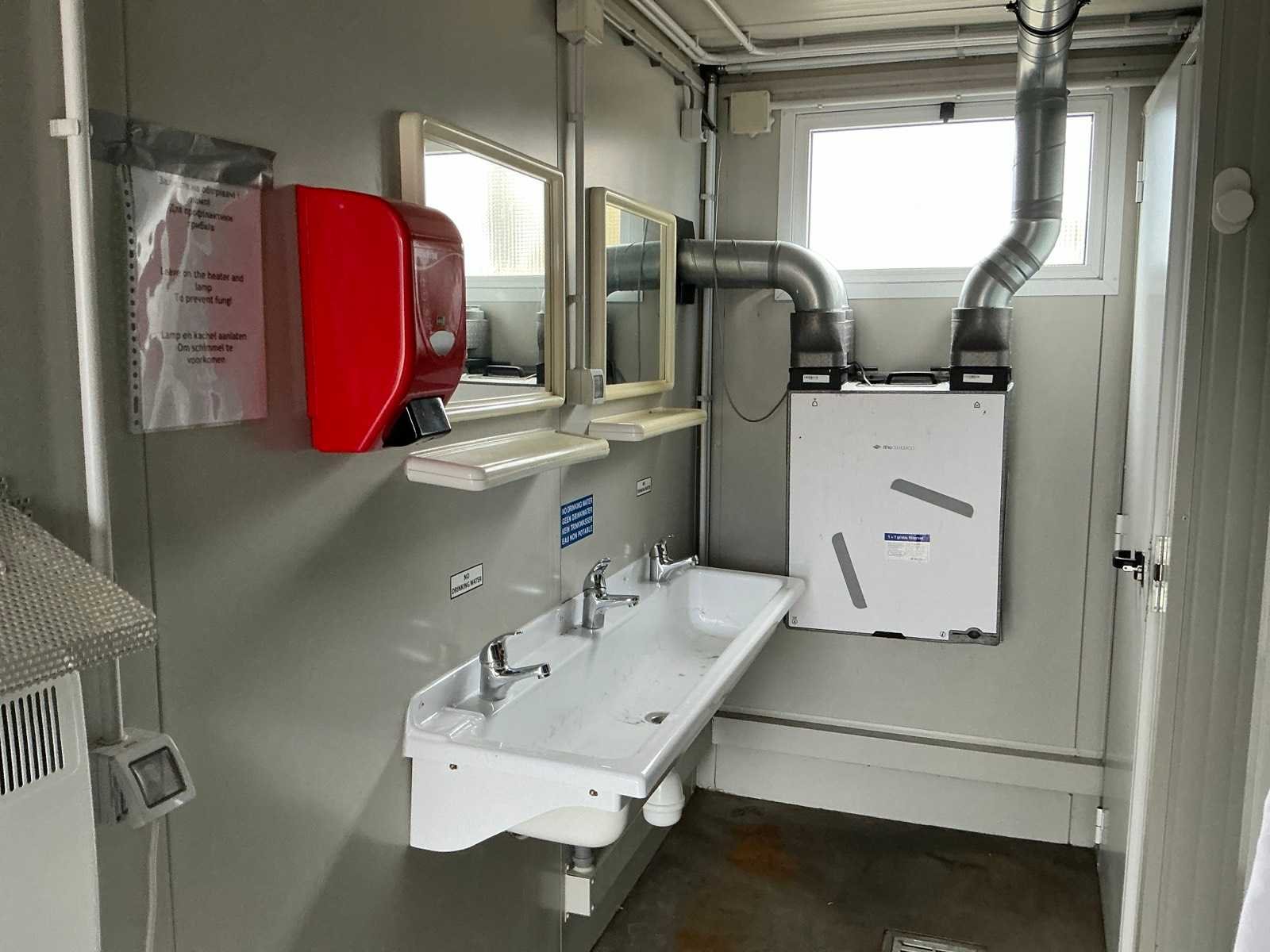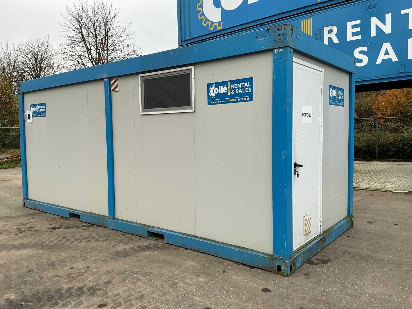 Ariston elektrische boiler; elektrische kachel; aansluiting 400 Volt 32 Ampère; 1x male, 1x female; vorkliftsleuven Merk: Newhouse Aantal ramen: 2 Aantal wastafels: 1 Aantal douches: 6 Totale afmeting L: 6050mm Totale afmeting Breedte: 2440mm Totale afmeting Hoogte: 2600mm
