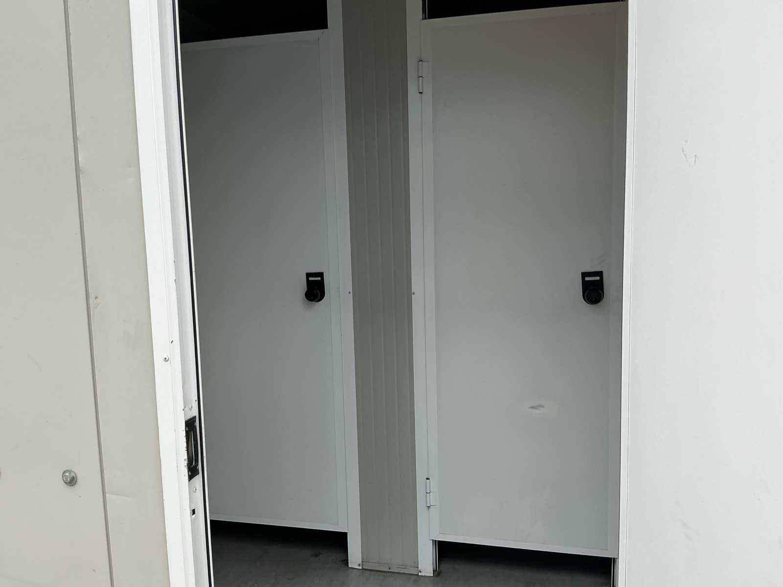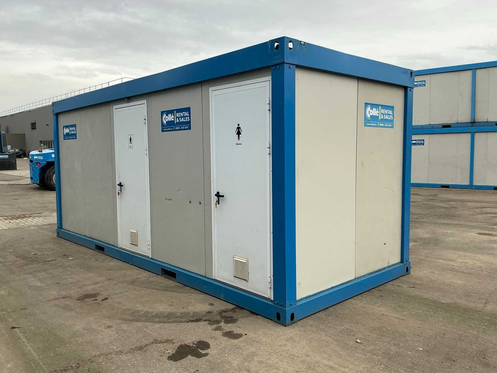 4x toilet; 2x urinoir; 2x vrouwen toilet; 1x mannen toilet; elektrische boiler; elektrische kachel; aansluiting 400 Volt 32 Ampère; 1x male, 1x female; vorkliftsleuven Merk: Newhouse Aantal ramen: 2 Aantal wastafels: 1 Totale afmeting L: 6050mm Totale afmeting Breedte: 2440mm Totale afmeting Hoogte: 2600mm