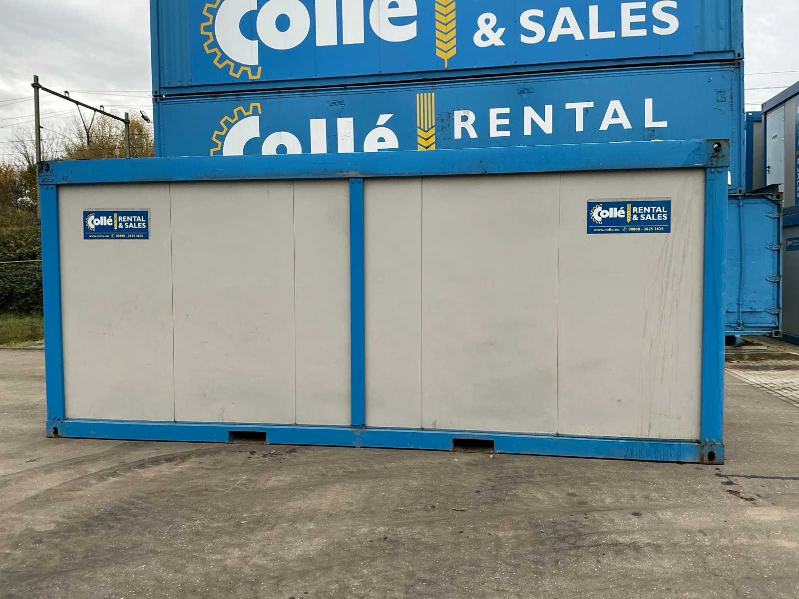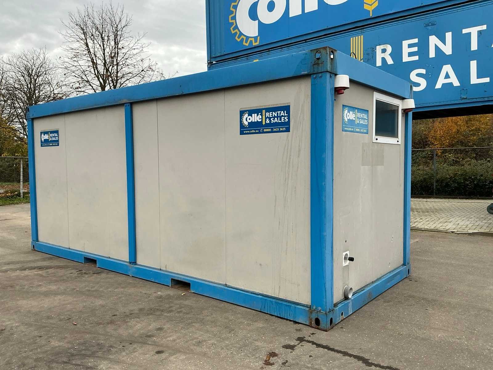 3x toilet; 3x urinoir; Tesy elektrische boiler; elektrische kachel; aansluiting 400 Volt 32 Ampère; 1x male, 1x female; vorkliftsleuven; 1 onderdeel zijwand ontbreekt Merk: Newhouse Aantal ramen: 1 Aantal wastafels: 1 Totale afmeting L: 6050mm Totale afmeting Breedte: 2440mm Totale afmeting Hoogte: 2600mm