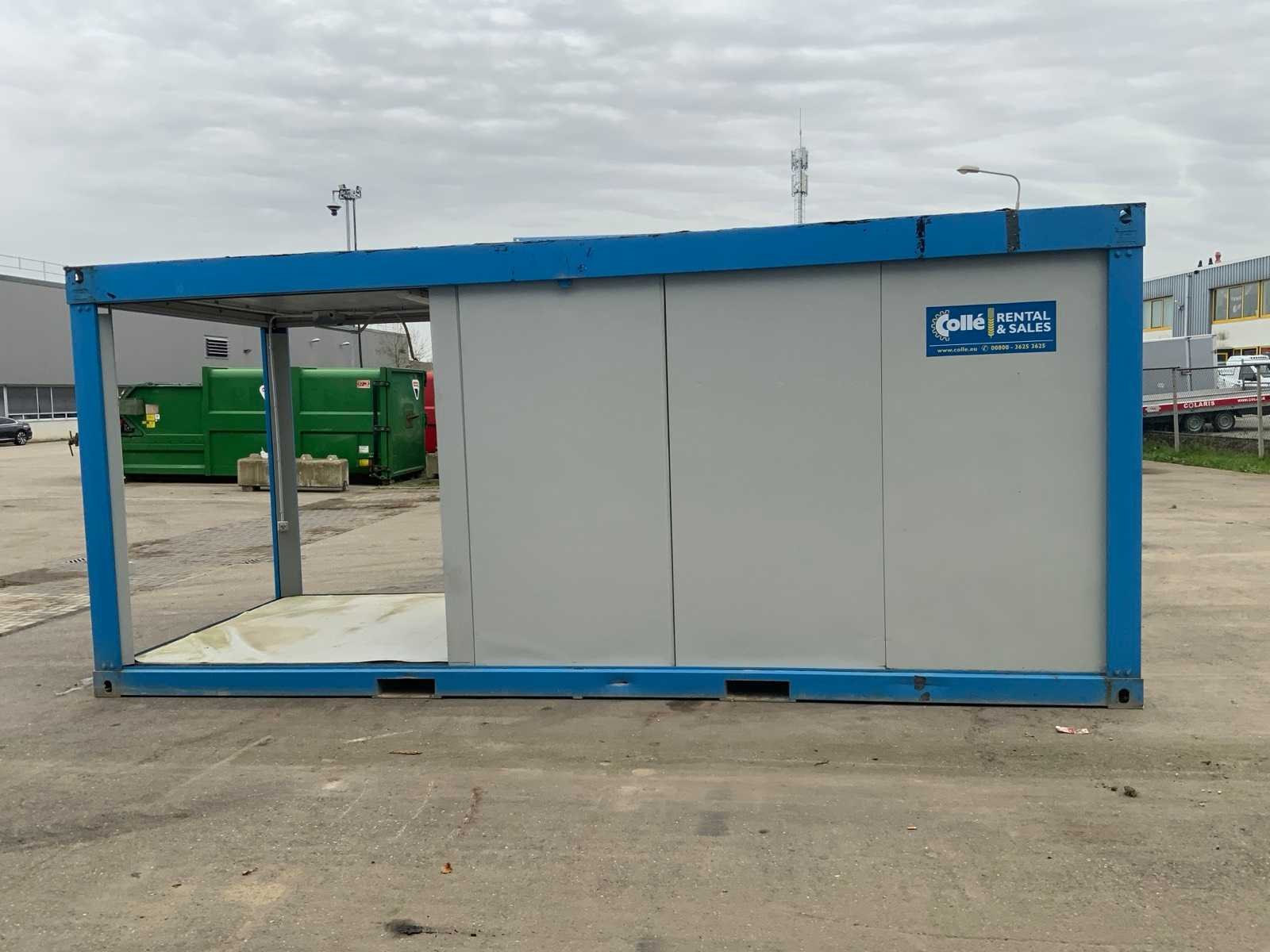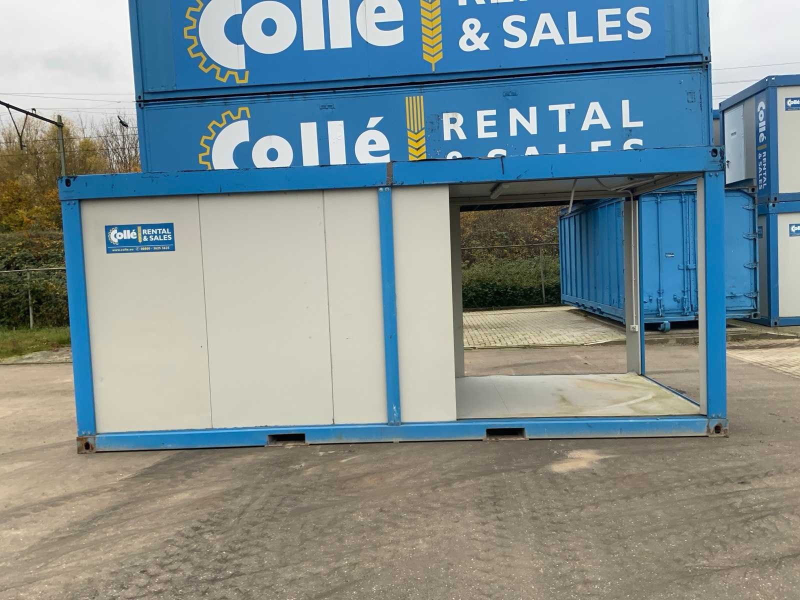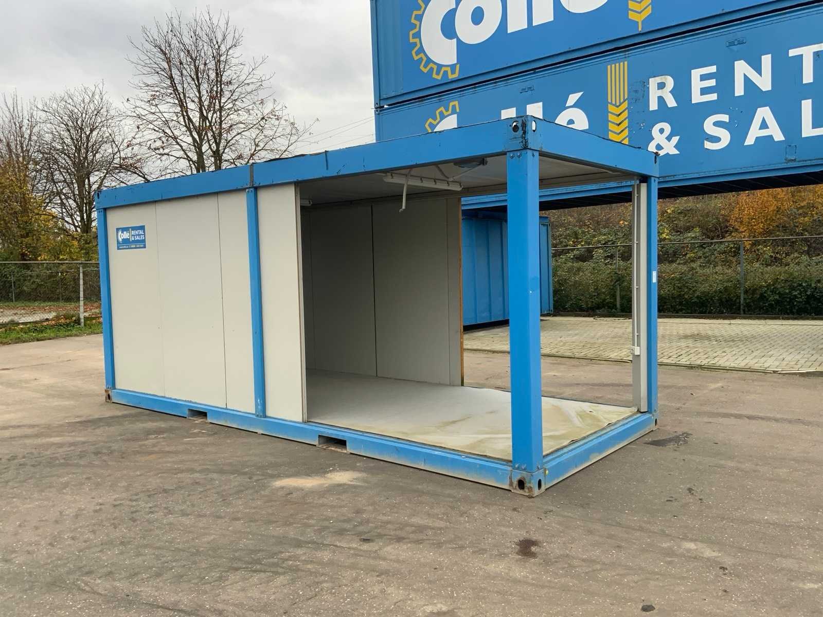 1x zijwand met loopdeur; 2x lange wand half open; v.v. verlichting; vorkliftsleuven; aansluiting 400 Volt 32 Ampère 1x male, 1x female Merk: Newhouse Schakelunit: true Afmeting l: 6050mm Aantal ramen: 1 Totale afmeting L: 6500mm Totale afmeting Breedte: 2440mm Totale afmeting Hoogte: 2600mm