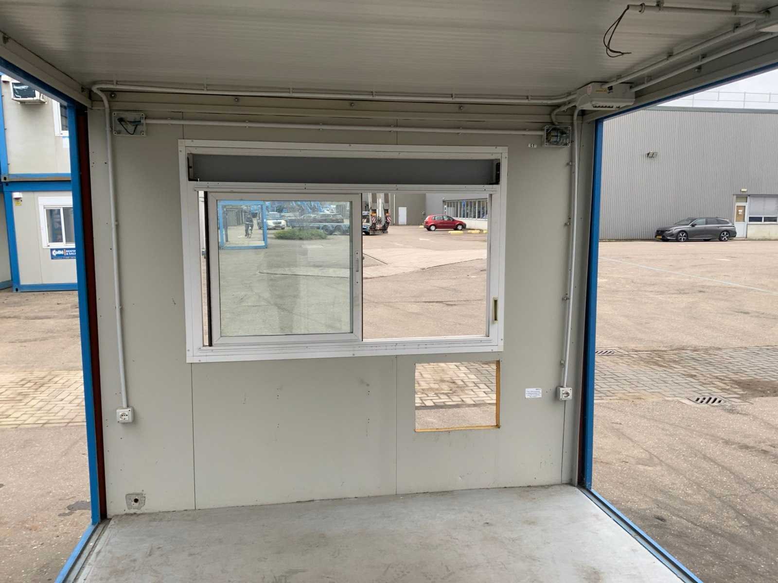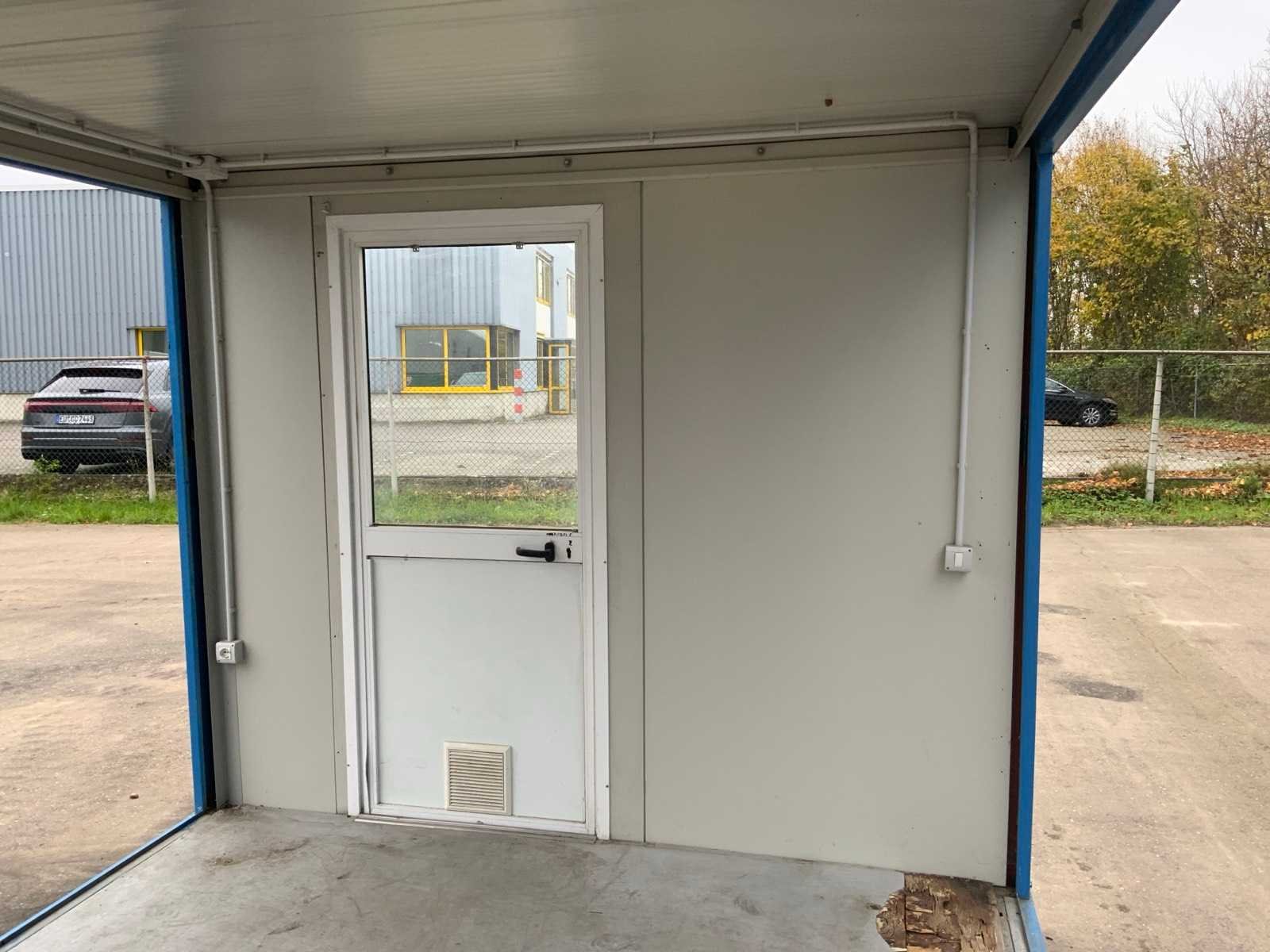 1x loopdeur; 1x raam met rolluik; 2x lange wand open; met opening voor airconditioning; voorzien van verlichting en elektra; vorkliftsleuven; Merk: Newhouse Schakelunit: true Afmeting l: 6050mm Aantal ramen: 1 Totale afmeting L: 6500mm Totale afmeting Breedte: 2950mm Totale afmeting Hoogte: 2600mm