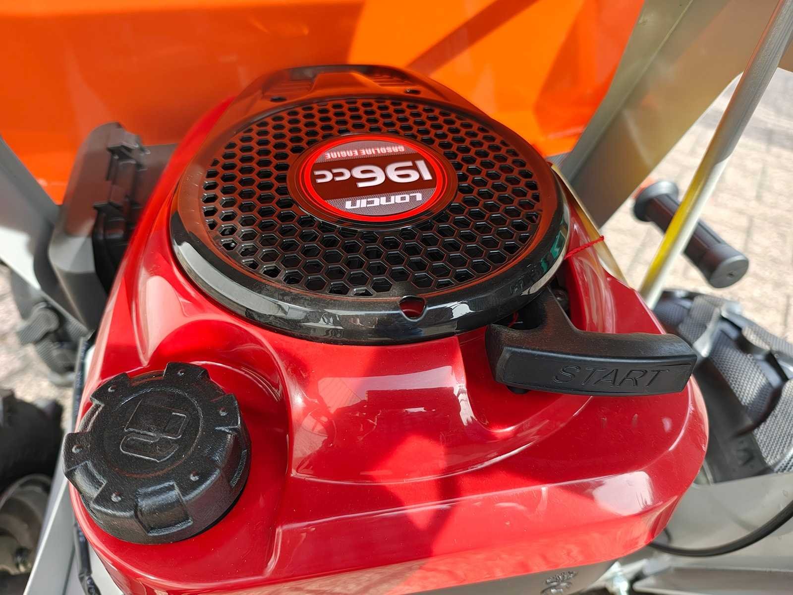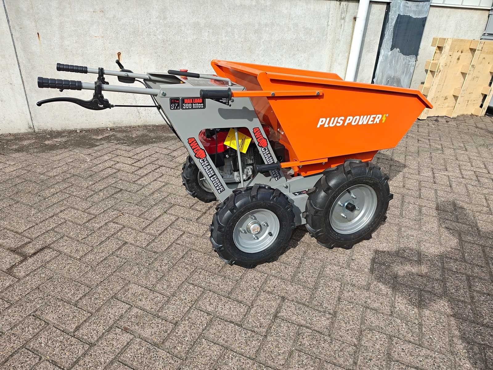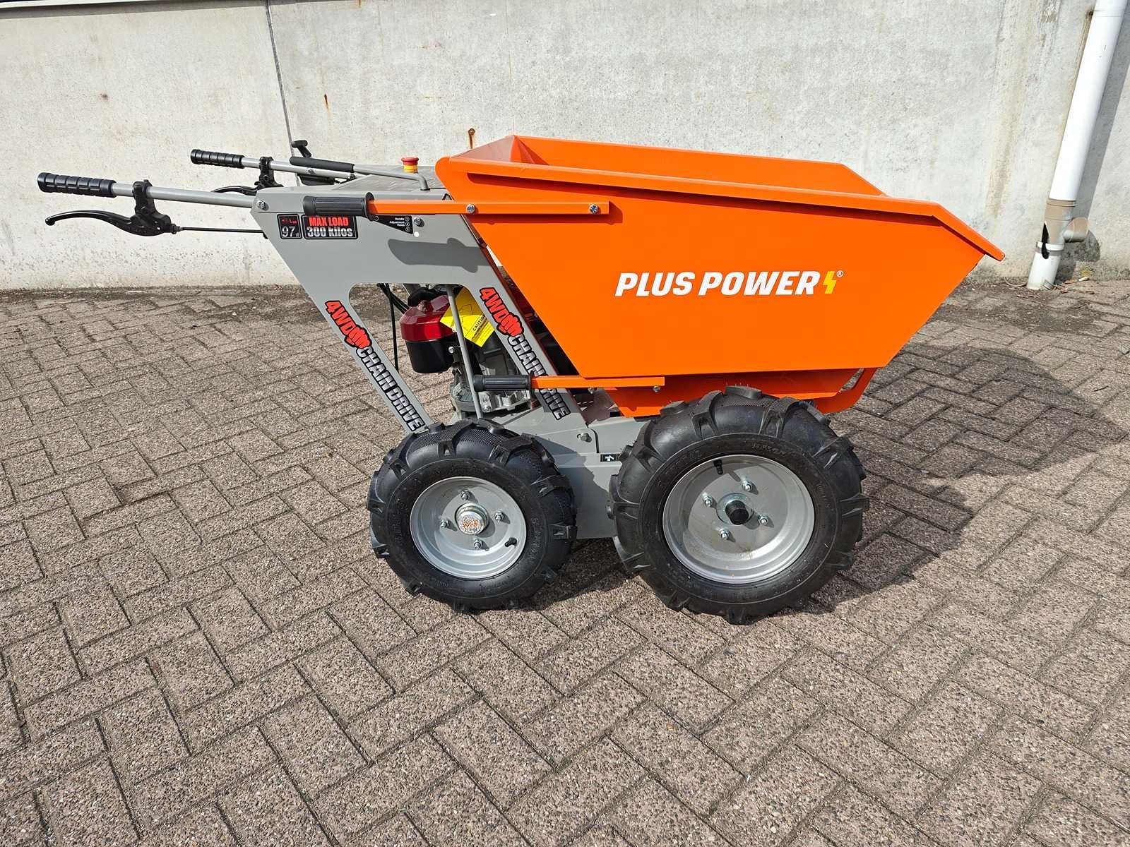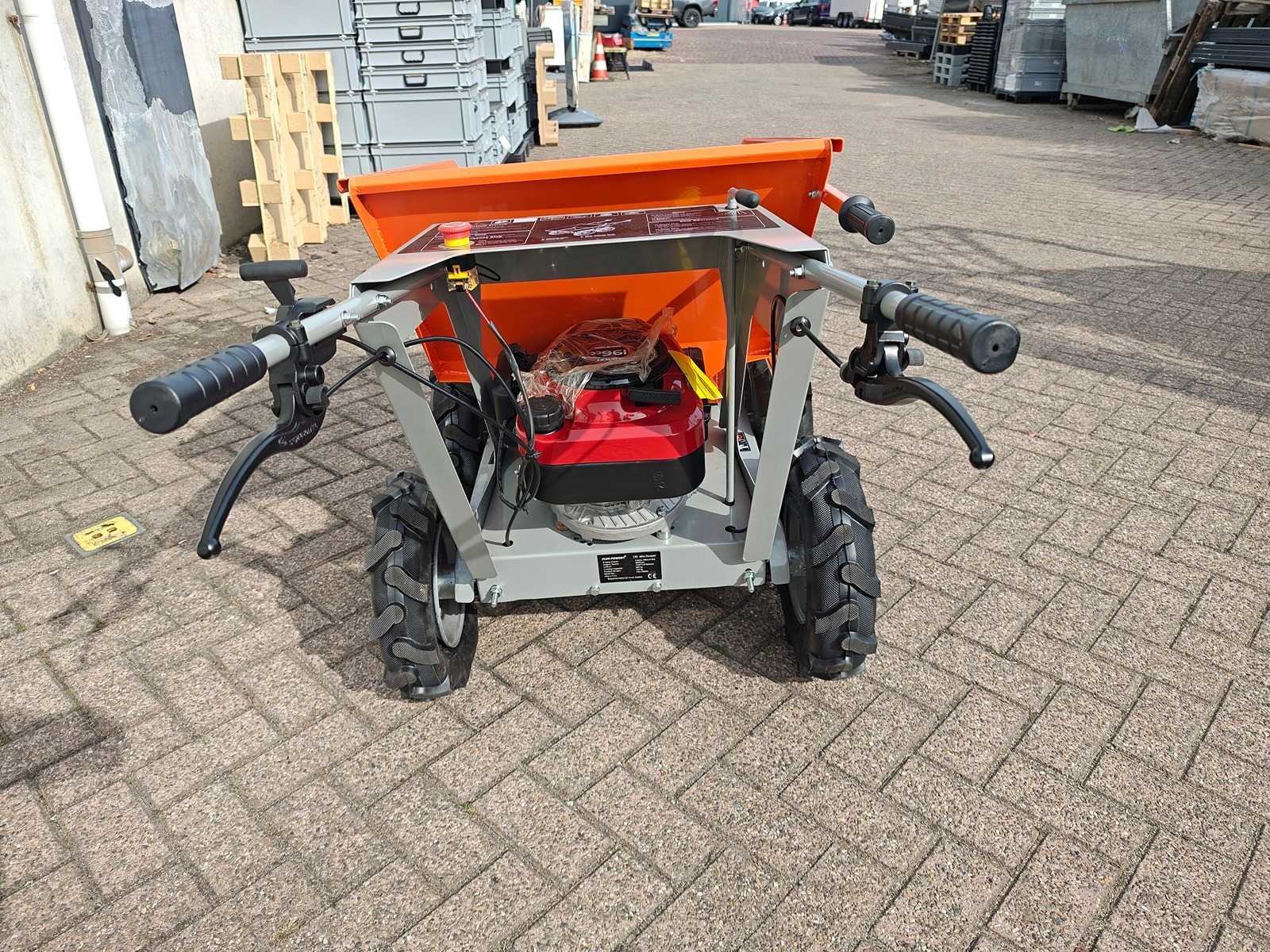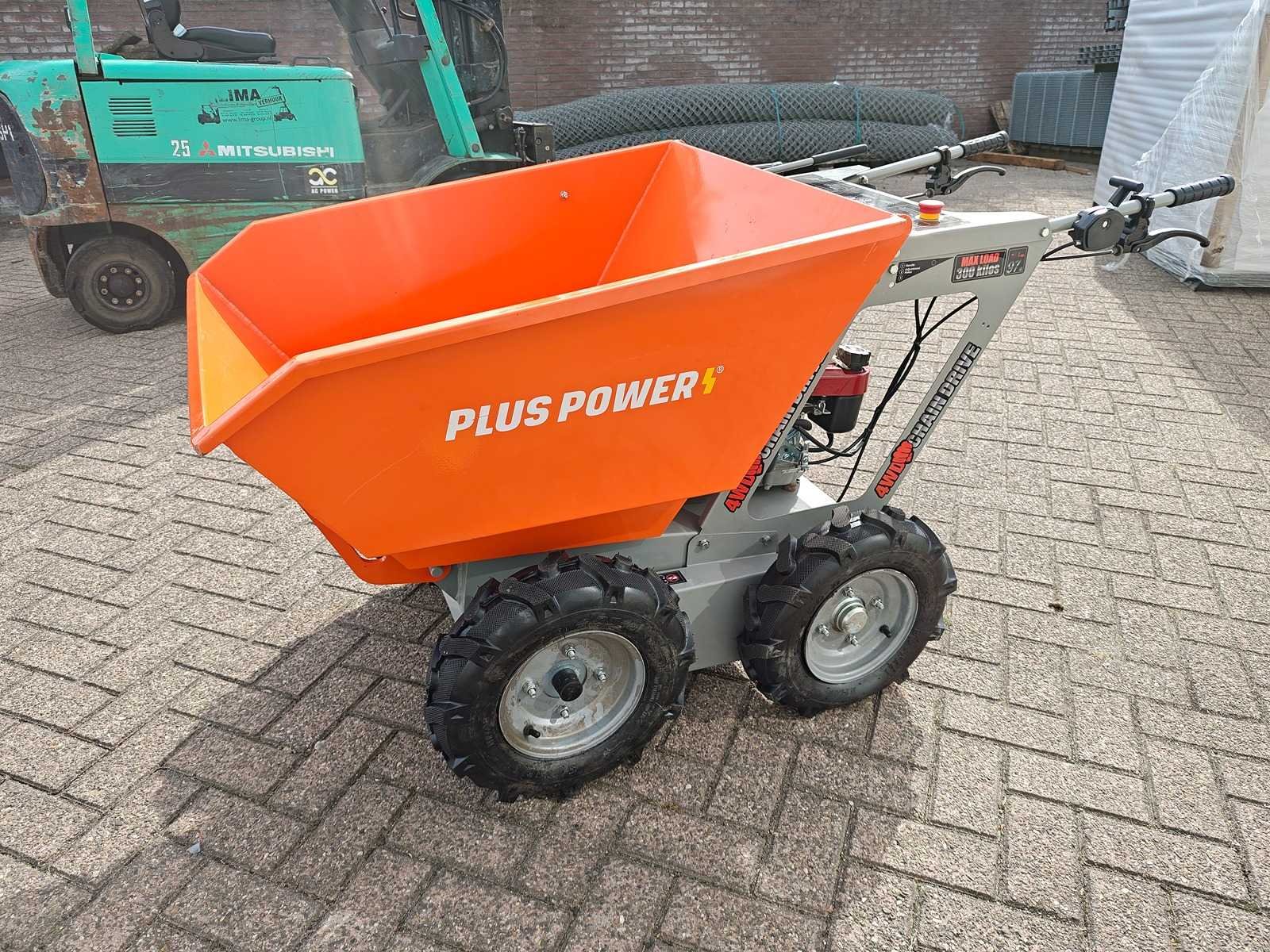 Gemotoriseerde kruiwagen met laadcapaciteit van 300kg, loncin benzine motor 196cc, 6.5pk. ongebruikt Merk: Plus Power Model: T30 Gewicht: 132kg Lengte: 133cm Breedte: 77cm Hoogte: 86.5cm