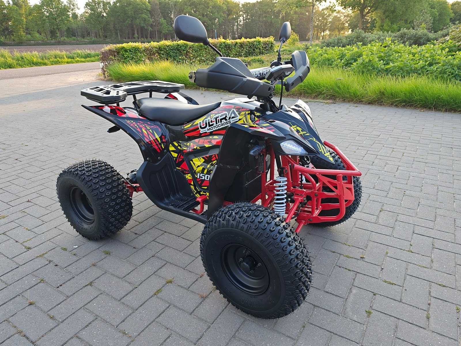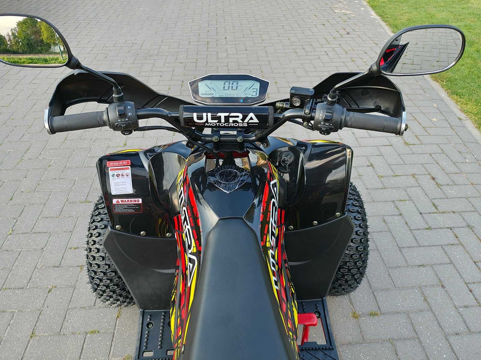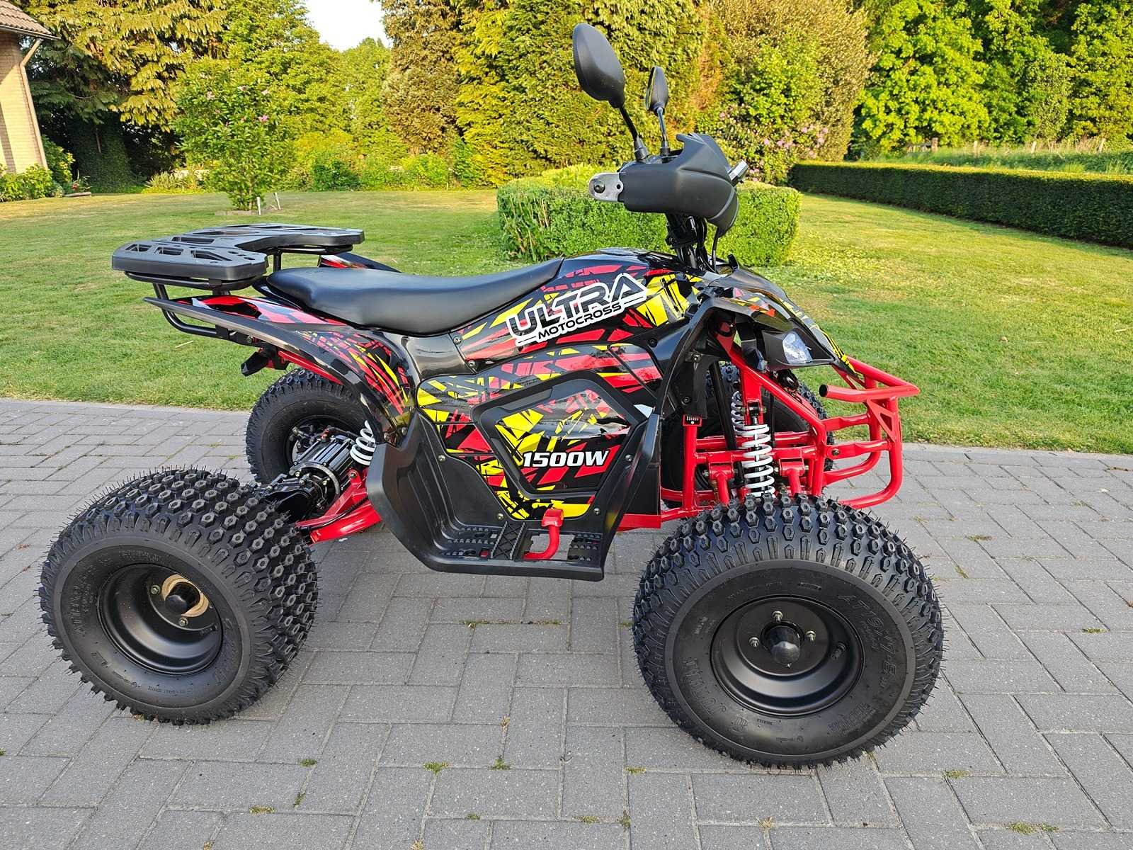 Ongebruikte Quad, 1500 watt vermogen, 60 volt motor, actieradius ca 60 km, max laadgewicht 110 kg geleverd in doos. Merk: Ultra Moto Model: ATV005E Gewicht: 130kg Aantal zitplaatsen: 1 Aantal sleutels: 2 Transmissie: traploos Bouwjaar: 2024 Afgelezen kilometerstand: 1km Vermogen (kW): 1,500kW Brandstof: electrisch