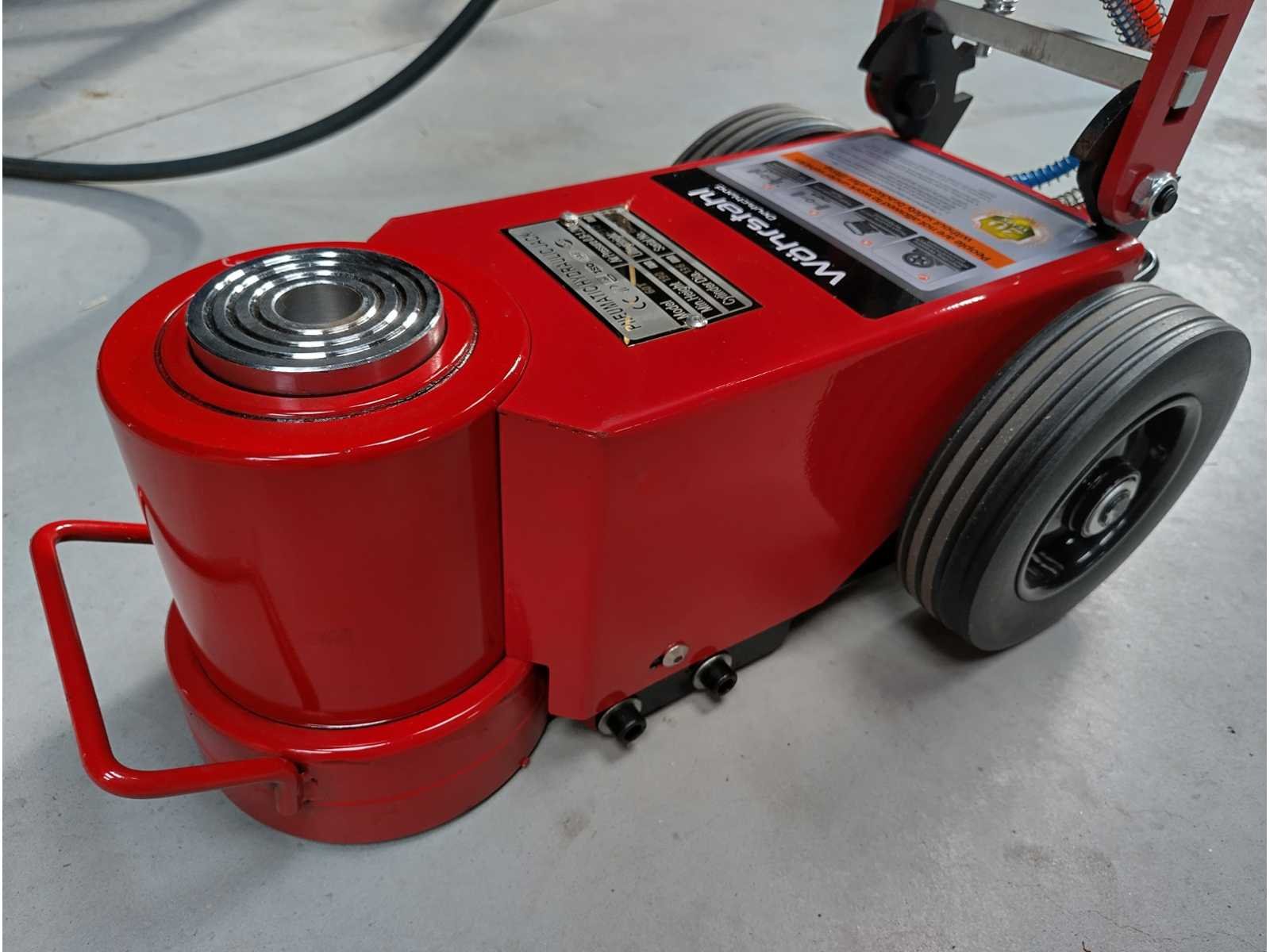 Telescopische garagekrik pneumatisch bediend en hydraulisch aangedreven max 60 ton. min hoogte 190mm hefhoogtebereik 190-400mm. 2 extra adapters, ongebruikt Bouwjaar: 2025 Capaciteit.: 60t Eigen gewicht: 45kg