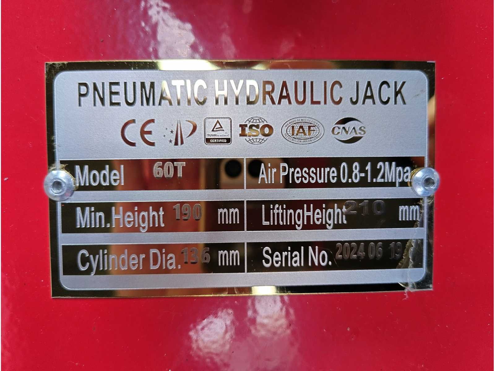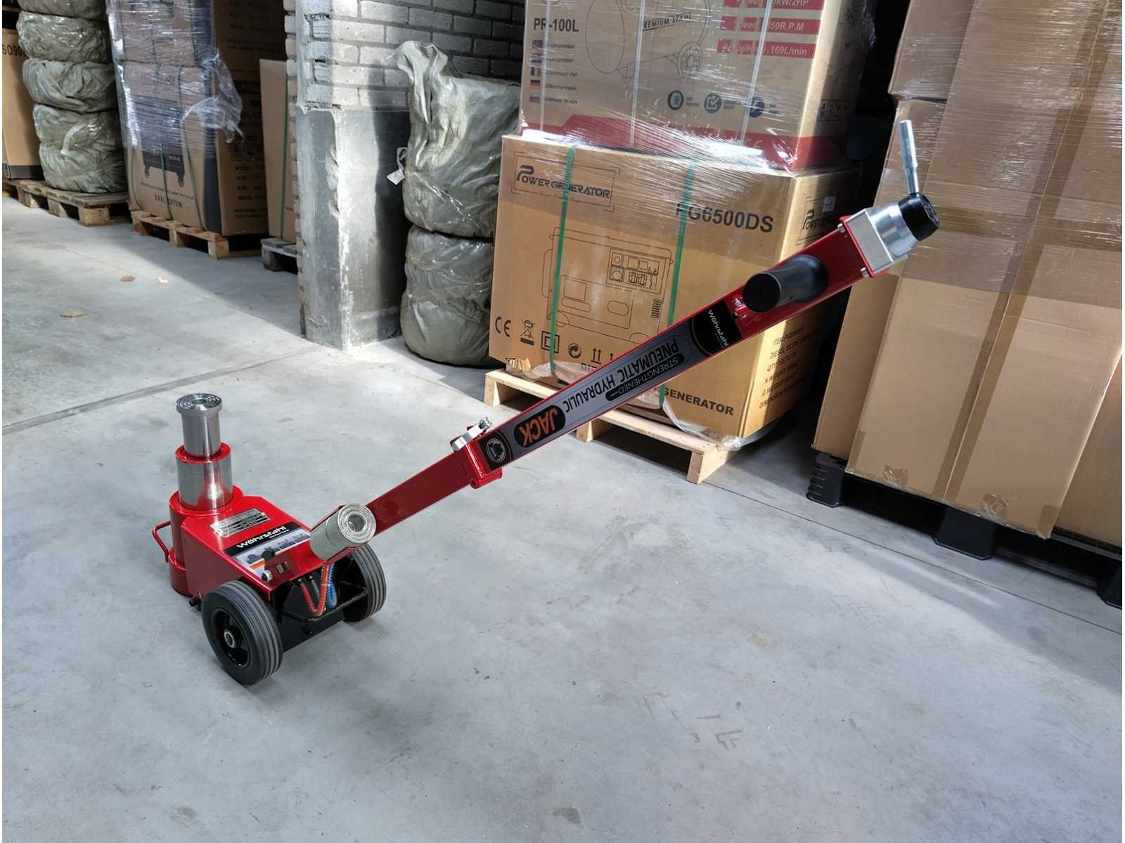 Telescopische garagekrik pneumatisch bediend en hydraulisch aangedreven max 60 ton. min hoogte 190mm hefhoogtebereik 190-400mm. 2 extra adapters, ongebruikt Bouwjaar: 2025 Capaciteit.: 60t Eigen gewicht: 45kg