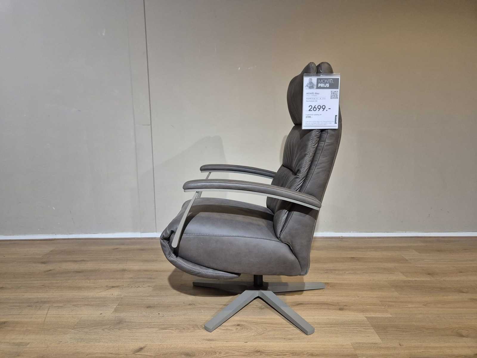 Showroommodel Merk: Montel Model: Riley Product type: Relaxfauteuil Kleur: Bruin Gewicht: 50kg Lengte: 69cm Breedte: 88cm Hoogte: 121cm Zithoogte: 53cm Materiaal: Leer