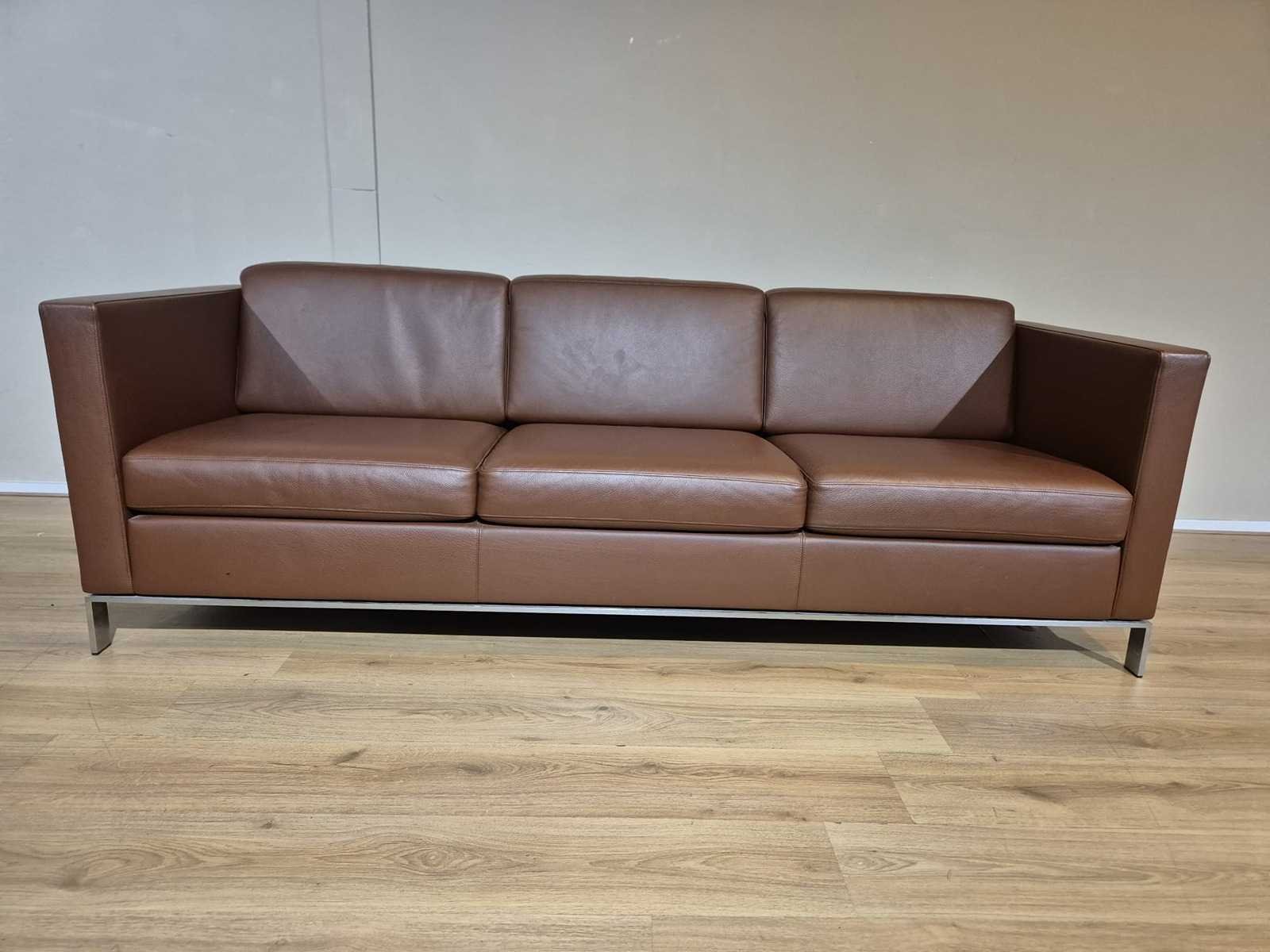 Showroommodel Merk: Walter Knoll Model: Foster 500 Product type: 3 Zits Bank - Showroommodel Kleur: Bruin Gewicht: 80kg Lengte: 215cm Breedte: 82cm Hoogte: 74cm Zithoogte: 44cm Diepte: 53cm Materiaal: Leer