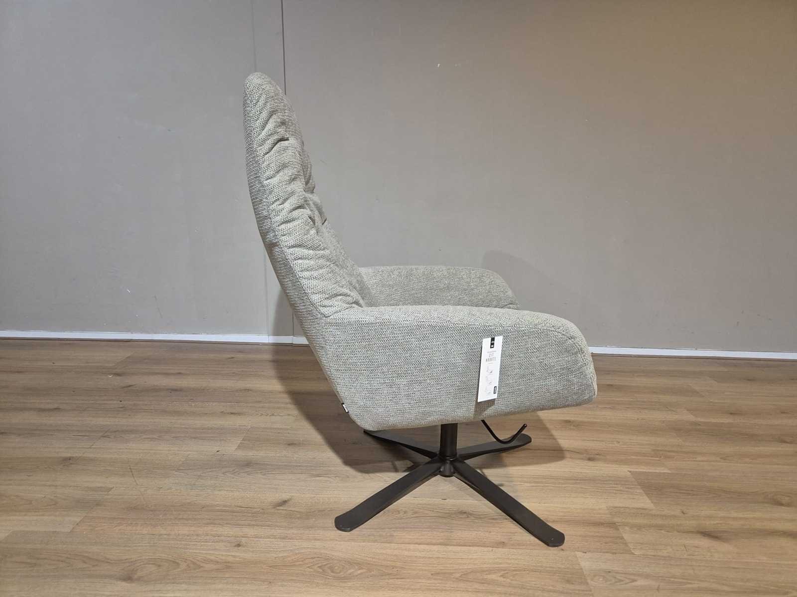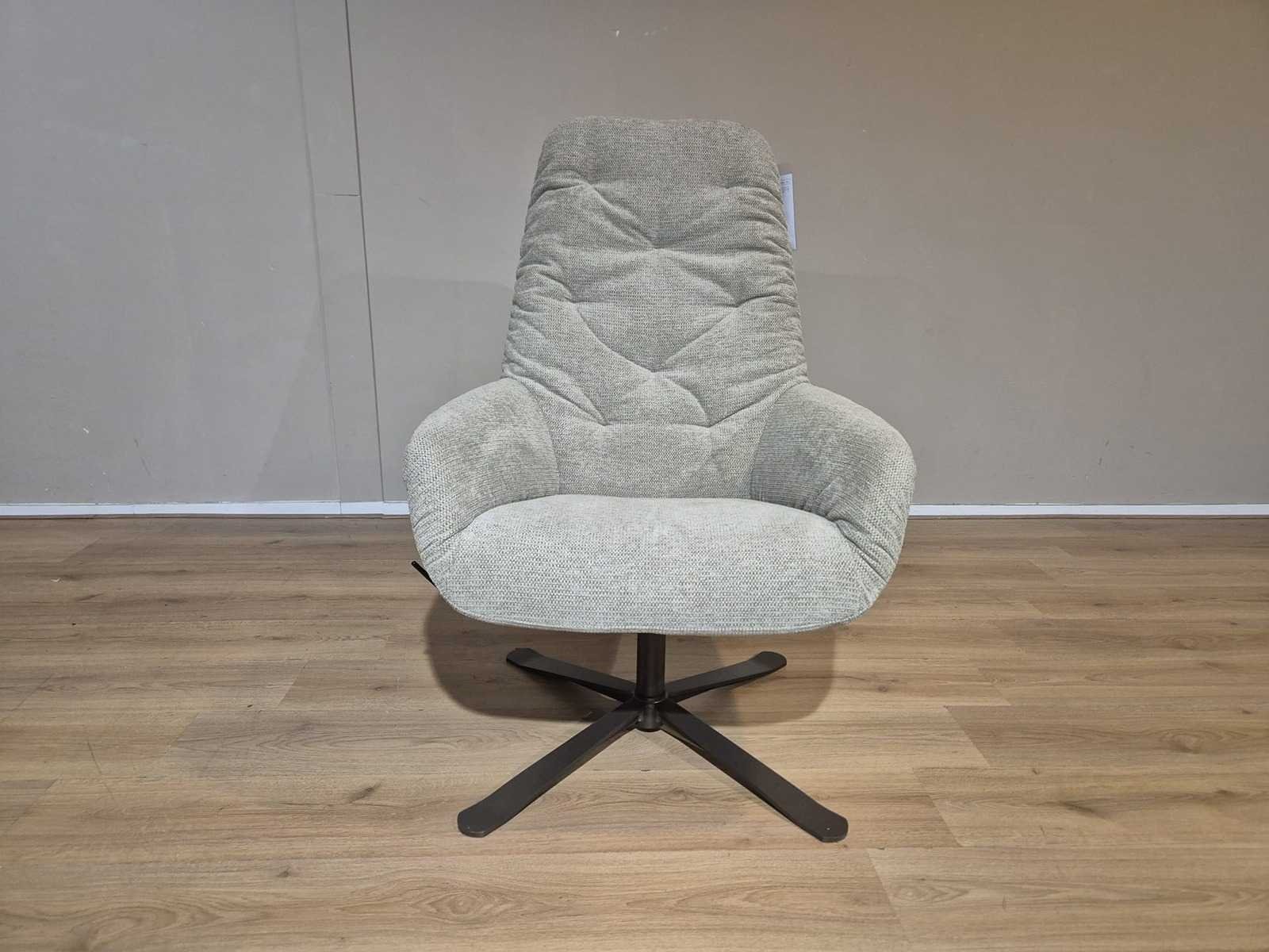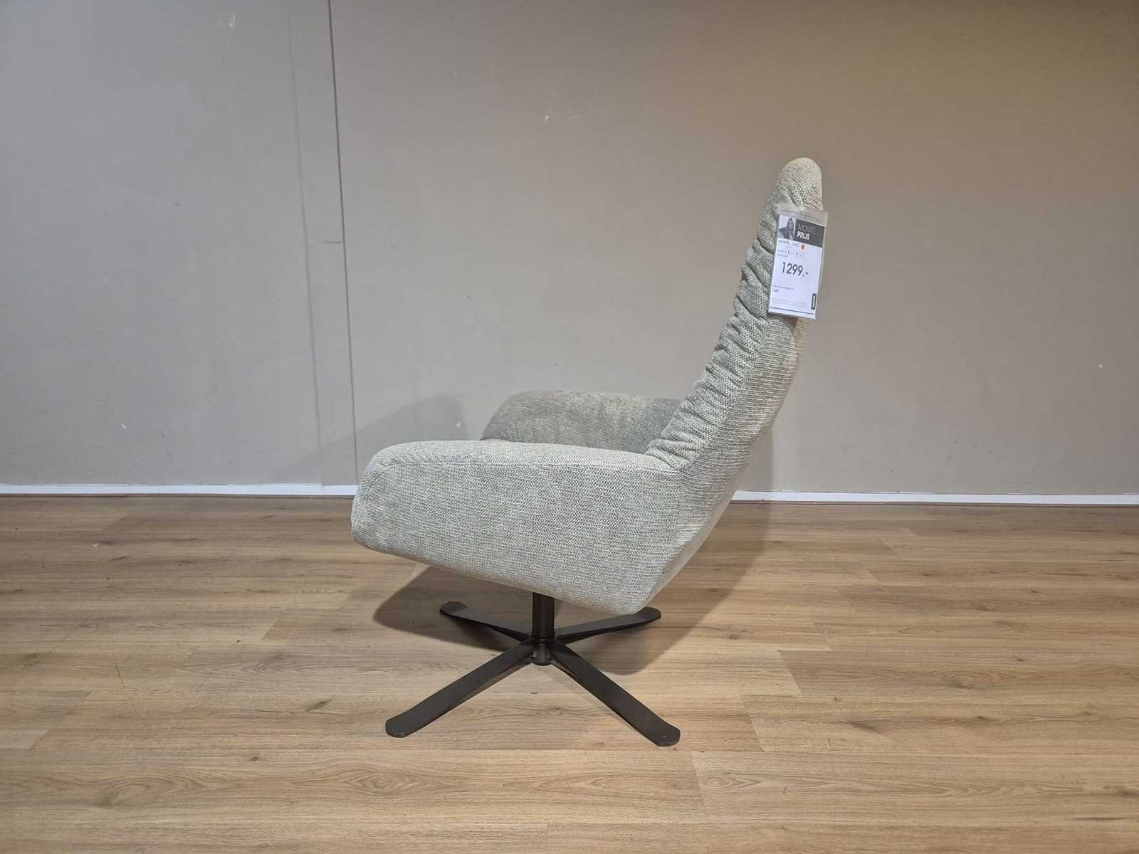 Showroommodel Verstelbaar Merk: Montel Model: Loco Product type: Draaifauteuil Kleur: Grijs-Groen Gewicht: 30kg Lengte: 72cm Breedte: 85cm Hoogte: 107cm Zithoogte: 45cm Materiaal: Stof