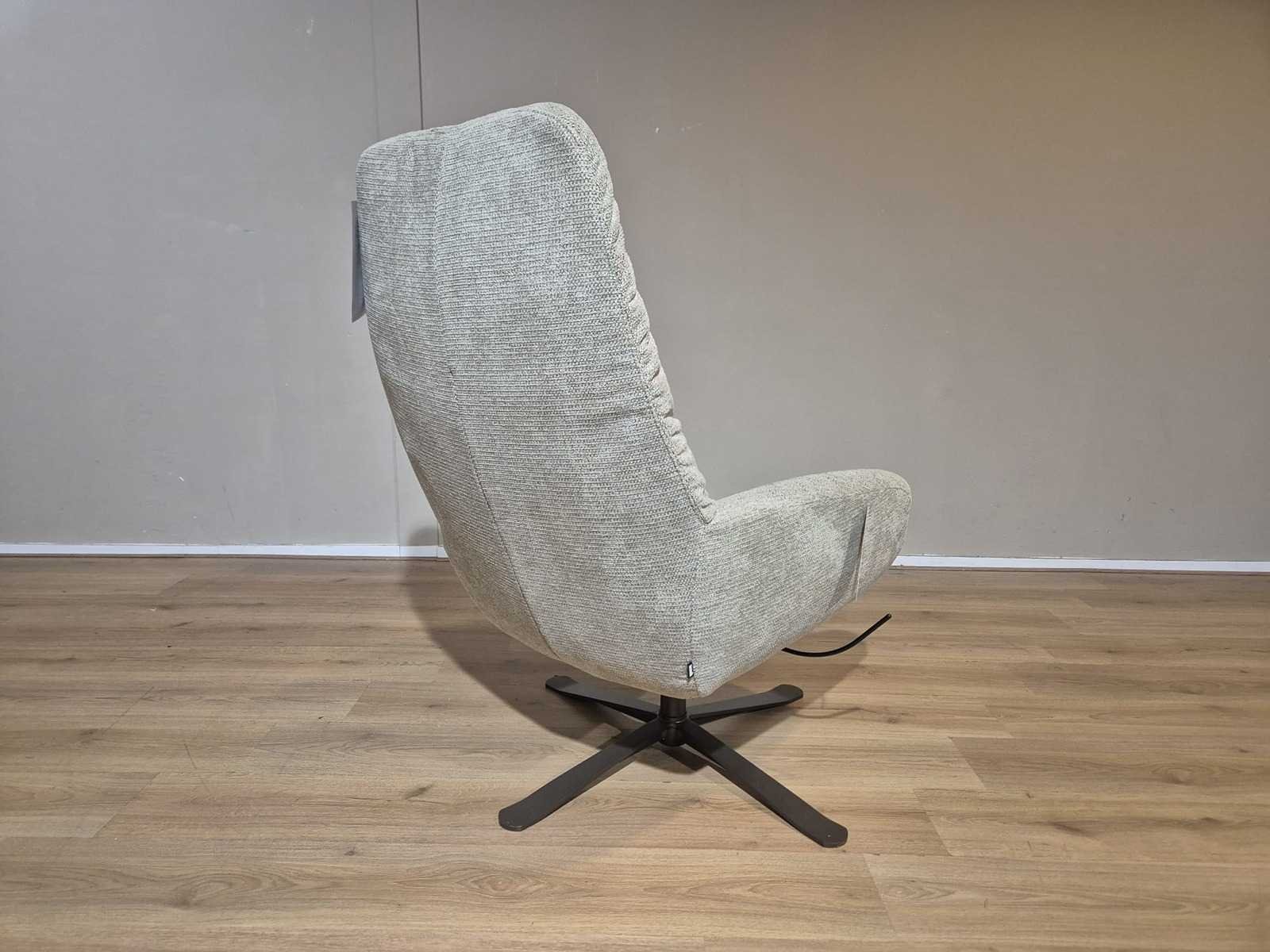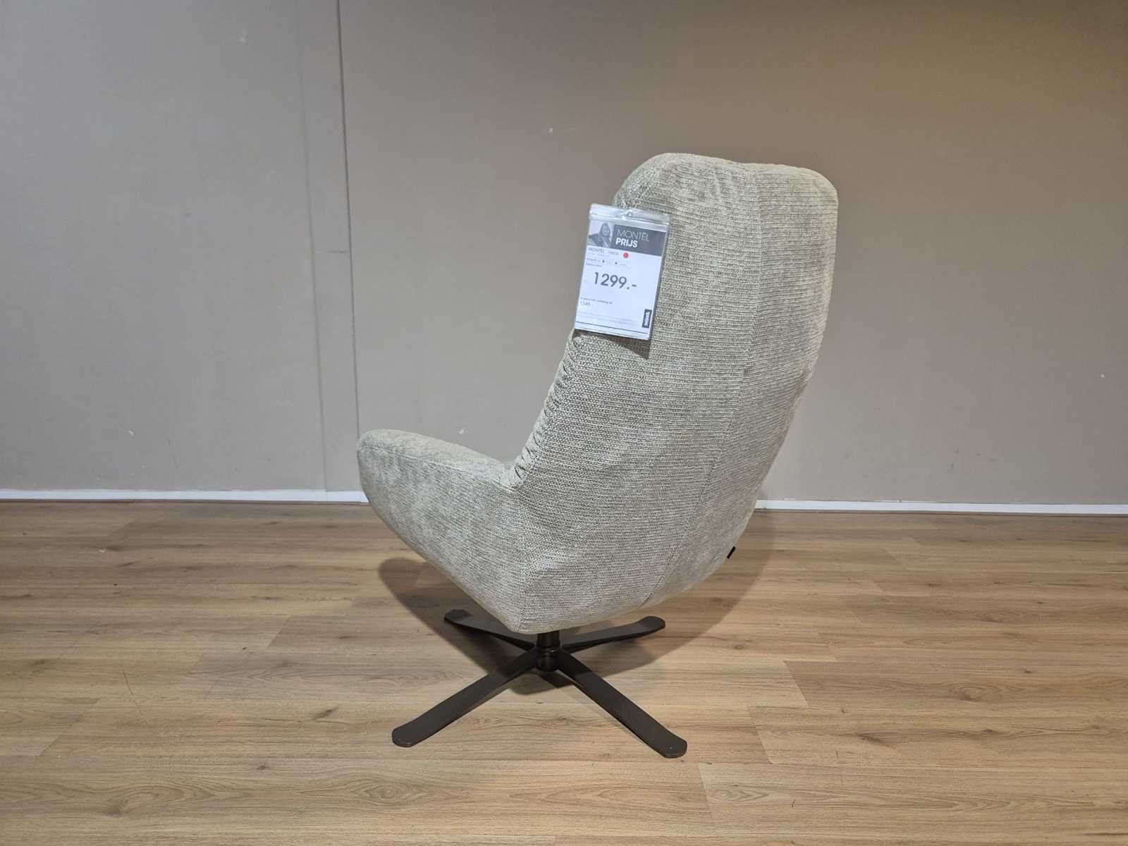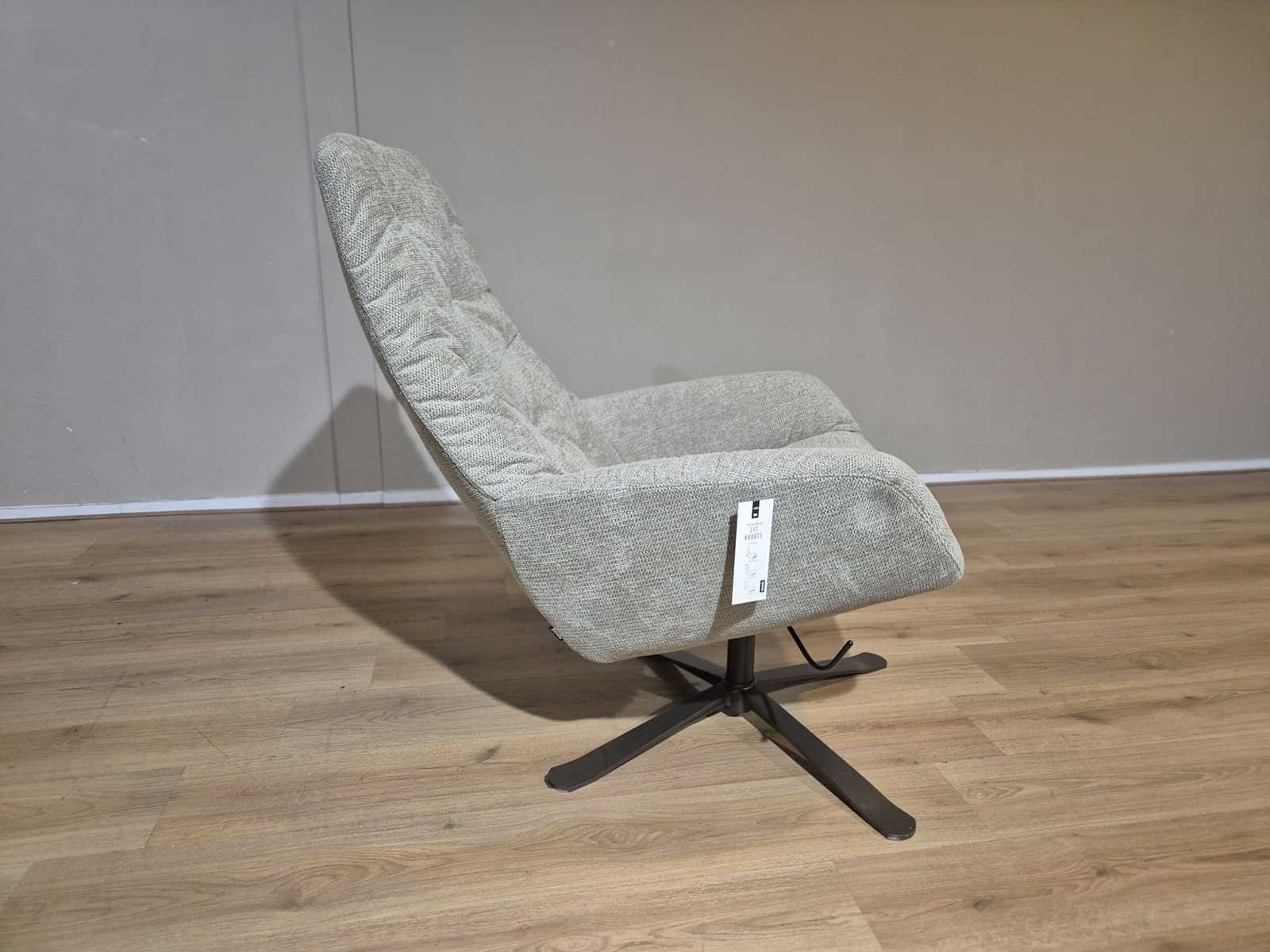 Showroommodel Verstelbaar Merk: Montel Model: Loco Product type: Draaifauteuil Kleur: Grijs-Groen Gewicht: 30kg Lengte: 72cm Breedte: 85cm Hoogte: 107cm Zithoogte: 45cm Materiaal: Stof