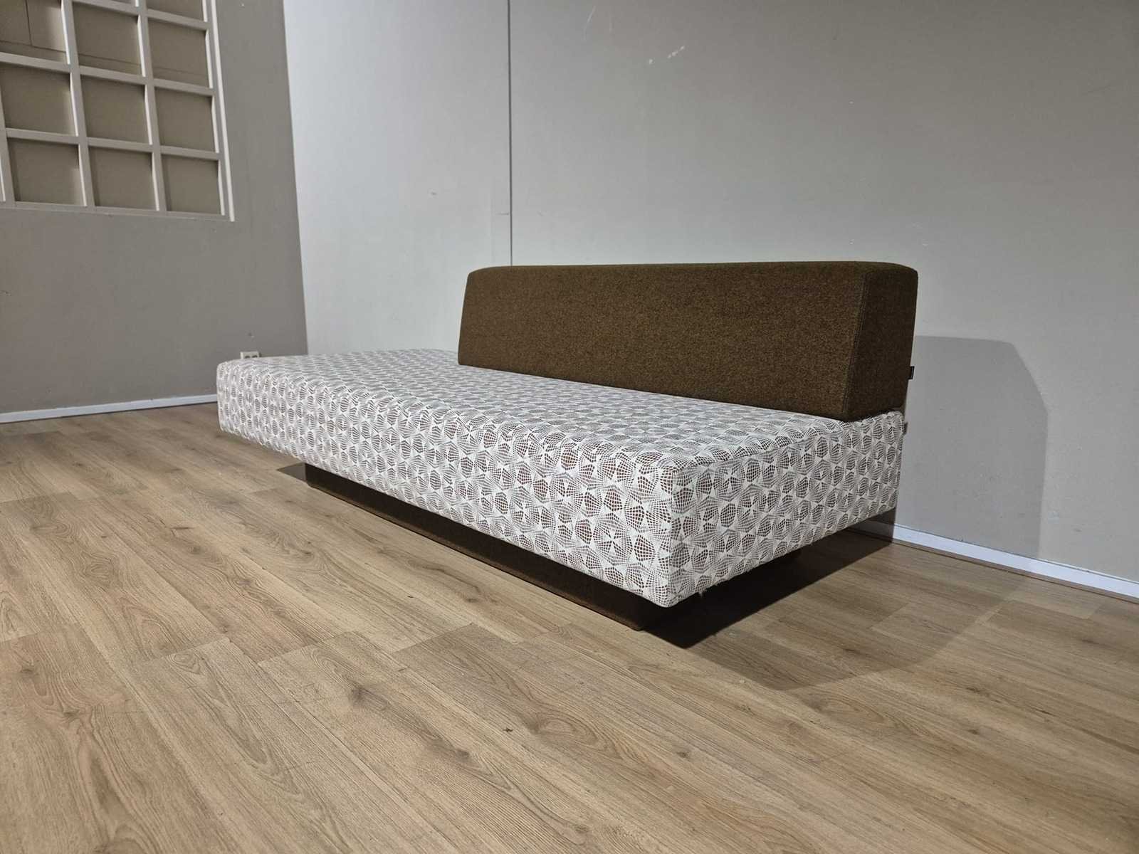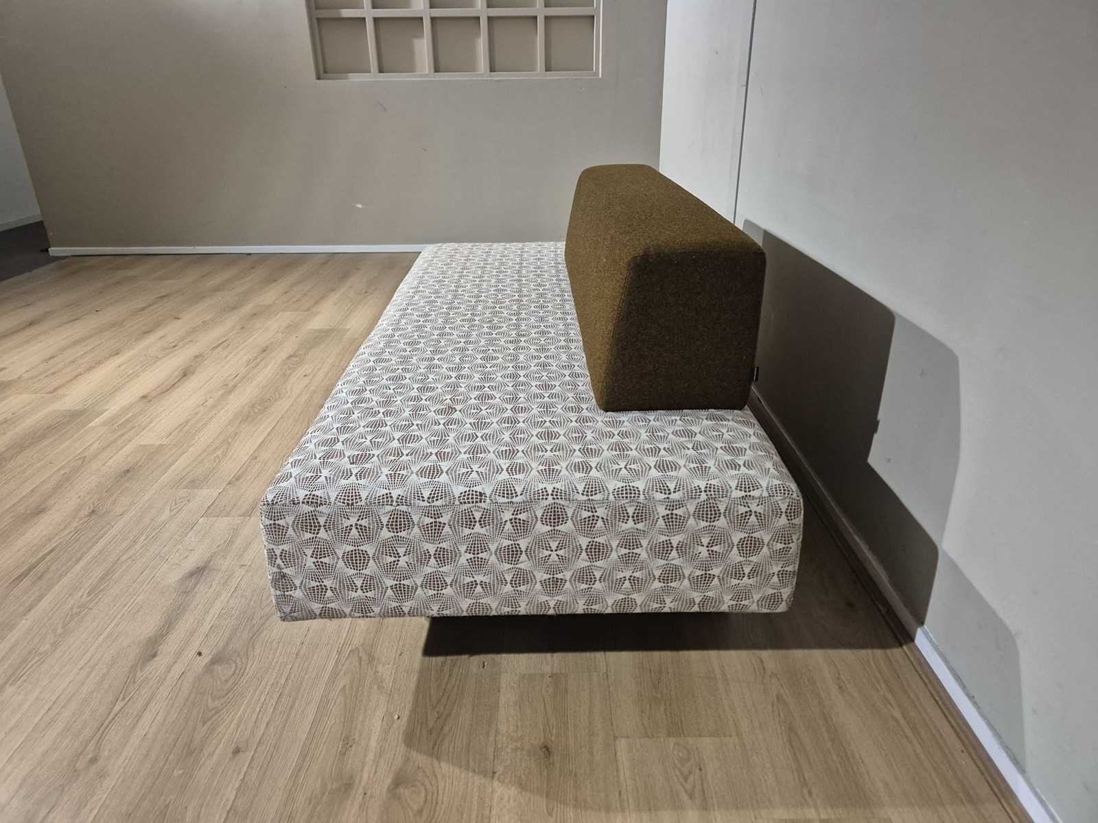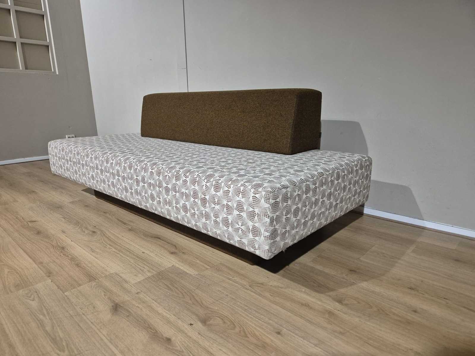 Verstelbare rugleuning. Merk: Lensvelt Model: Glyder Product type: Atelier van Lieshout Bank Kleur: Bruin-Wit Gewicht: 80kg Lengte: 192cm Breedte: 85cm Hoogte: 73cm Zithoogte: 42cm Diepte: 54cm Materiaal: Wolstof