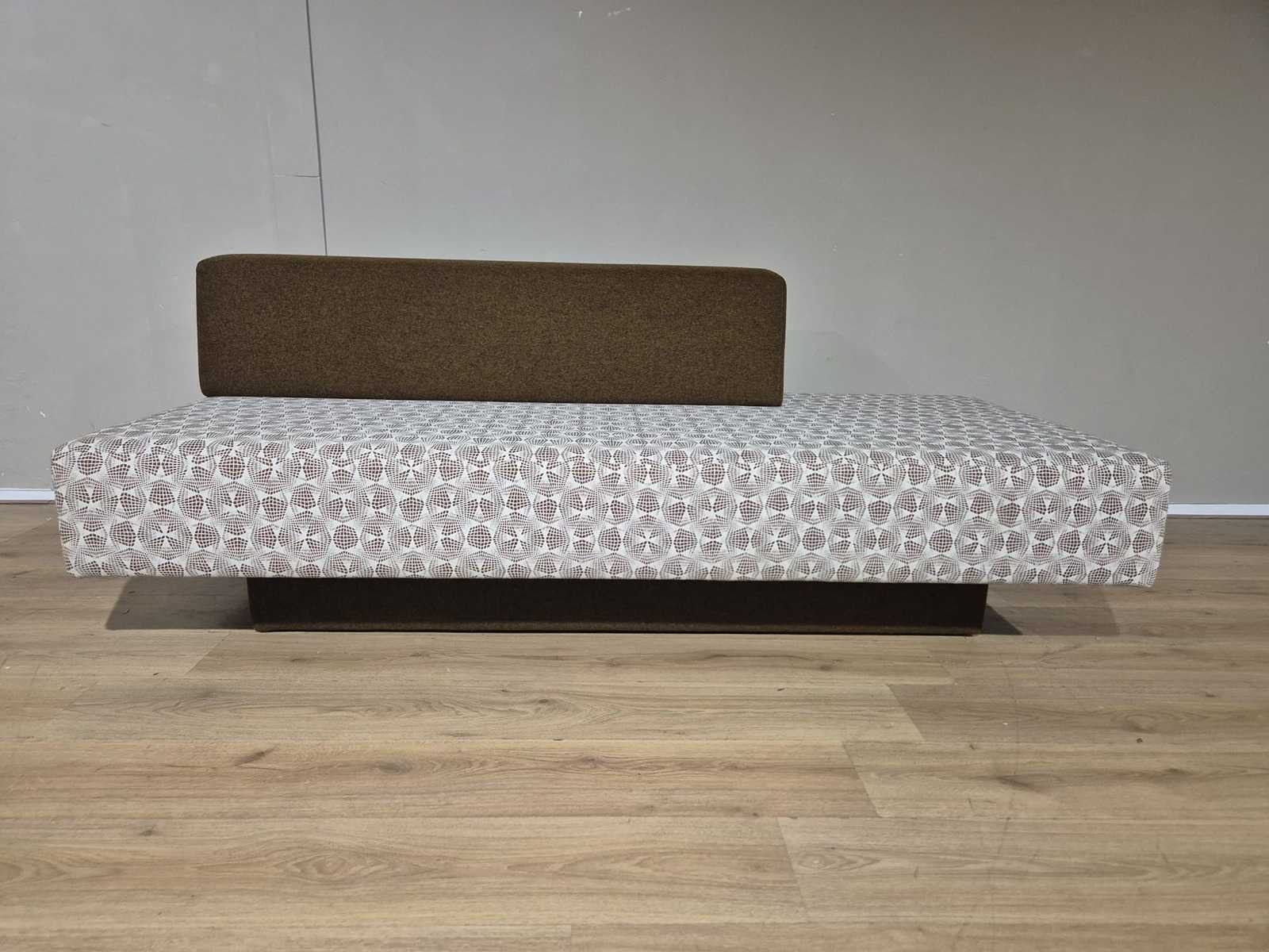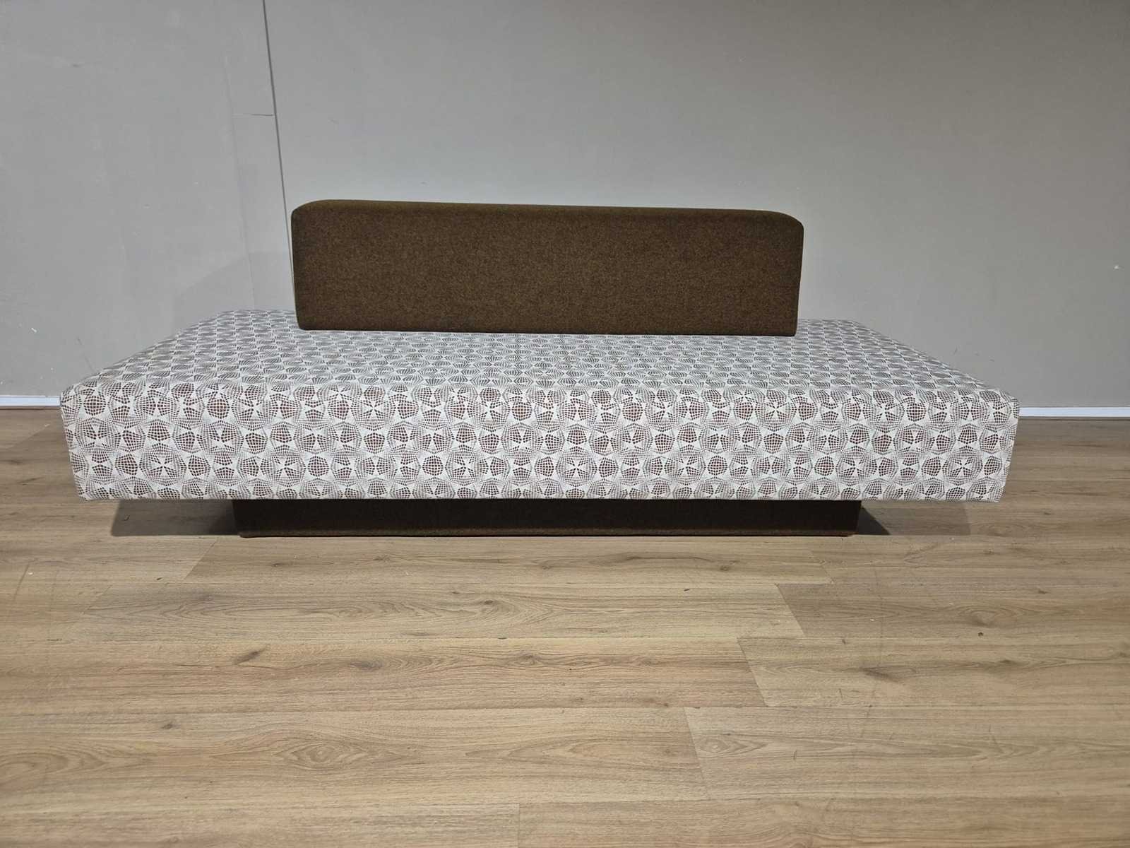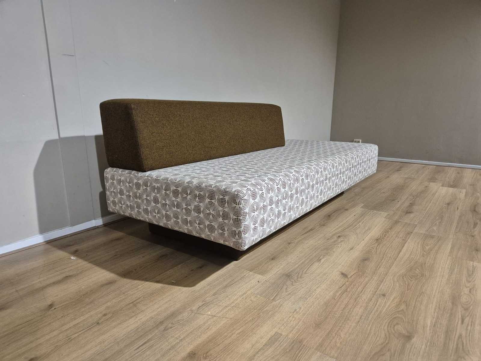 Verstelbare rugleuning. Merk: Lensvelt Model: Glyder Product type: Atelier van Lieshout Bank Kleur: Bruin-Wit Gewicht: 80kg Lengte: 192cm Breedte: 85cm Hoogte: 73cm Zithoogte: 42cm Diepte: 54cm Materiaal: Wolstof