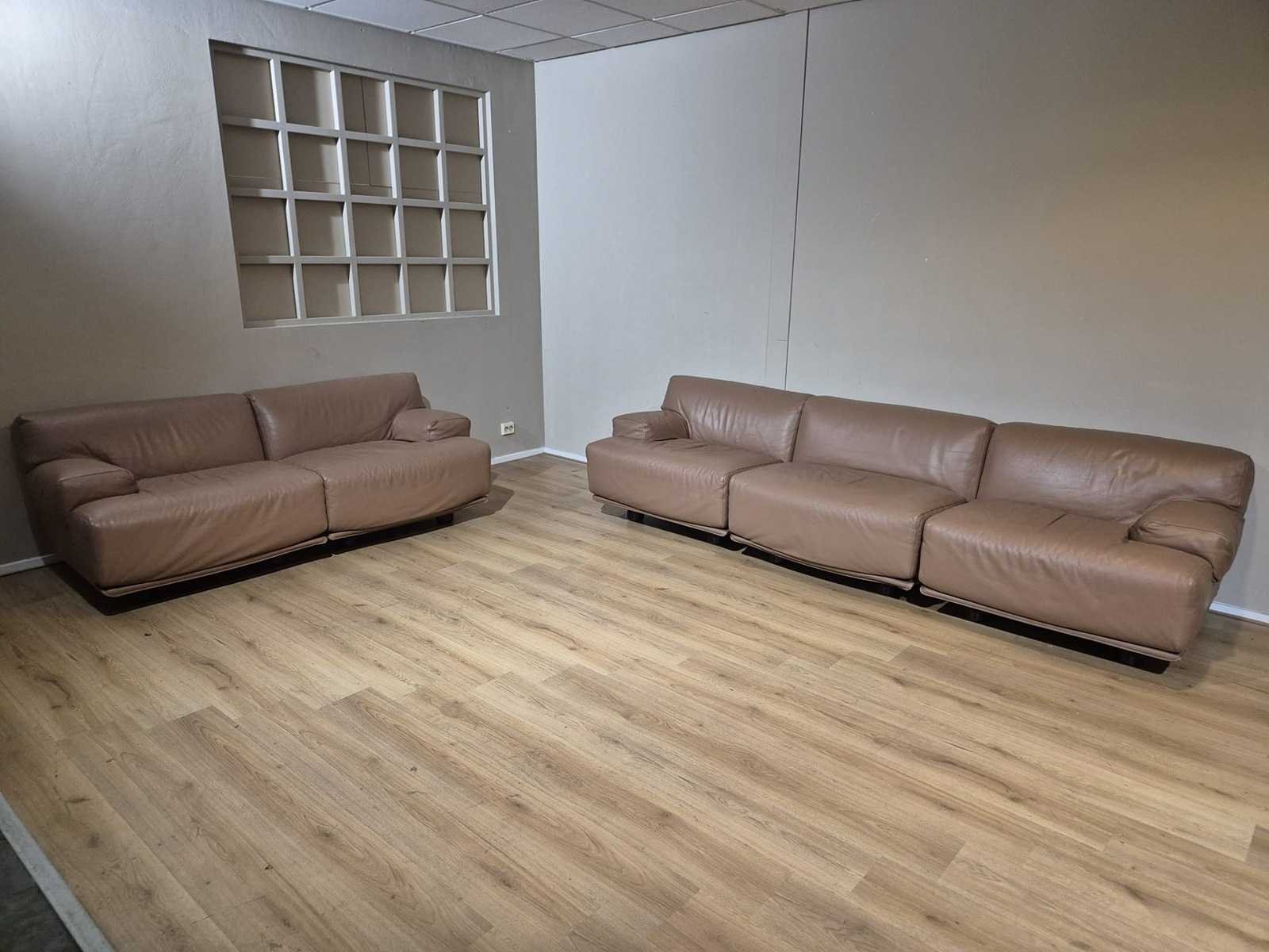 5 elementen 3 zits: 275x100x73 2 zits: 185x100x73 Merk: Cassina Model: 707 Fiandra Product type: Vintage Elementenbank Kleur: Bruin Gewicht: 30kg Lengte: 275cm Breedte: 100cm Hoogte: 73cm Zithoogte: 43cm Diepte: 56cm Materiaal: Leer