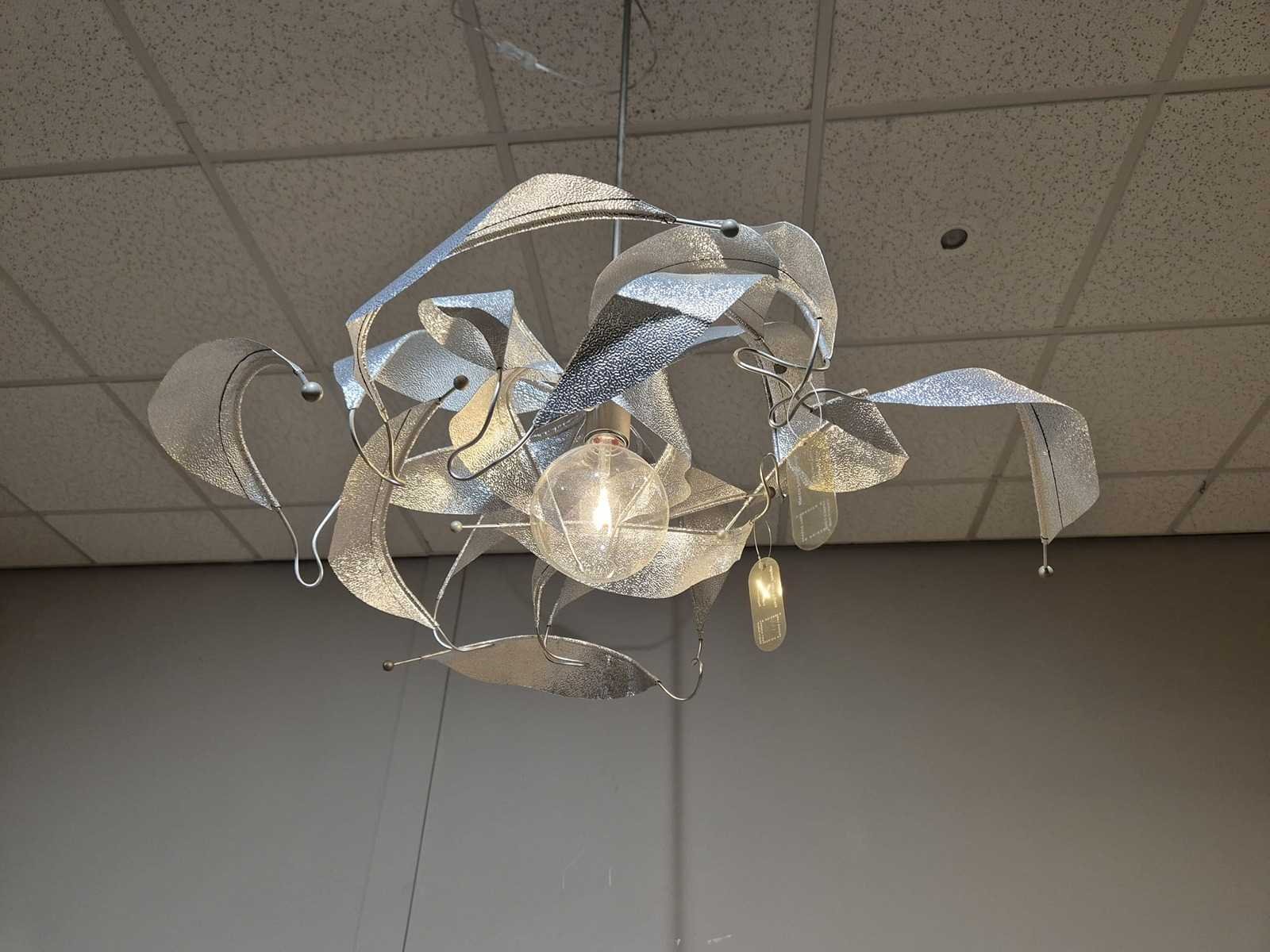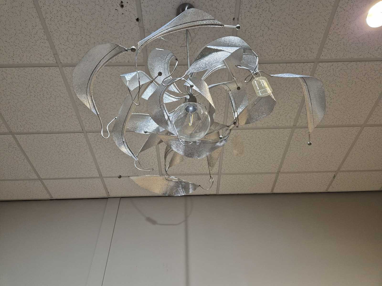 Merk: Harco Loor Model: Reflexion Product type: Hanglamp - Showroommodel Met lichtbron: true Fitting: E27 Dimbaar: true Kleur: Zilver Lengte: 75cm Breedte: 75cm Hoogte: 120cm Materiaal: Metaal