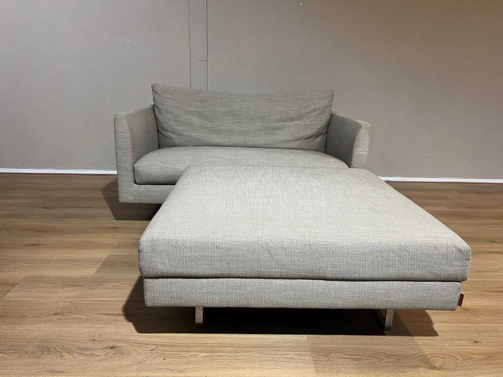 Merk: Montis Model: Axel Product type: Loveseat - Hocker Kleur: Grijs Gewicht: 50kg Lengte: 133cm Breedte: 95cm Hoogte: 63cm Zithoogte: 41cm Materiaal: Stof
