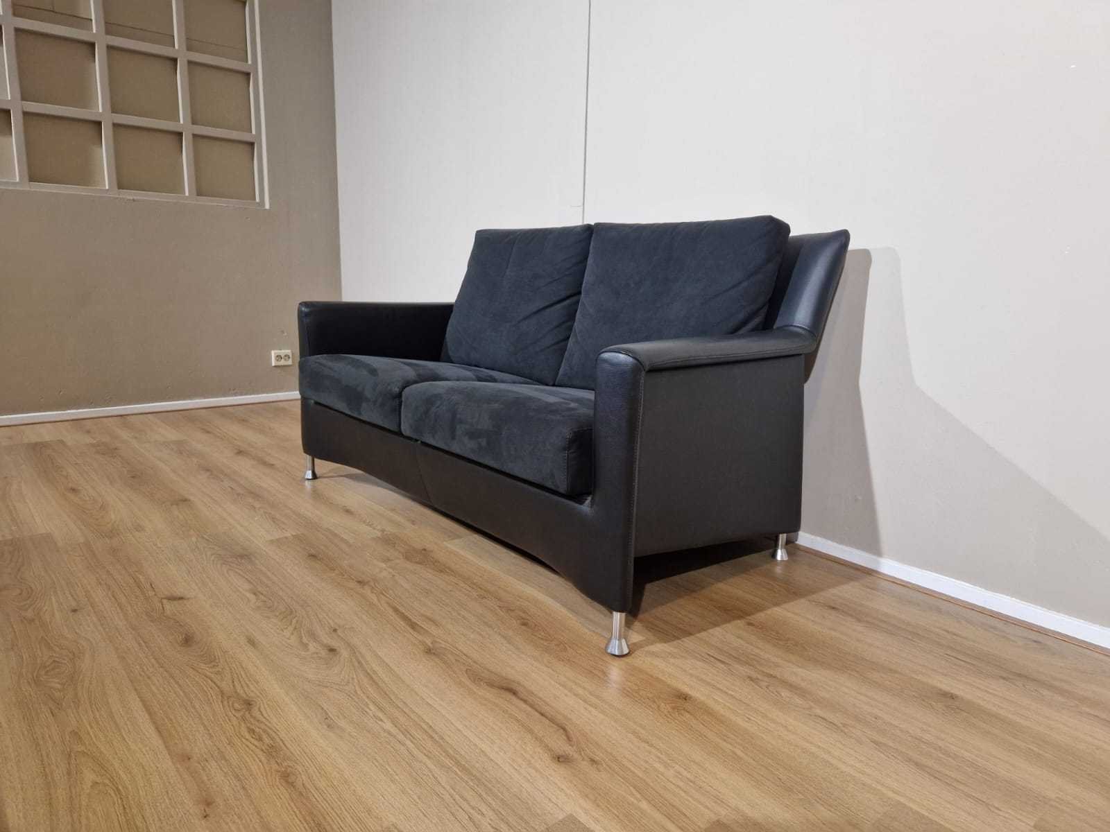 Merk: Leolux Model: Paian Product type: 2 zits Bank Kleur: Zwart Gewicht: 60kg Lengte: 156cm Breedte: 85cm Hoogte: 85cm Zithoogte: 46cm Materiaal: Leer - Alcantara