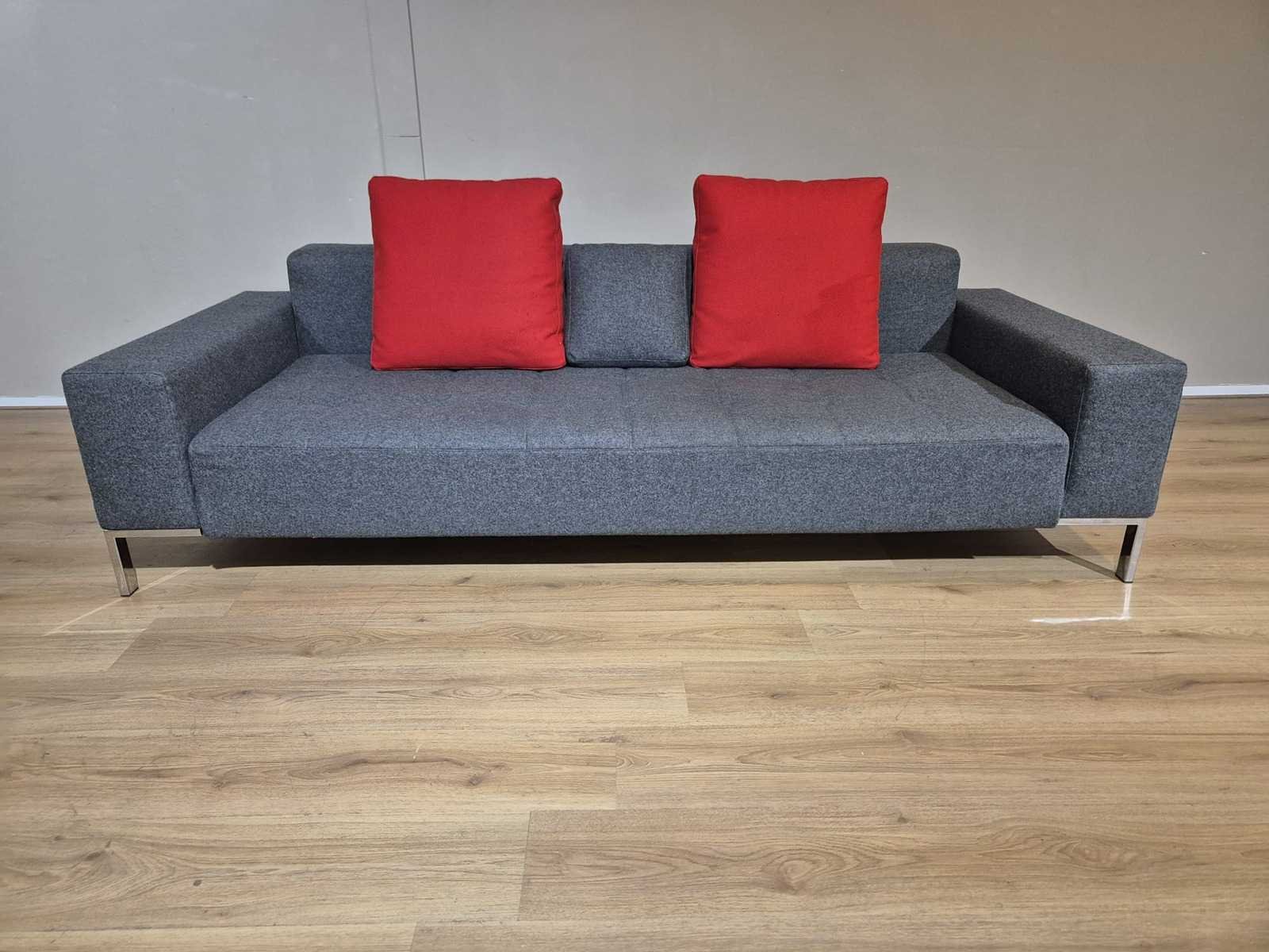 Merk: Zanotta Model: Alfa Product type: 3 zits Bank Kleur: Grijs Gewicht: 50kg Lengte: 234cm Breedte: 95cm Hoogte: 66cm Zithoogte: 38cm Materiaal: Stof