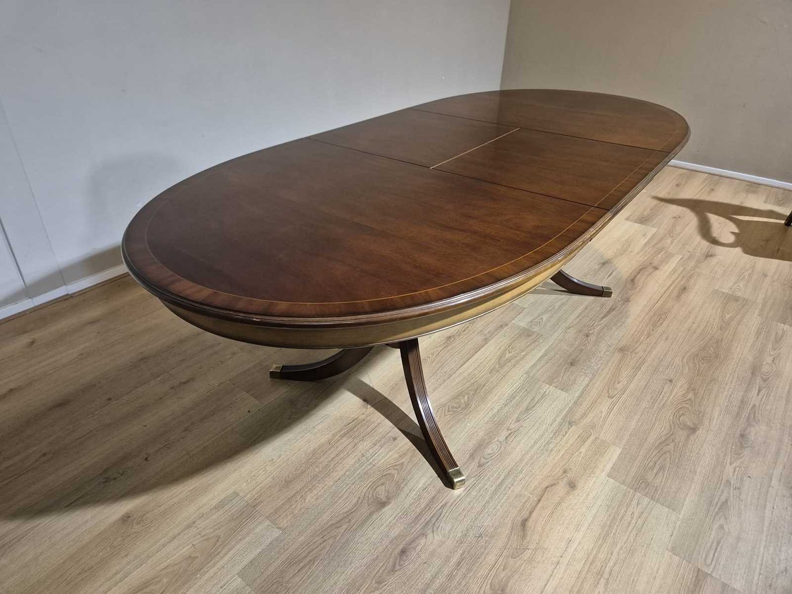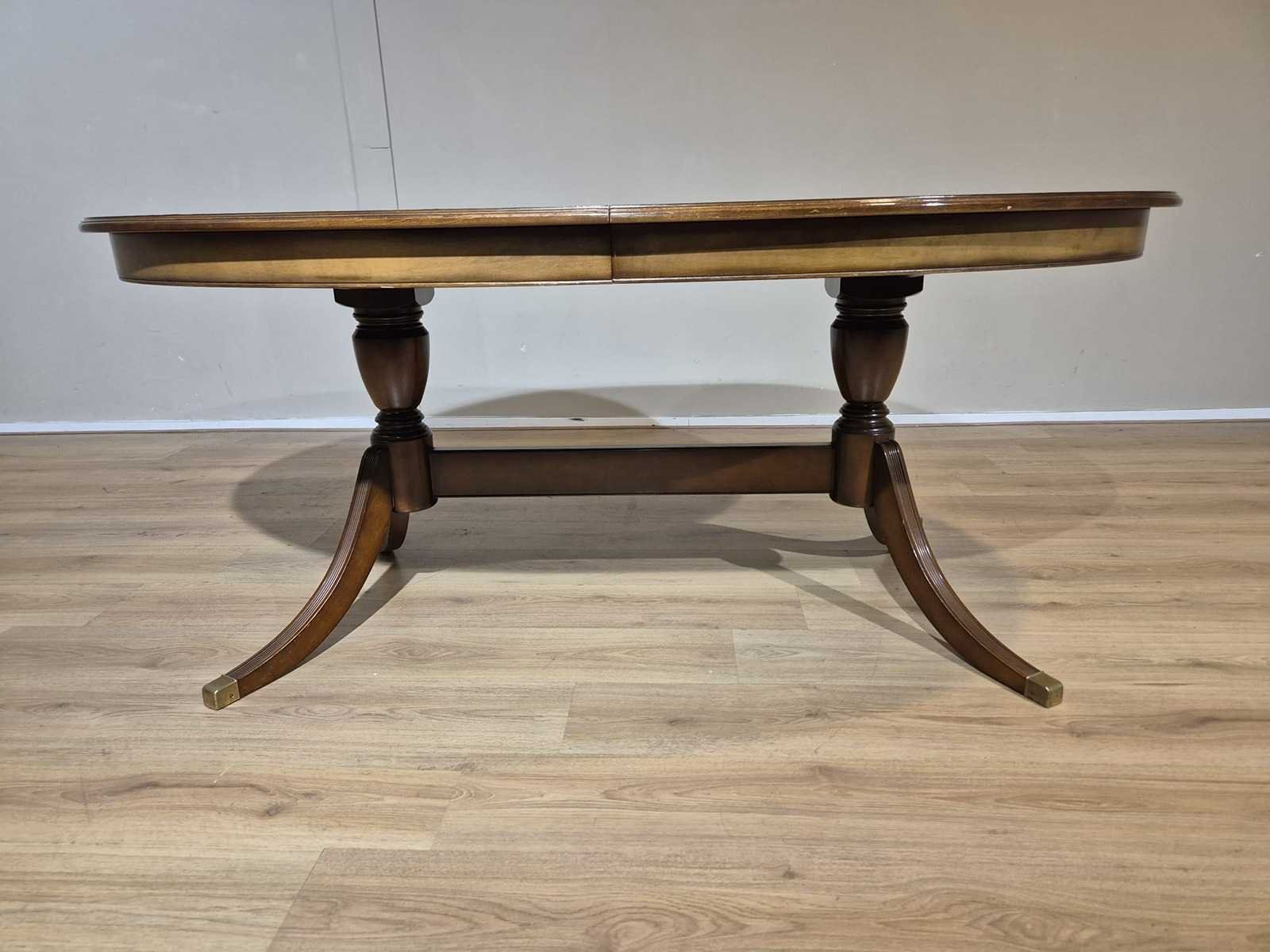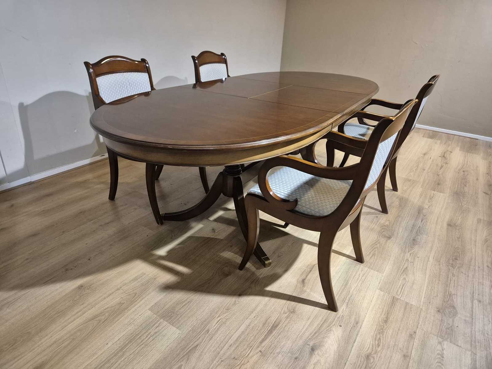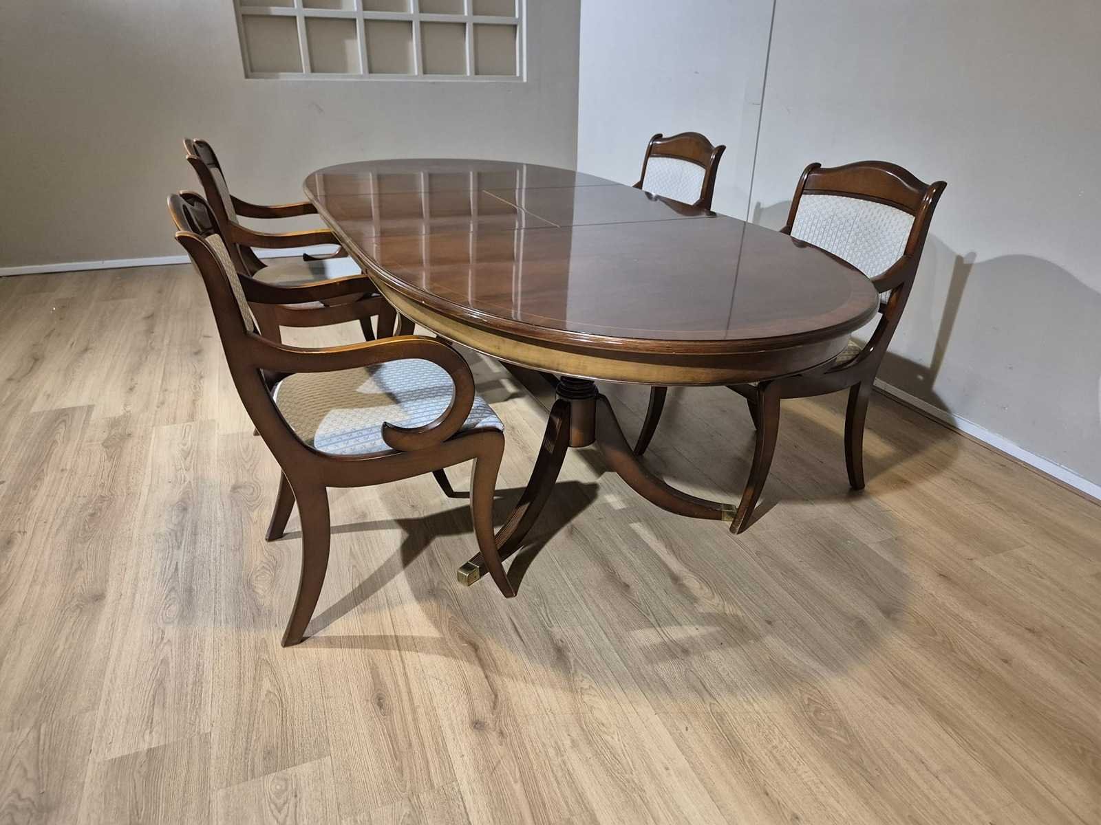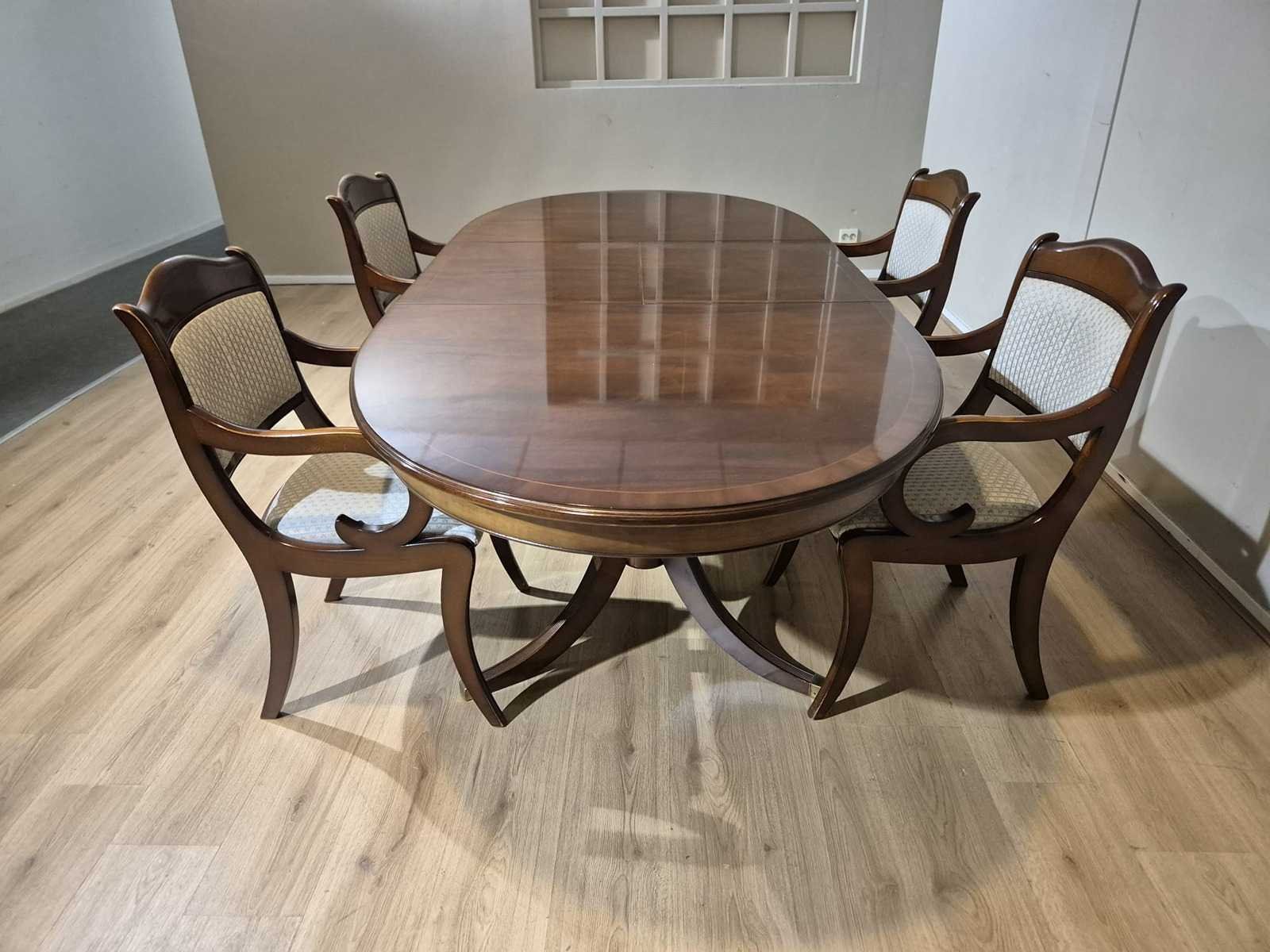 Tafel ingeklapt:175cm Afmetingen stoelen:50x55x89 zithoogte:46 zitdiepte:43 Merk: Heldense Model: Exclusive Product type: Eetkamerset Vorm: Ovaal Zitplaatsen: 4-6 Kleur: Bruin Lengte: 175cm Breedte: 105cm Hoogte: 75cm Materiaal: Hout