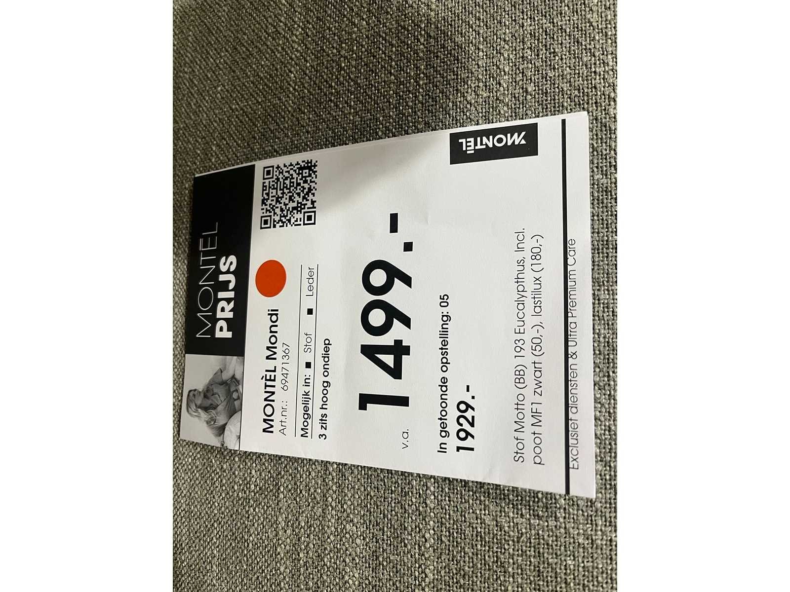 Showroommodel Merk: Montel Model: Mondi Showroommodel Product type: 3 zits Bank Kleur: Grijs Gewicht: 50kg Lengte: 190cm Breedte: 85cm Hoogte: 88cm Zithoogte: 42cm Diepte: 50cm Materiaal: Stof