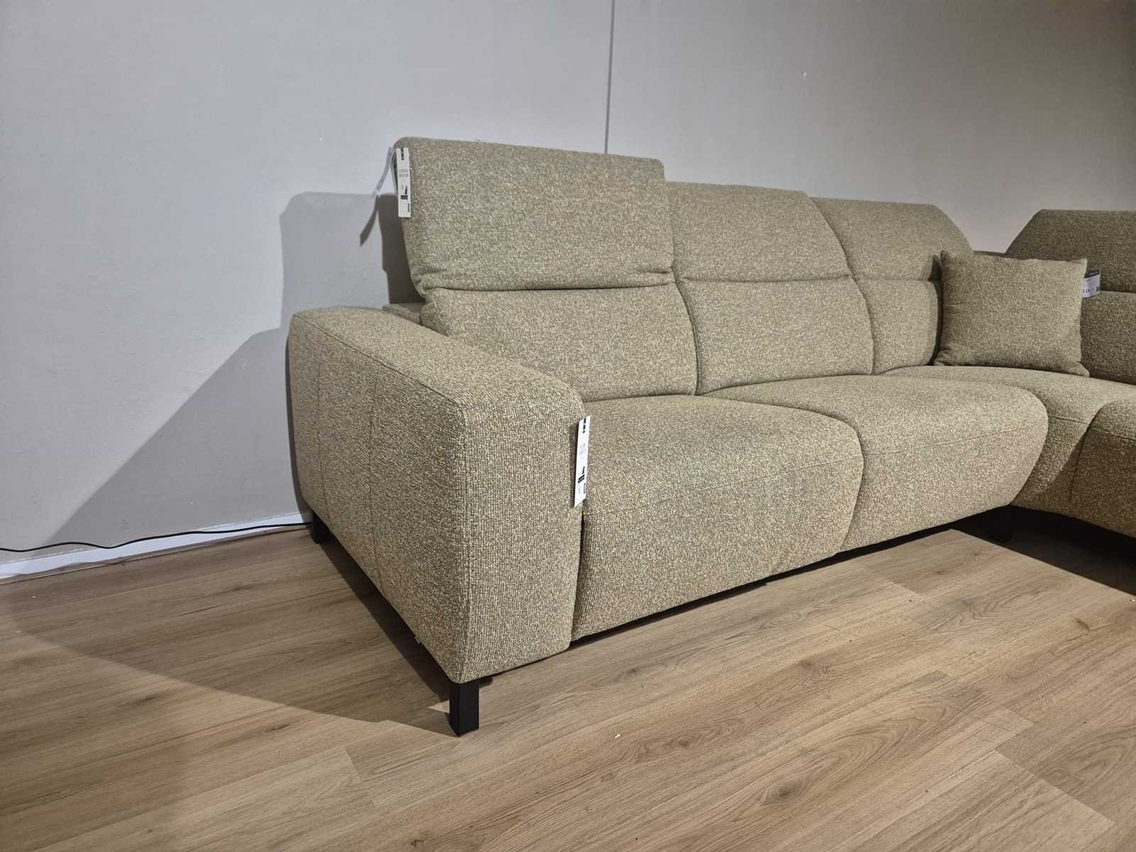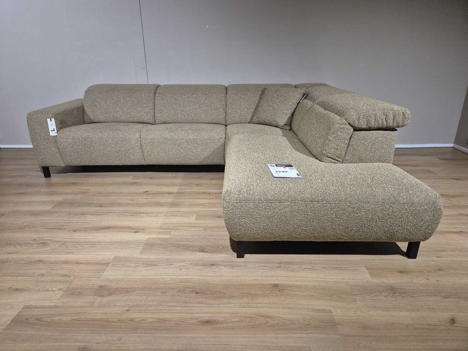 Showroommodel Merk: Montel Model: Moved - Showroommodel Product type: Hoekbank Kleur: Groen - Geel Gewicht: 40kg Lengte: 290cm Breedte: 238cm Hoogte: 104cm Materiaal: Stof