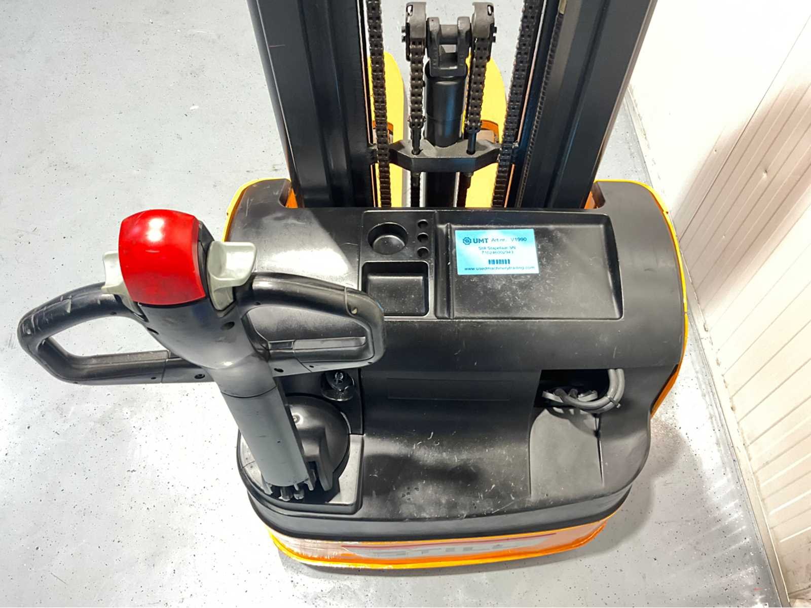 Merk: Still Type: EGV 16 Serienummer: 710246002943 Hefvermogen: 1600kg Hefhoogte: 4800mm Lepellengte: 1150mm Afgelezen urenstand: 5031 Eigen gewicht: 1305kg Minimale doorrijhoogte: 2060mm Totale afmeting Breedte: 860mm Totale afmeting Hoogte: 2060mm Meerij stapelaar: true