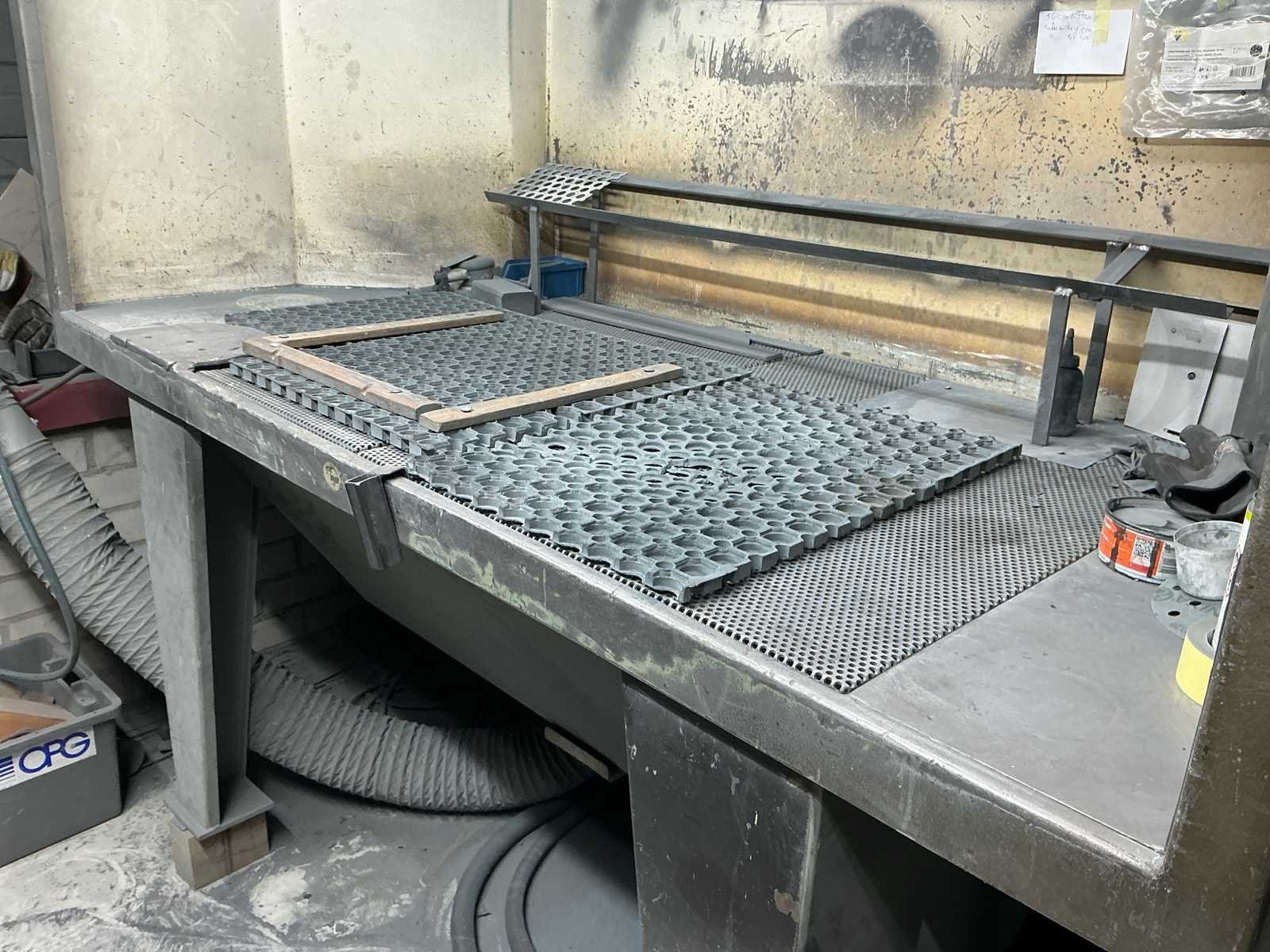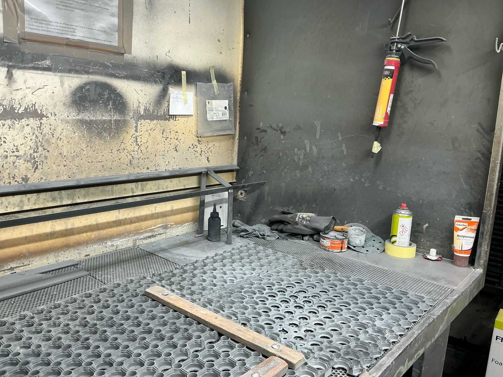 Voorzien van: LED Verlichting, afzuigsysteem elektrisch, opvansysteem voor stof Afmeting l: 2100mm Afmeting b: 1750mm Afmeting h: 2250mm