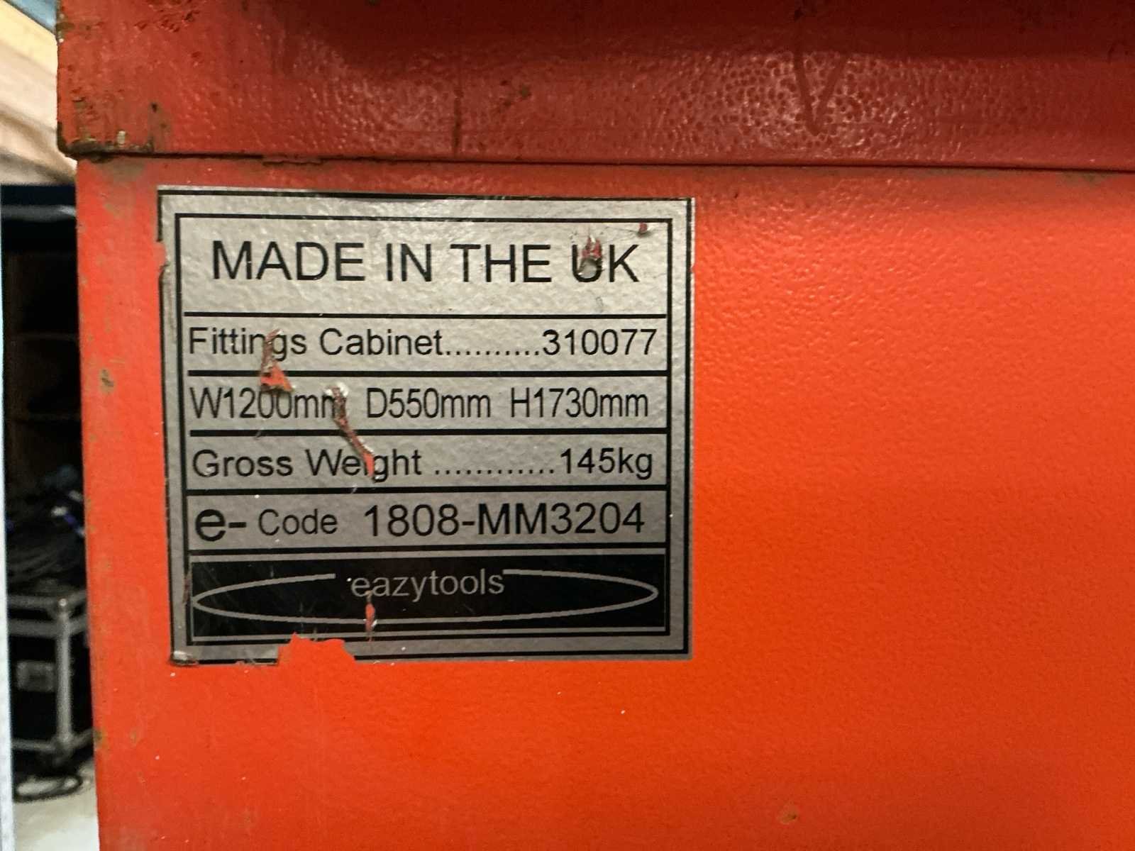 Voorzien van: 3 stuks opbergkast, afsluitbare deuren, 50 mm rubberen banden met twee zwenkwielen en remmen voor eenvoudige verplaatsing op de locatie, gelaste constructie met industriële poedercoating voor duurzaamheid, kabeldoorvoer voor intern opladen, drie versterkte stalen planken, verankeringspunten voor vastbinden en borgen, heftrucktoegangssleuven. B: 1200 mm x D: 550 mm x H: 1730 mm, gewicht: 140 kg. Merk: Eazytools Type: 310077 Eigen gewicht: 145kg Totale afmeting L: 1200mm Totale afmeting Breedte: 550mm Totale afmeting Hoogte: 1750mm