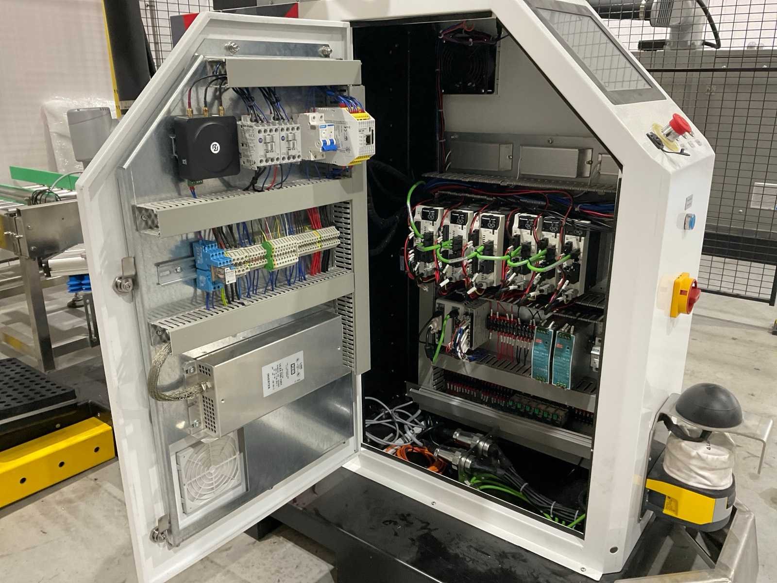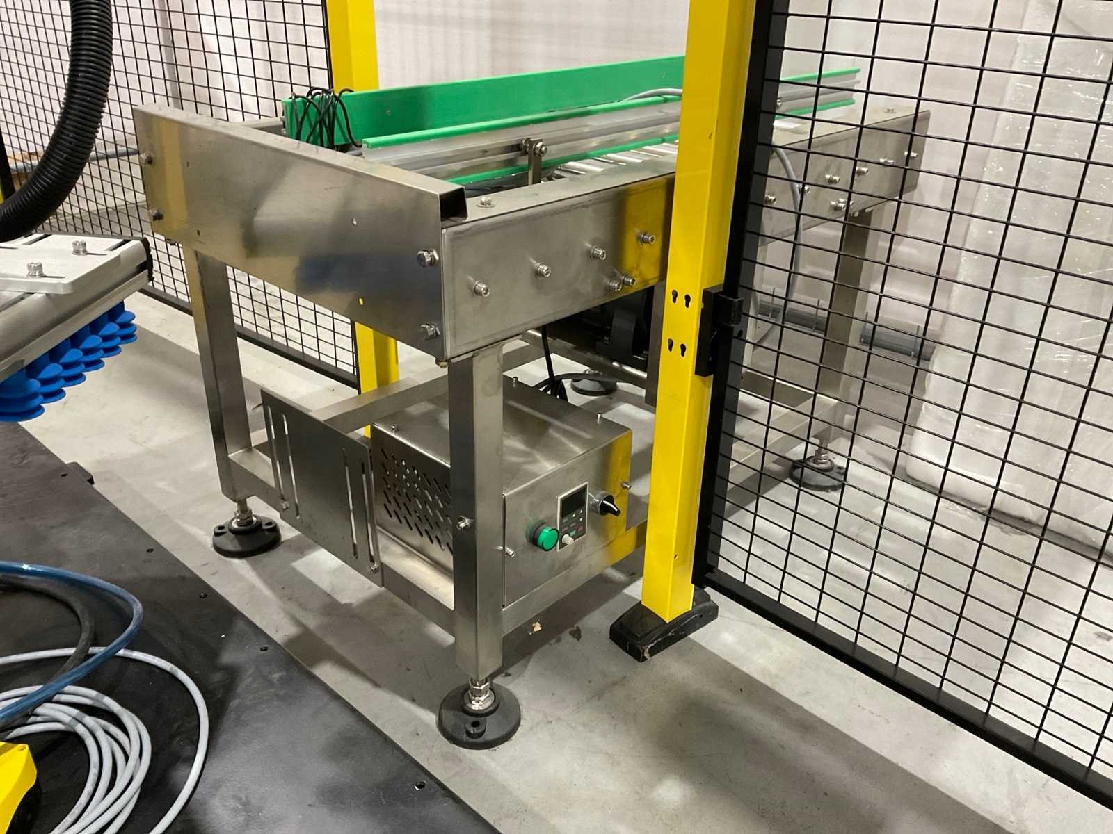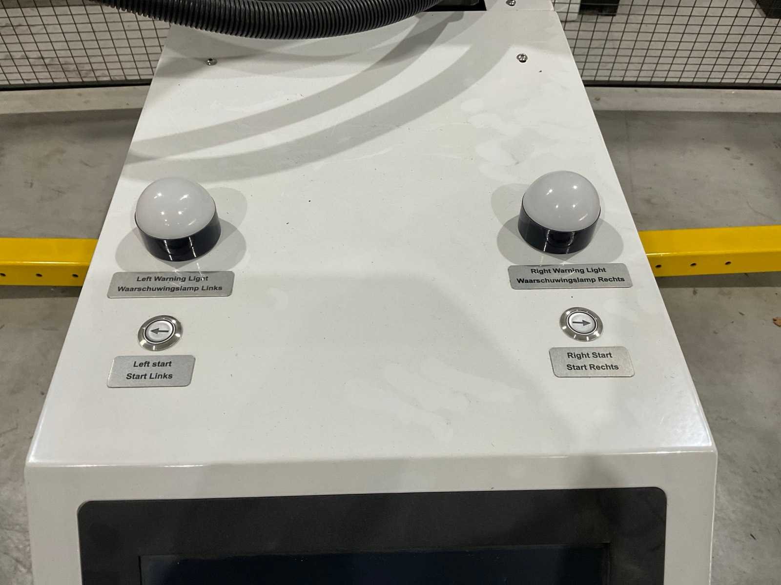 Geen CE keurmerk, voorzien van: aanvoer rollenbaan, zuignap aanbouwdeel, schuim aanbouwdeel, Leitz RSL 425-S doorloopbeveiliging, hekwerk beveiliging (2x 1500mm, 4x 1000mm), Warsonco besturingssysteem, touchscreen bedieningspaneel, documentatie / aansluitschema’s Merk: Warsonco