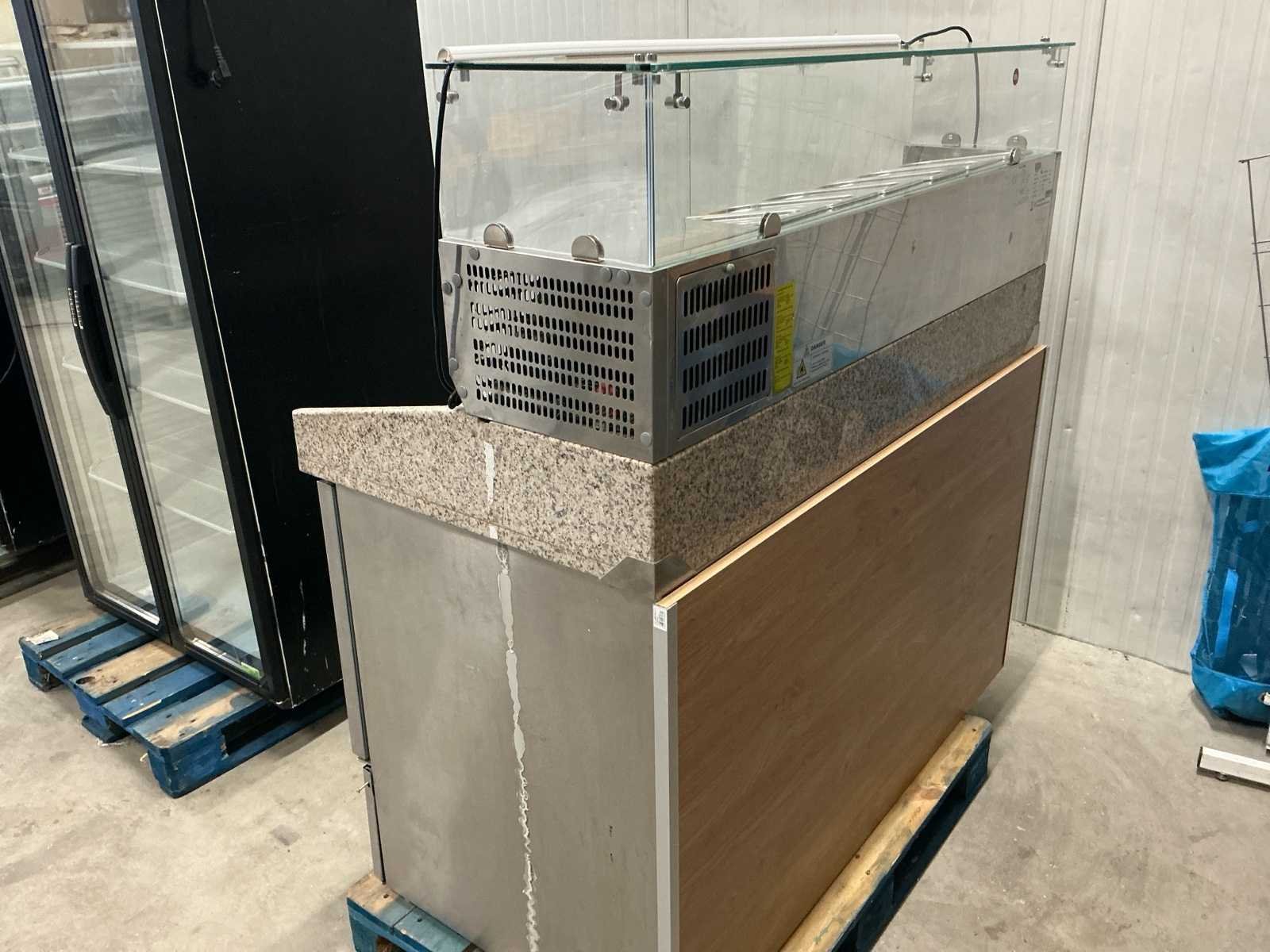 Voorzien van: De Polar Refrigeration AB090 is een professionele koelvitrine of koelwerkbank met een vermogen van 110W, werkend op 230V/50Hz met R600a-koelmiddel (40g), stroomverbruik van 0,8A, geschikt voor omgevingstemperaturen van 16–32°C (klimaatklasse 4) Merk: Polar Type: AB090 Materiaal: RVS/natuursteen Serienummer: AB090 6176932 Aansluiting: 230V Rvs: true Totale afmeting L: 730cm Totale afmeting Breedte: 1400cm Totale afmeting Hoogte: 1430cm Bouwjaar: 2018