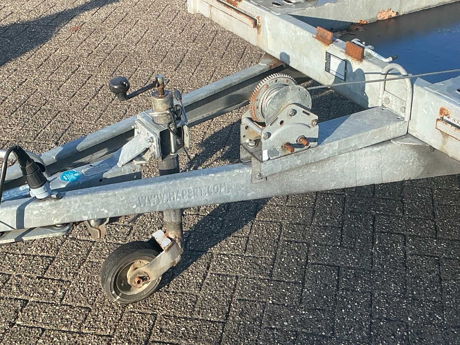 Gekeurd tot einde 2025. Voorzien van oprijplaten, lier. Merk: Hapert Type: TA Bouwjaar: 2015 Aantal assen: 2 Laadbak afmeting l: 410cm Laadbak afmeting b: 205cm Ledig gewicht: 618kg Laadvermogen: 2082kg Datum eerste toelating: 2015-04-01 Datum eerste toelating (NL): 2015-04-01 Kenteken: 07-WL-TJ Kentekenpapieren compleet?: true Hoogte: 70cm Lengte: 560cm Breedte: 205cm Nationaliteit documenten: NL