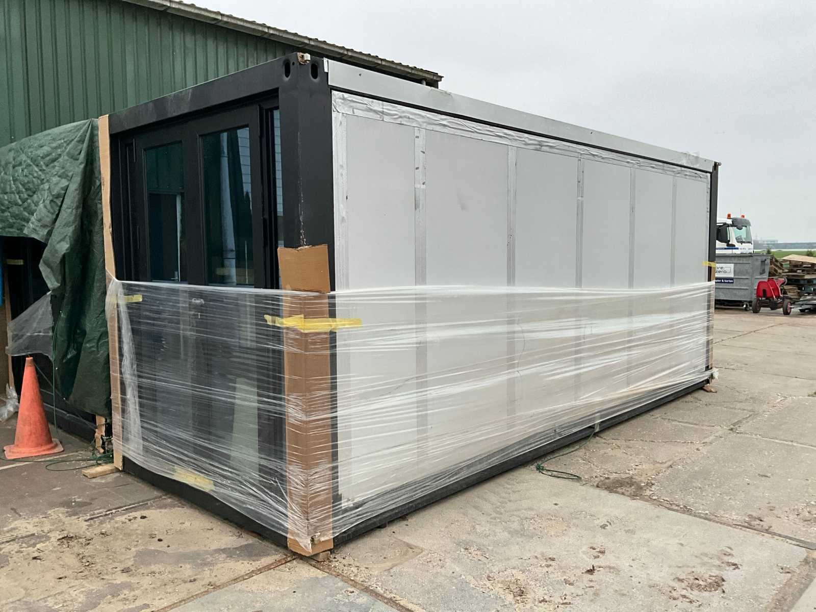 Komplete keuken met boven kastjes+ Eén inductie kookplaat met 4 pitten; Eén split airco unit voor verwarming en koeling; Eén warmwater doorstroom boiler (temperatuur +-30 graden waardoor de boiler niet geschikt is voor een warme douche); Electrische installatie met groepen kast; 20 stopcontacten; een plafonnière in ieder vertrek; Complete badkamer, met toilet en wastafel; meubeltje en douche cabine; 2 slaapkamers; 6 aluminium thermopheen open slaande ramen + ruime voordeur; Geïsoleerde (7 cm)wanden en dak; Eén terras/verranda voorzien kunstof vlonderplanken en hekwerk 3 x 6 mtr; staal gegalvaniseerd en gecoat; Gehele unit en terras overkapt met geisoleerde dakplaten; Word als bouwpakket geleverd; bouw support en instructie video; geisoleerde wanden, dak en vloer; stalen dakplaten ter afwerking; 1 jaar fabrieks garantie Merk: 20ft Uitschuifbare Tiny House Model: 2025 Kleur: Zwart & Hout Gewicht: 2800 Lengte: 5900 Breedte: 6200 Hoogte: 2850 Materiaal: Sanwich panelen
