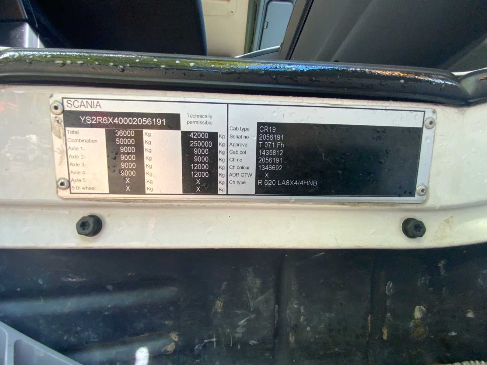 Voorzien van vloeistofkoppeling. luchtgeveerd, retarder, airco. Voor zwaar transport Kenteken: BX-VB-30 Merk: Scania Type: R620 8x4 V8 Bouwjaar: 2010 Chassisnummer VIN: YS2R6X40002056191 Type transmissie: Handmatig Asconfiguratie: 8x4 Fuel Type: Diesel Aantal sleutels: 1 Slaapcabine: true Eigen gewicht: 12900kg Startinformatie: Start en rijdt Afgelezen kilometerstand: 1038000km Aantal zitplaatsen: 2 Handgeschakelde versnellingsbak: true Diesel: true
