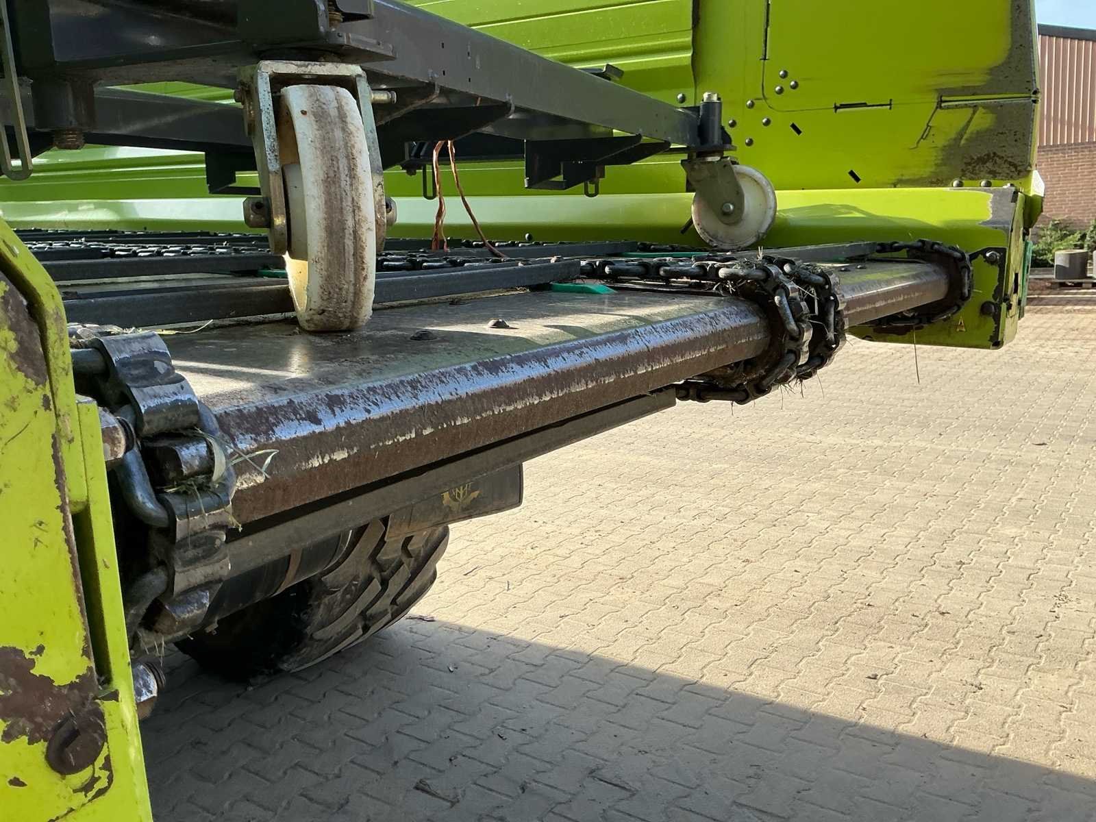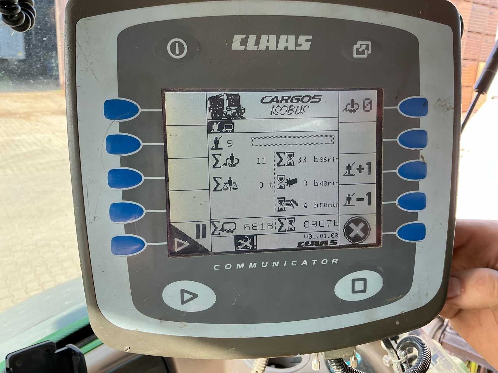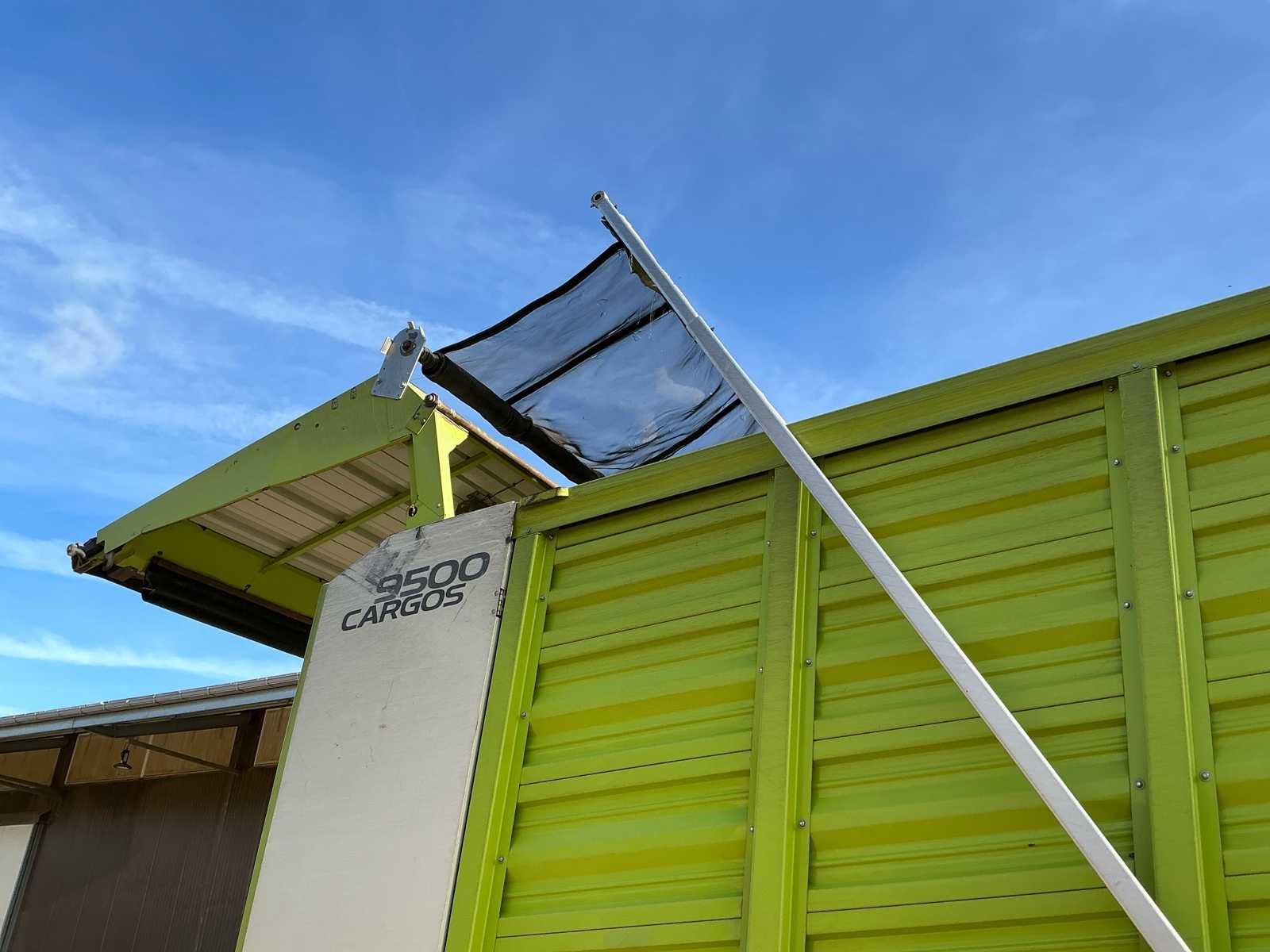 Voorzien van: aftakas, verlichting, luchtremmen, wielkeggen, picknick-up breedte 2000mm, Breedte Pick-Up 2 m, transportatie lengte 10.8 m, transport breedte 2.87 m, transport hoogte 3.87 m, aantal messen 40, Min snijlengte 38 mm, laadvolume 44 m³, geperst laden, 88 m³, aantal assen 2, geforceerde besturing, mechanische kettingspanners, geschroefde bodemkettinggeleiders, rotor met individuele tandsegmenten, instelbare voorspanning van de messen, neerklapbare snijgoot, uitklapbare messenhouder, opbergruimte voor extra set messen, hydraulische knikdissel, demonteerbare laadaggregaat aftakas, CEMIS 700, Ecosyl doseerapparaat. Merk: Claas Type: Cargos 9500 Bouwjaar: 2010 Serienummer: FE1775 Kenteken: LGK95B Opslagcapaciteit: 44 Bandenmaat: 710/50 R26.5 Maximaal aantal messen: 40 Stuuras: true Afgelezen urenstand: 8907 Totale afmeting L: 10800 Totale afmeting Breedte: 2880 Totale afmeting Hoogte: 3990