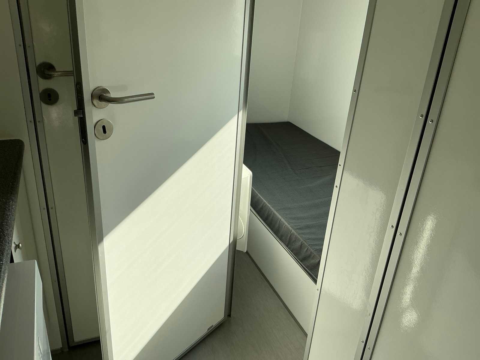 Voorzien van: 4 slaapkamers met 1 persoonsbed en opbergruimte voorzien van electrische kachel, stopcontact, raam met verduistering, verlichting, keukenblok met vaatwasser, koelkast, spoelbak en spoelkraan, opbergruimte, electrische kookplaat, magnetron, koffiezetapparaat, afzuigkap, tafel met 4 stoelen, electrische kachel, TV, sanitairruimte met toilet, douche, wastafel, 30L boiler en vermaalpomp, ontluchting, steunpoten Merk: Easywagen Model: 730 4K 4P Kleur: Wit Gewicht: 2500 Lengte: 7300 Breedte: 2500 Hoogte: 2900