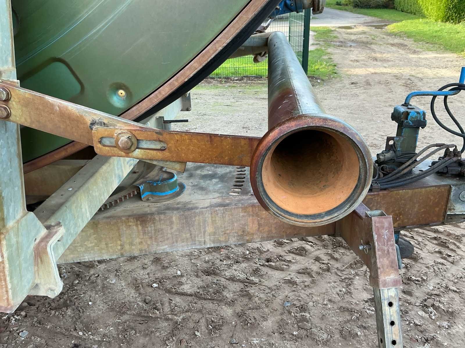 Voorzien van: steunpoten hydraulisch uitschuifbaar, sproeiers voor rond haspel instelbaar op tijd, sectie instelling op sproeier, profielbanden, mechanische steunpoot, verlichting, handboek aanwezig computer en haspel, filter, VarioRain-transmissie, snelheidscompensatie, gegalvaniseerd frame en 4-wielige pistoolwagen, gegalvaniseerde haspel, kruisslangaansluiting aan beide zijden van de machine, noodopwikkelmogelijkheid voor aftakas, directe snelheidsaflezing, volledig verstelbare pistoolwagen, verstelbaar sproeipistool met deelcirkel, directe tandwielaandrijving - geen kettingen, computer en zonnepaneel, hydraulisch rotatiemechanisme + hydraulische trekstang. Merk: Ocmis Lengte: 470cm Type: VR5 Bouwjaar: 2011 Serienummer: E311063 Kenteken: LGS29K Diameter circa: 110mm Steunpoten: true Eigen gewicht: 3560kg