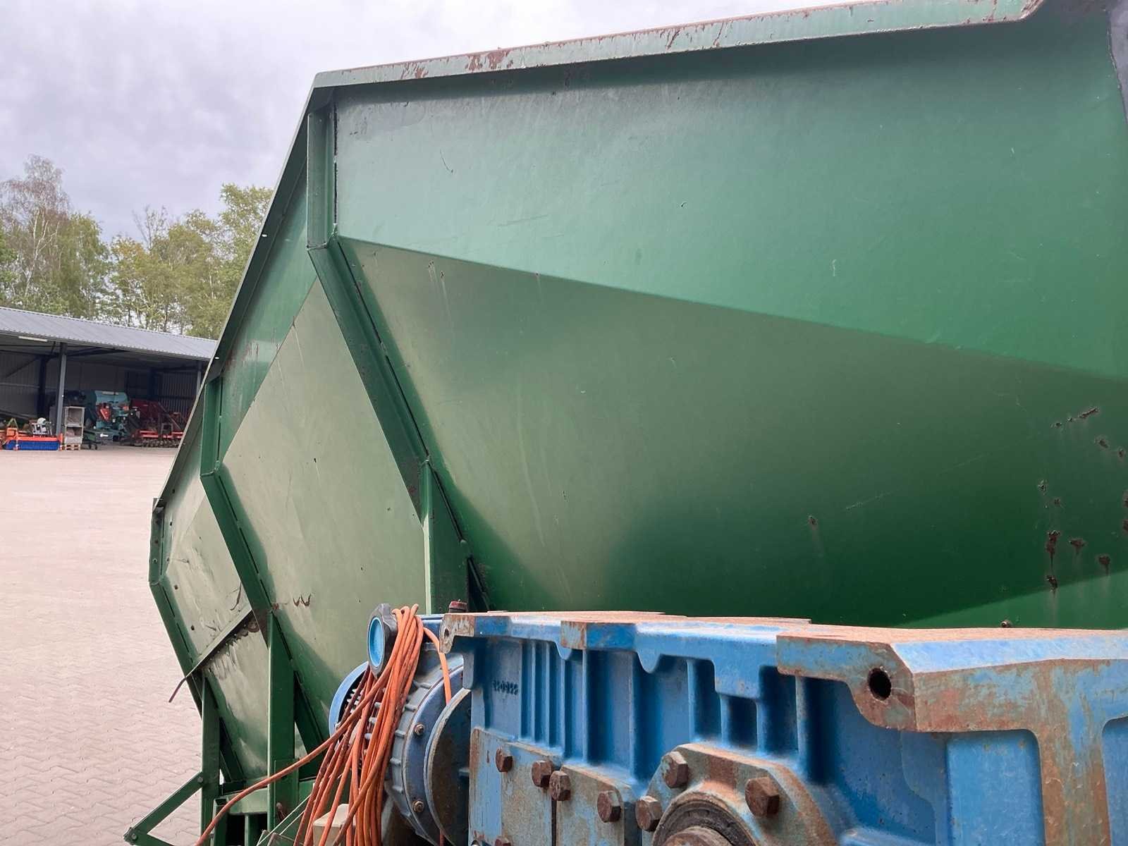 Voorzien van: vlakke band, hoofdschakelaar, 380v aansluiting, noodstop, 6 stuks spiraal reinigings rollen, 1x gladde rol, product afvoer band, zand afvoer band, elektrisch aangedreven, elektrisch bedienbare stempel poten. Merk: Vissers Type: AL Bouwjaar: 1995 Serienummer: 11088 Transportband afm. b: 2300mm Totale afmeting L: 7500mm Totale afmeting Breedte: 3200mm Totale afmeting Hoogte: 2700mm