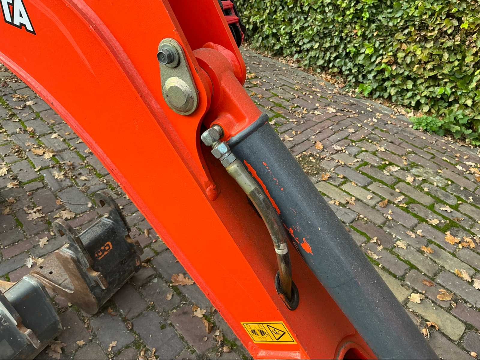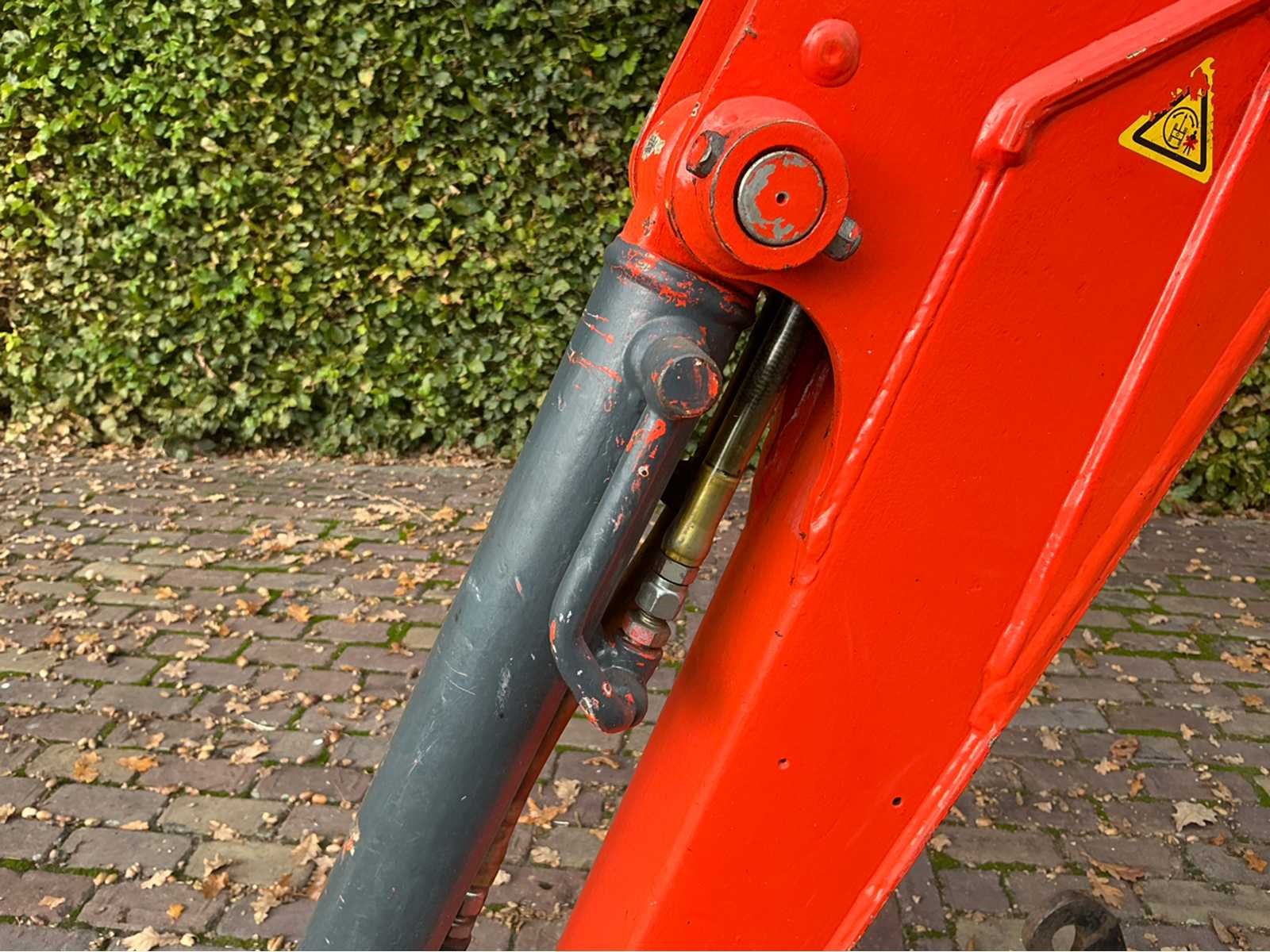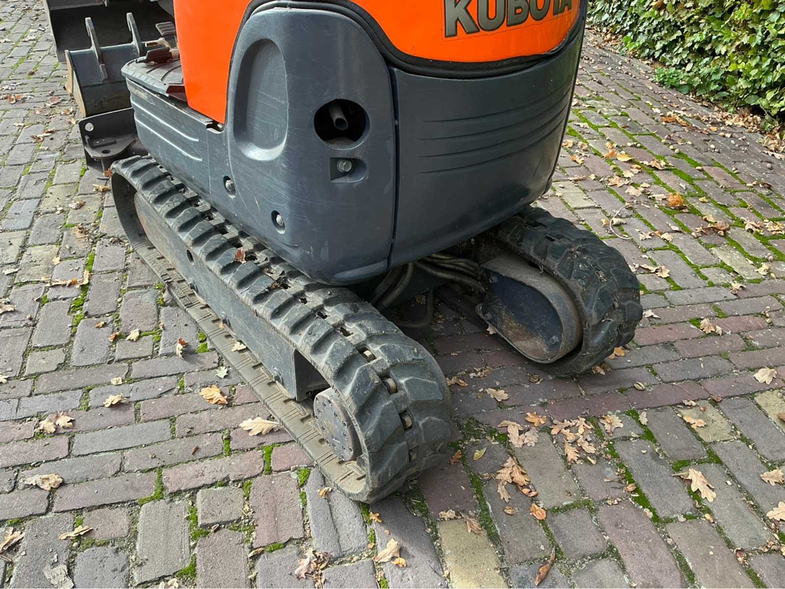 Machine is gebruikt maar verkeerd in goede staat. Machine beschikt over motorvermogen van 19 PK, 3 graafbakken, inklapbare rolbeugel, 2e rijversnelling en uitschuifbare rupsbanden. Maximale snelheid: 4 km/uur. De rupsbreedte is uitschuifbaar van minimaal 76 cm tot maximaal 97 cm. Merk motor: Kubota D722 Merk: Kubota Type: U10-3 Bouwjaar: 2010 Merk motor: Kubota D722 Motorvermogen (kW): 7.4kW Aantal cilinders: 3 Brandstof: Diesel Max. werkbereik: 2700mm Max. graafdiepte: 1800mm Inclusief graafbak: Yes Graafbak afm. b: 700mm Graafbak afm. h: 340mm Rups breedte: 97mm Afgelezen urenstand: 28173 Eigen gewicht: 1000kg Totale afmeting L: 4000mm Totale afmeting Breedte: 970mm Totale afmeting Hoogte: 2220mm